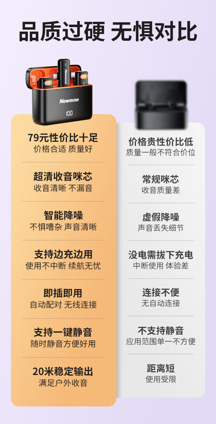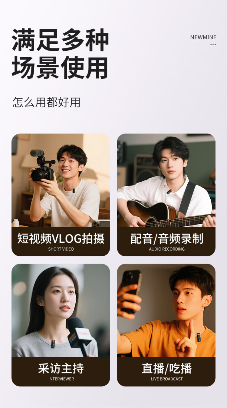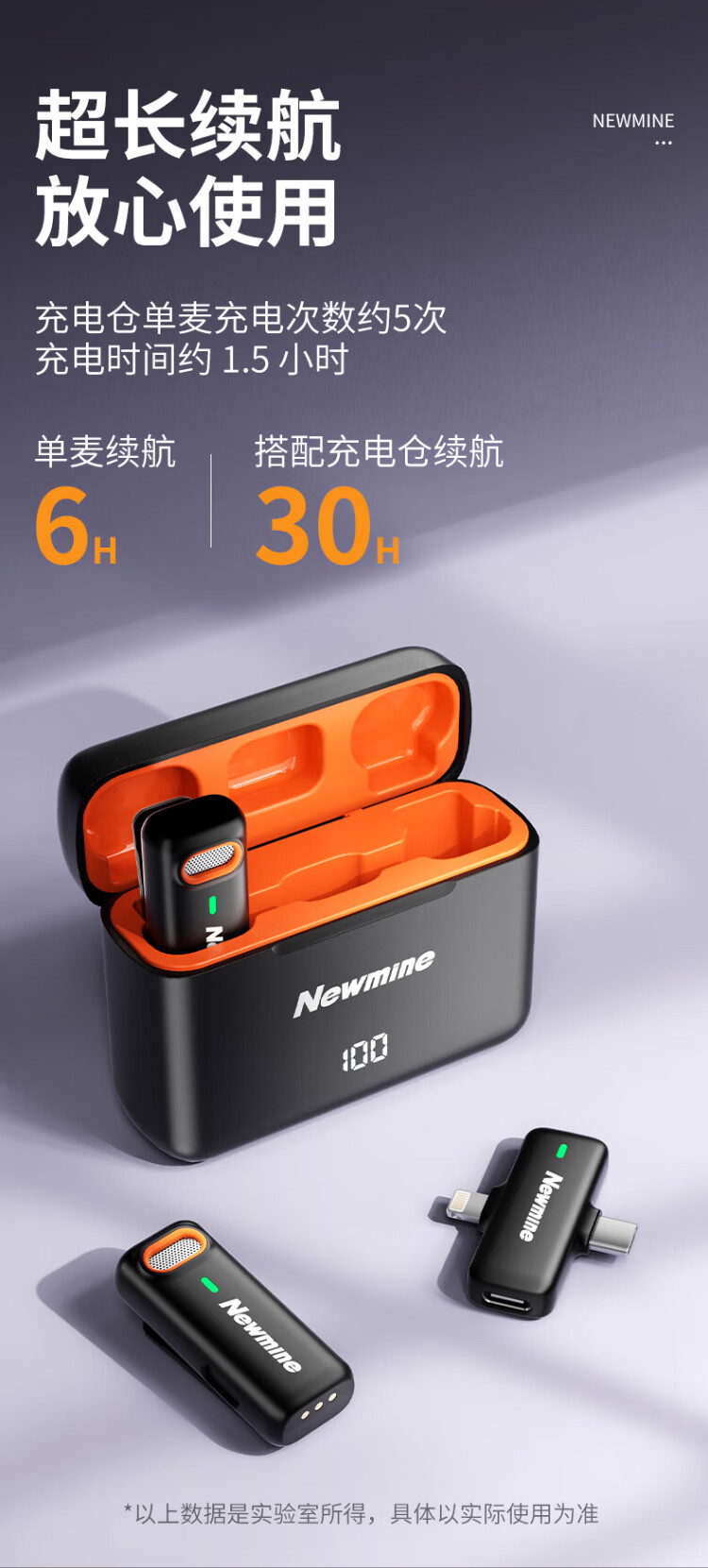 Newmine MC216 Pro wireless lavalier microphone live broadcast professional recording outdoor short video karaoke radio equipment noise reduction portable wireless microphone one-to-two charging compartment version