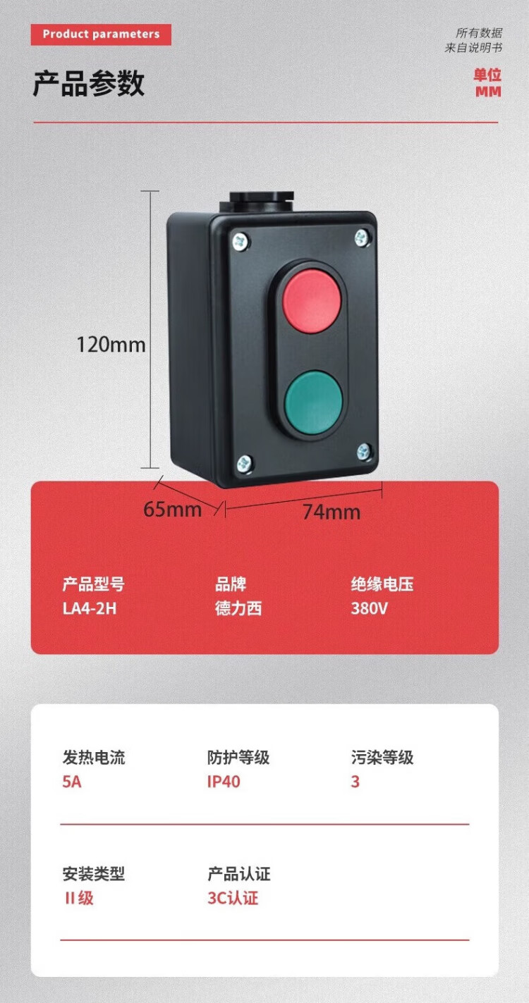 Delixi Electric (DELXI) LA4-2H push button switch two-position two-link self-reset button box start-stop control