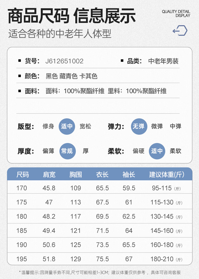 China (cm) 165 / 88-90 170 / 96-98 175 / 108-110 180 / 118-122 185 / 126-130