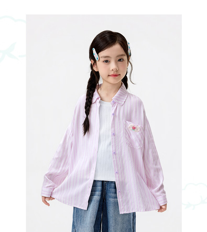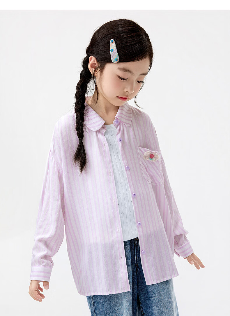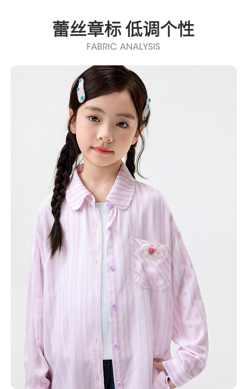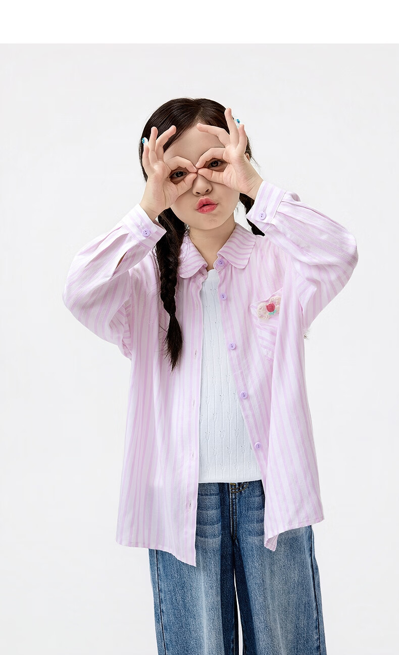 Xiaoyinman Children's Clothing Girls Light Breathable Shirt Lace Label 26 Spring Medium and Large Children's Lapel Casual Top