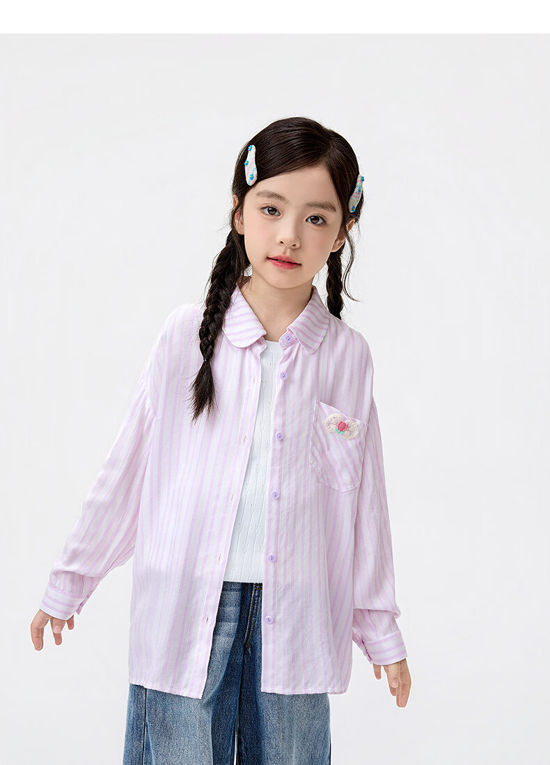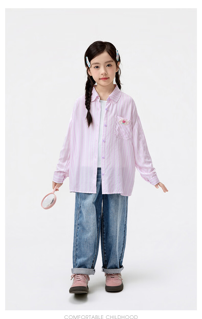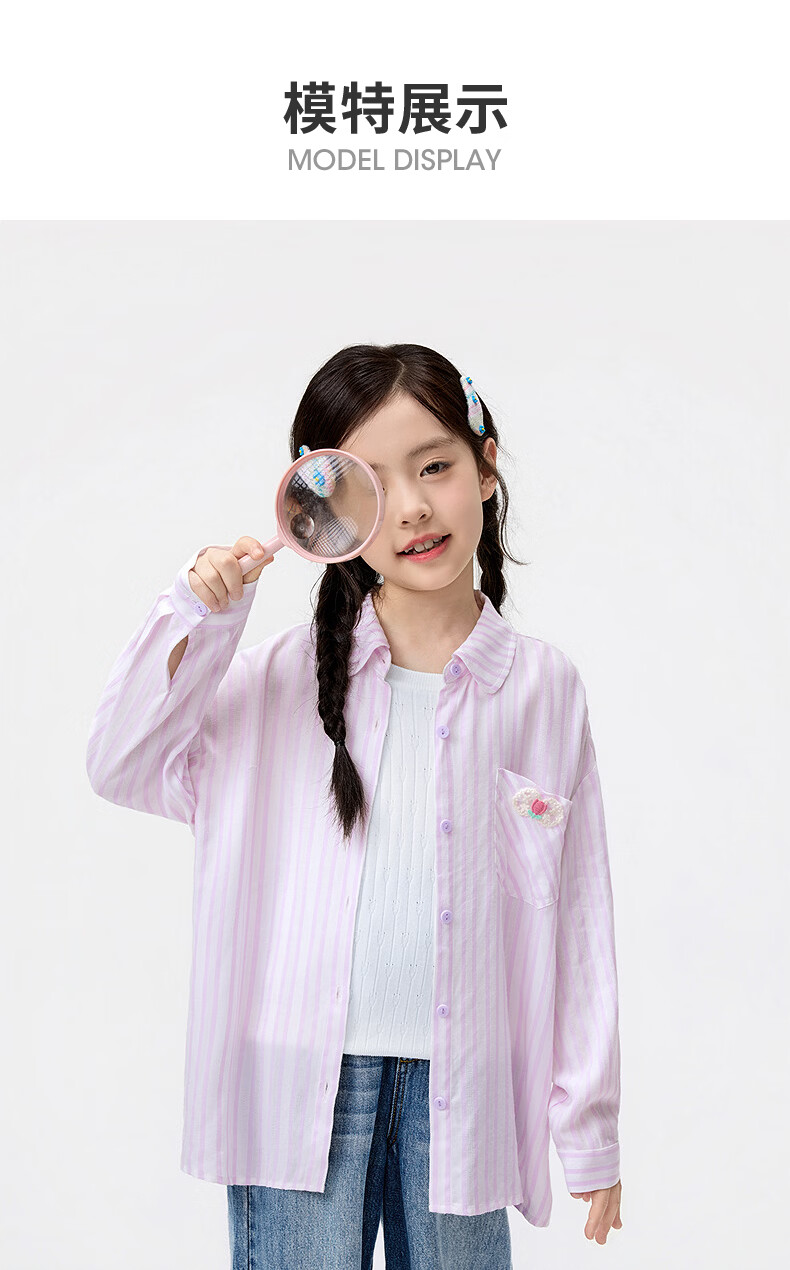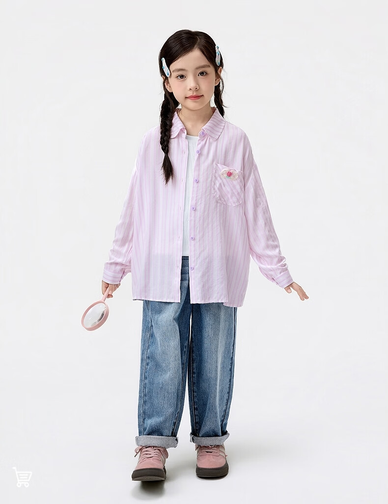 Xiaoyinman Children's Clothing Girls Light Breathable Shirt Lace Label 26 Spring Medium and Large Children's Lapel Casual Top