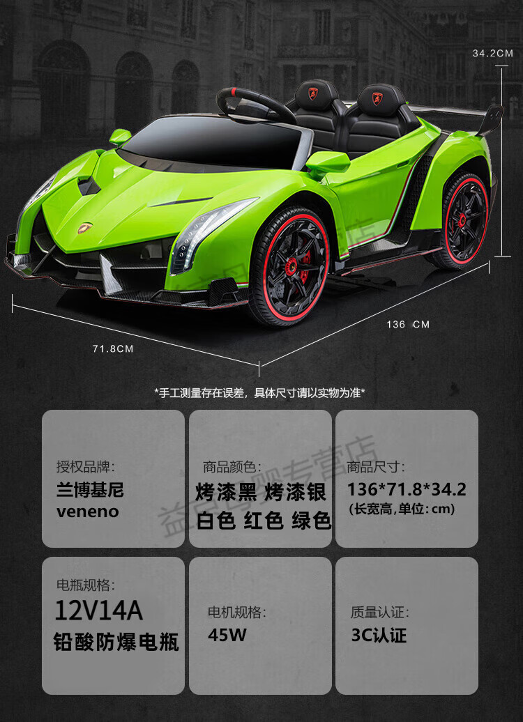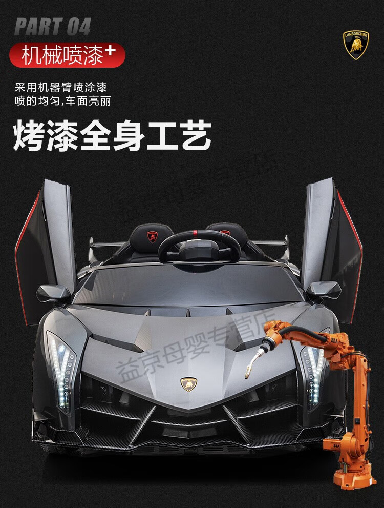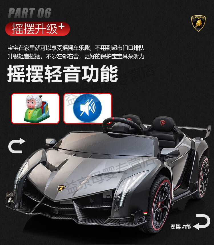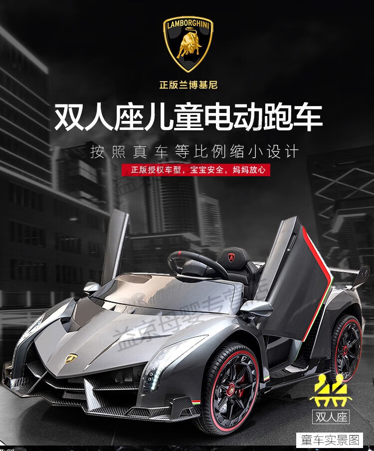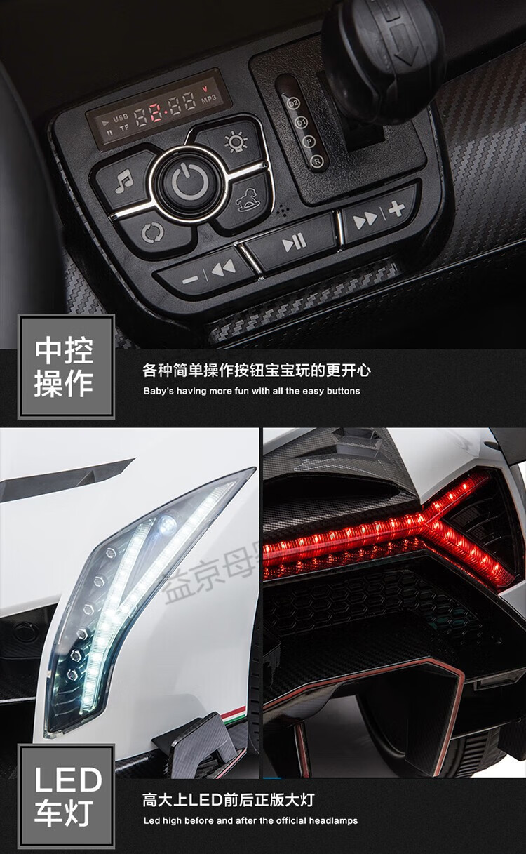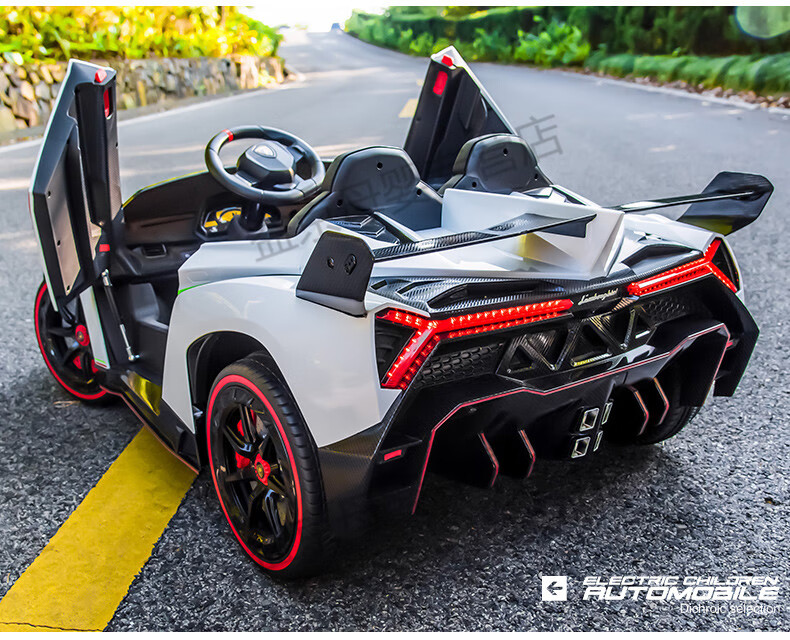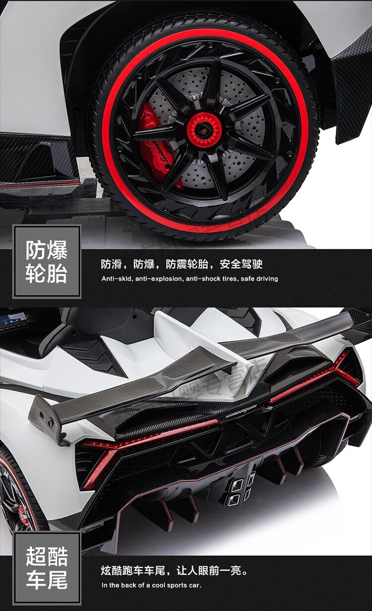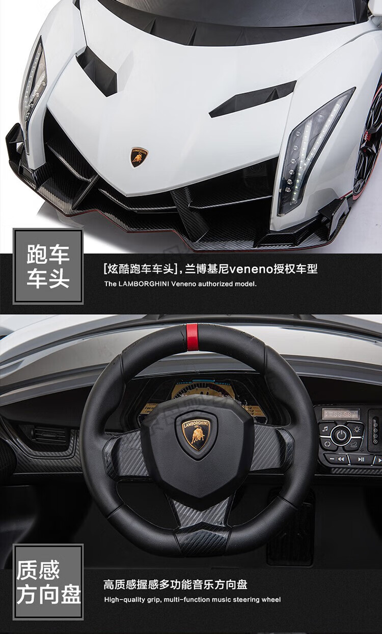 Xiaoyingxing (xiaoyingxing) Lamborghini two-seater children's electric car four-wheel remote control car four-wheel drive can sit on the baby swing toy top with four-wheel drive white + MP4 display + soft wheel leather seat remote control + 14A battery Genuinely authorized Lamborghini
