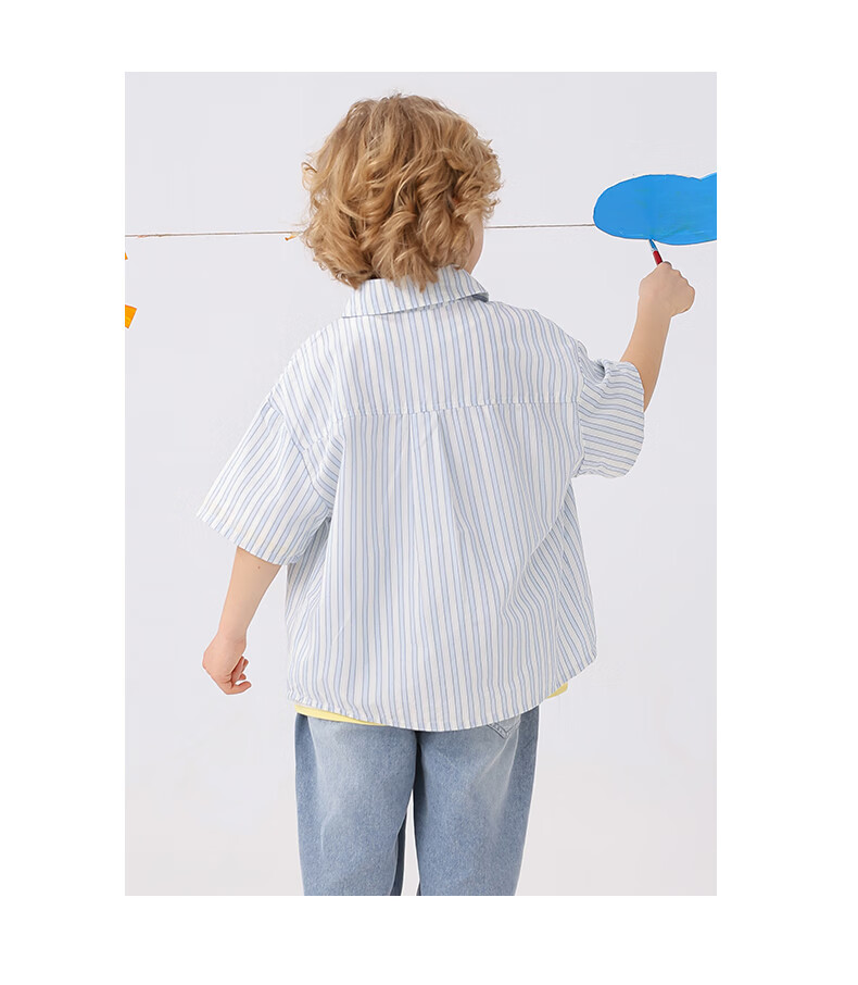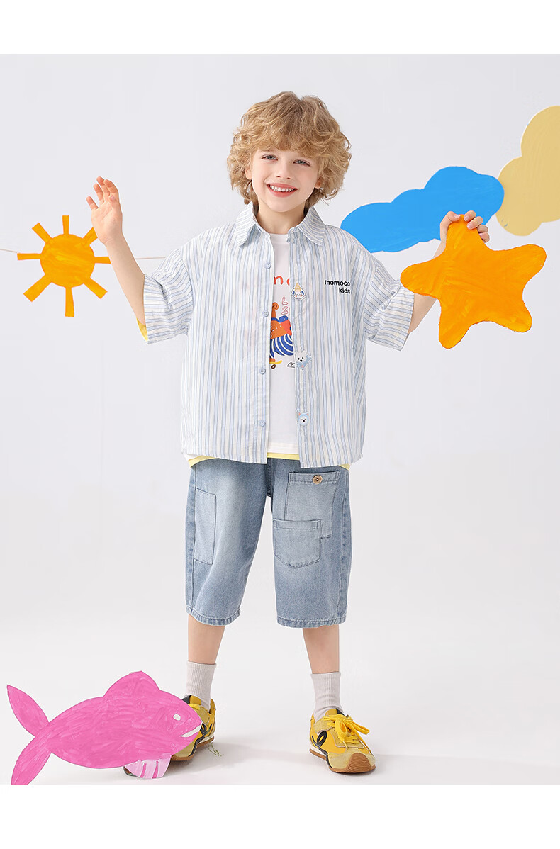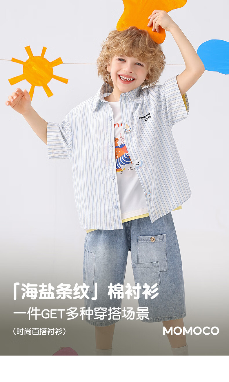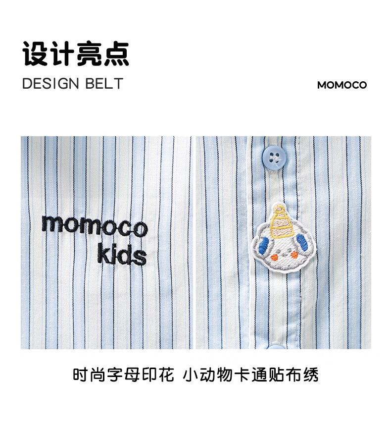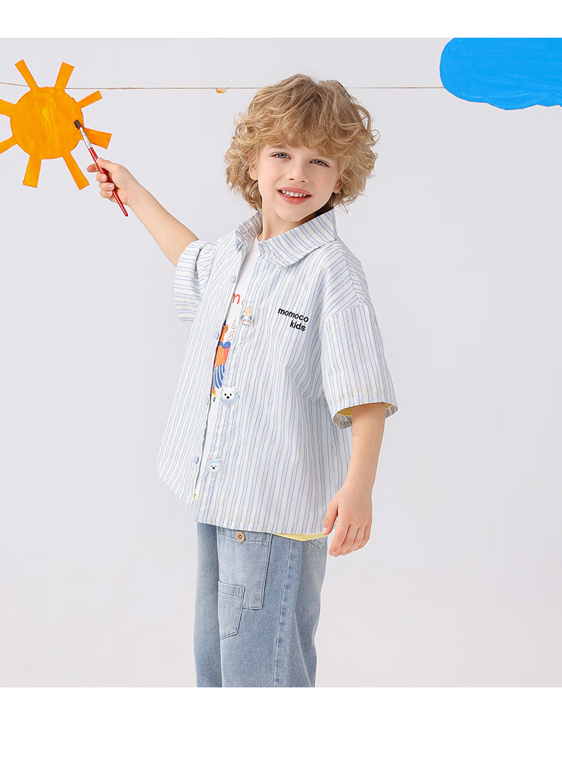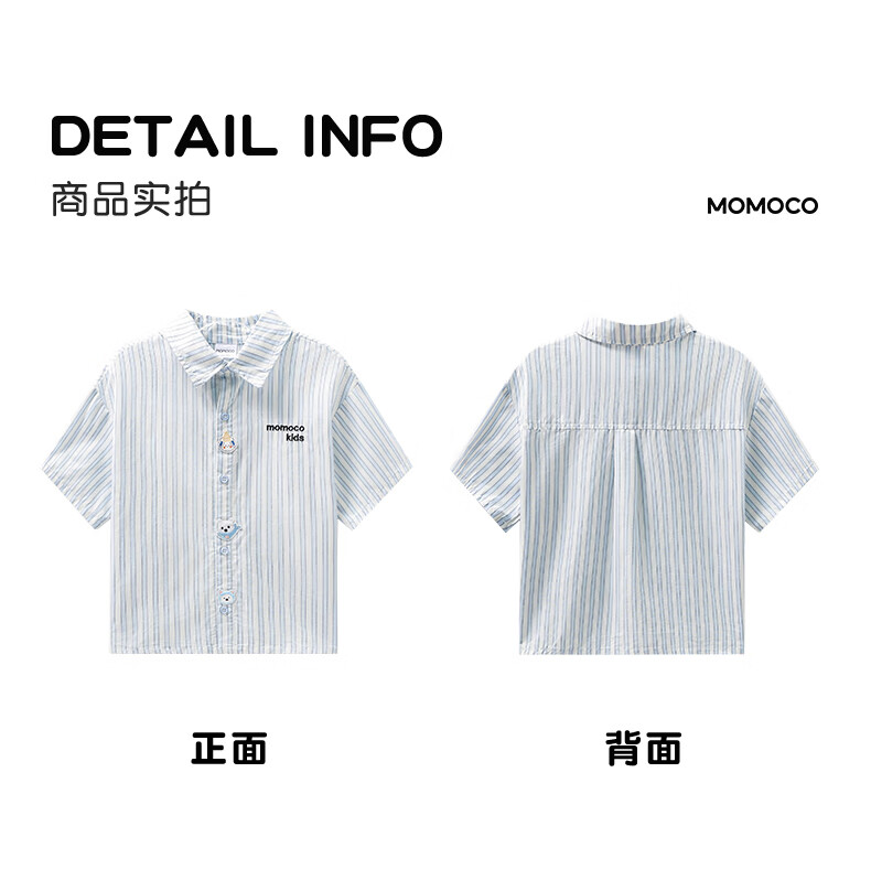 Mami Maca (MOMOCO) children's shirt summer boys' short-sleeved fashionable versatile shirt striped blue 140
