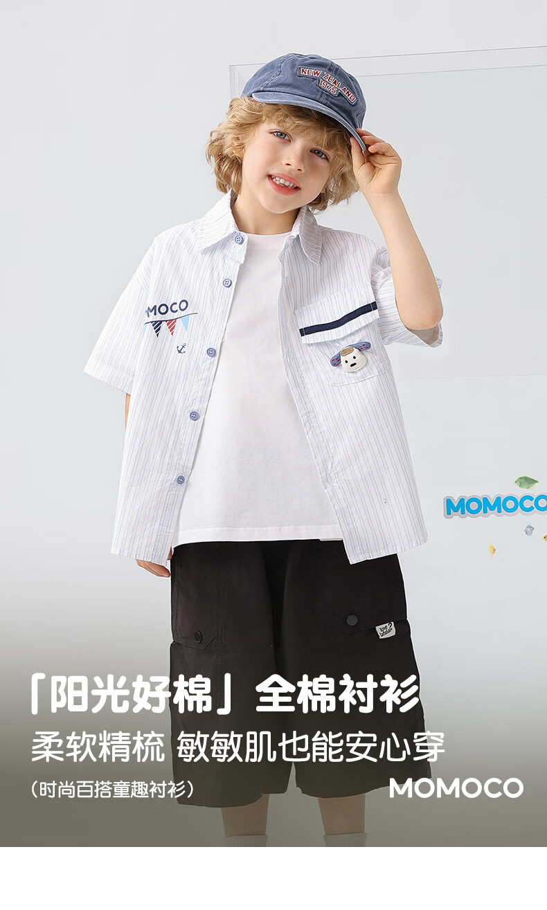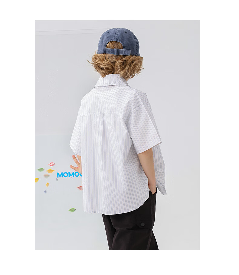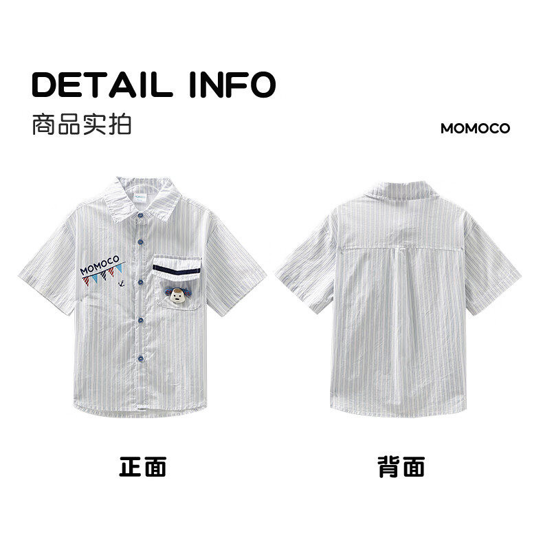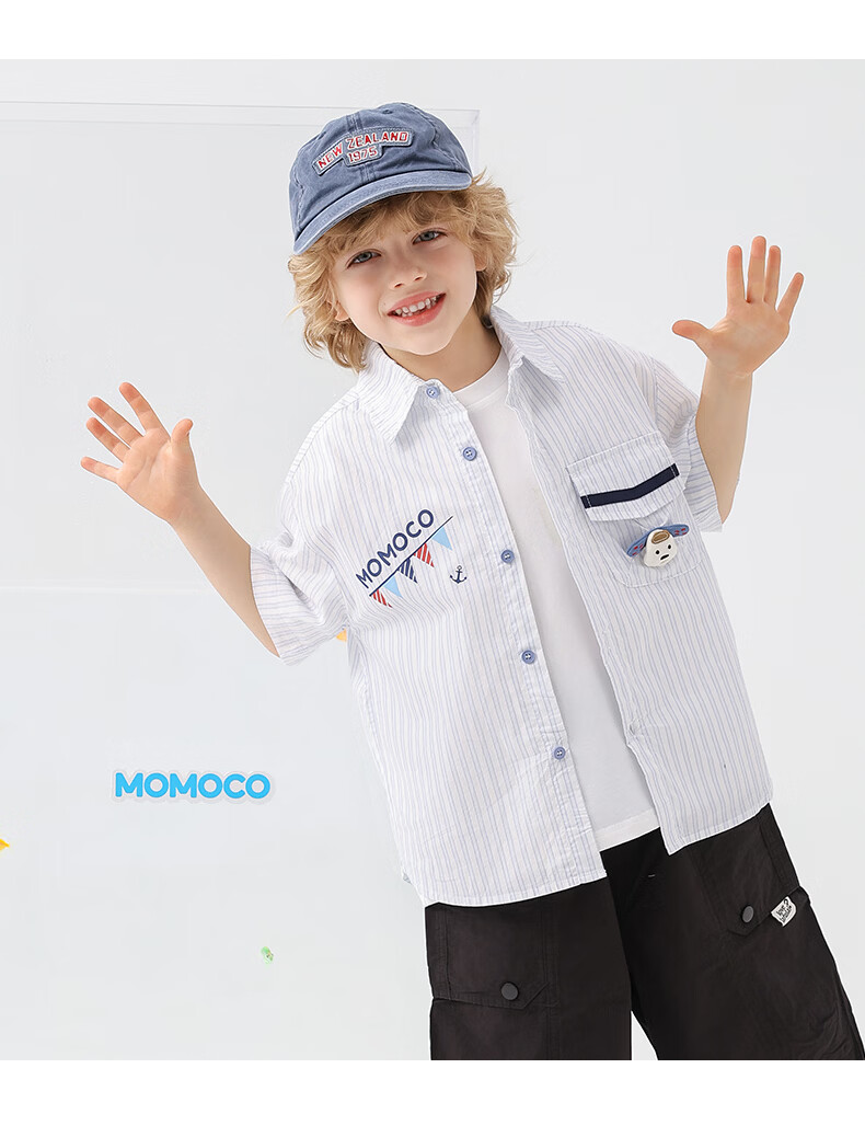 Mami Maka (MOMOCO) boys' short-sleeved shirt summer children's fashion versatile children's shirt blue and white 130