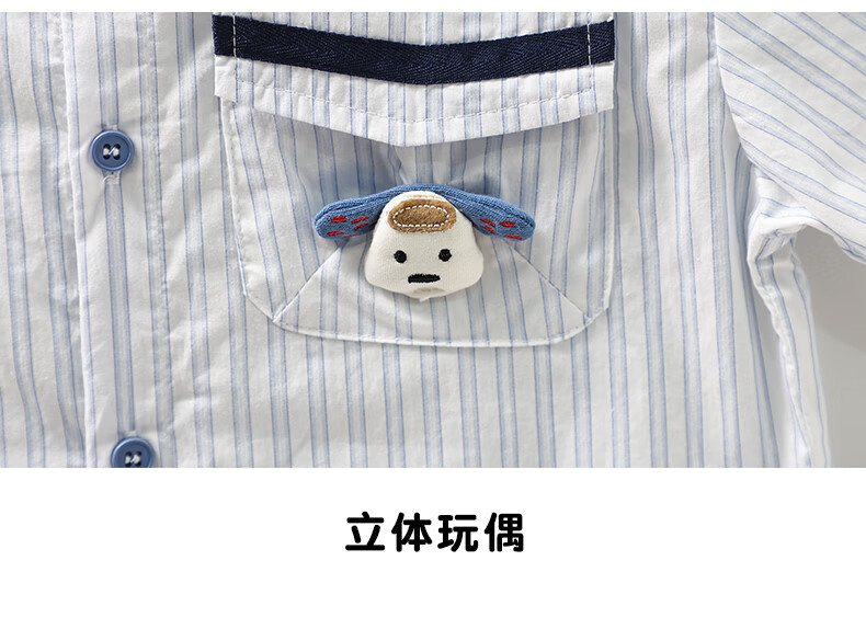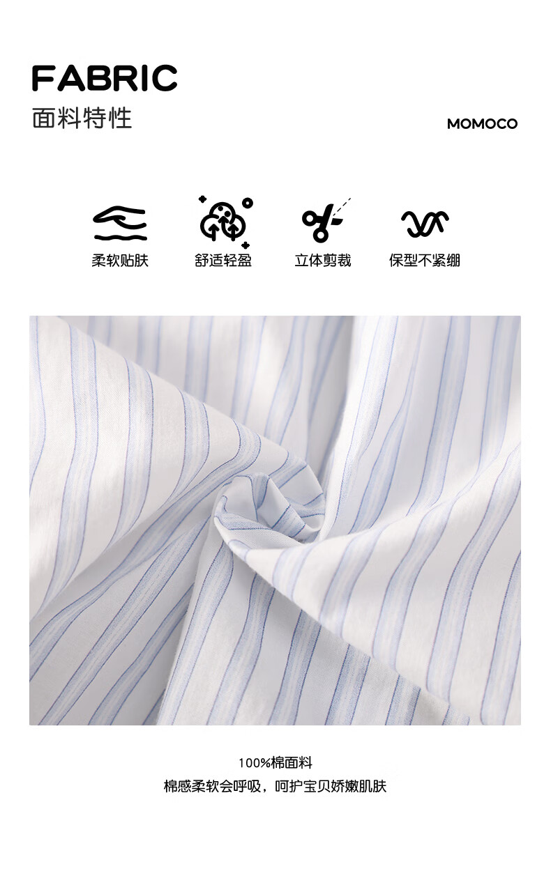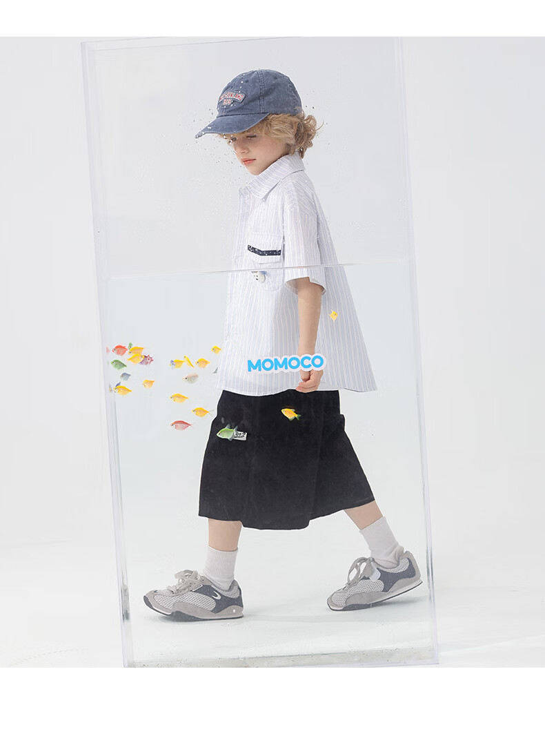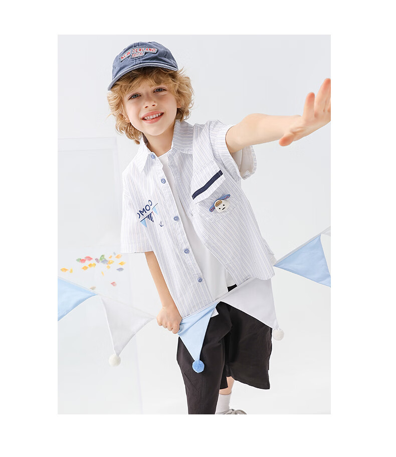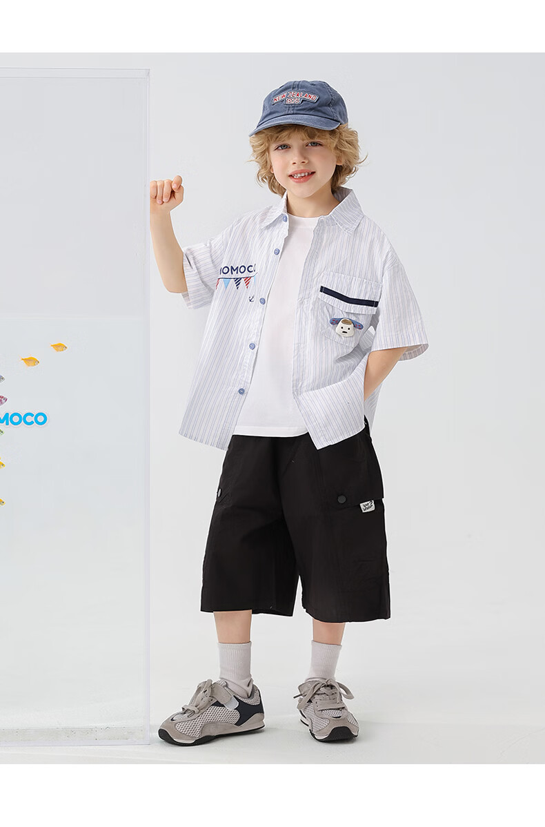 Mami Maka (MOMOCO) boys' short-sleeved shirt summer children's fashion versatile children's shirt blue and white 130