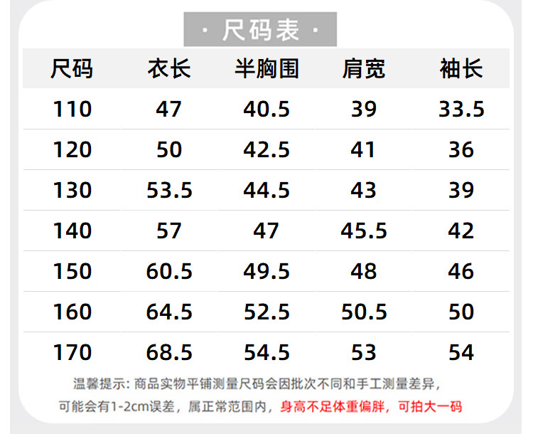Size (cm) 42 44 46 48 50