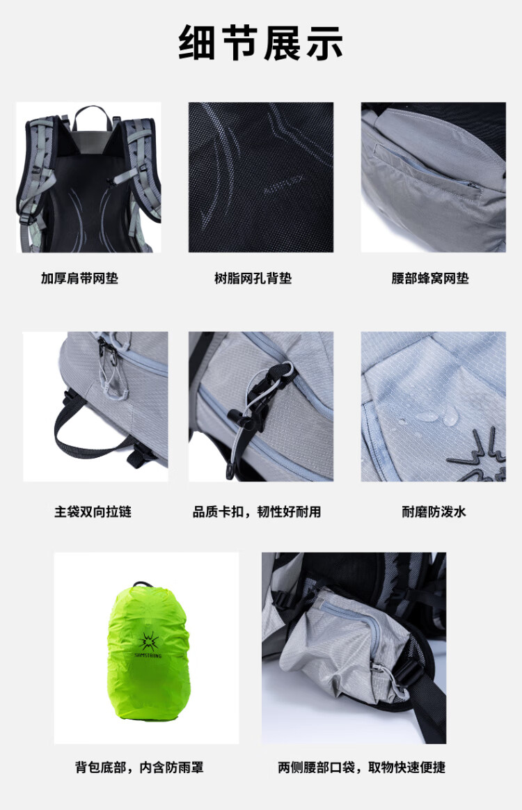 Fir Mountain Outdoor Mountaineering Bag Women's Tornado Backpack Men's Light Shoulder 30L Hiking Suspension Backpack Moss Green