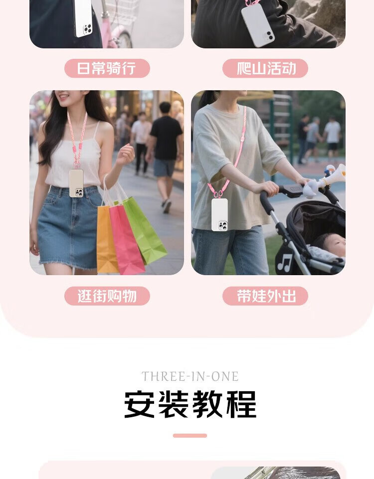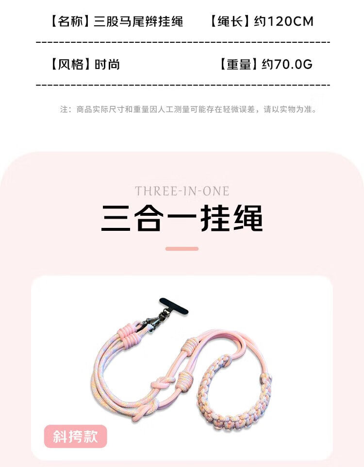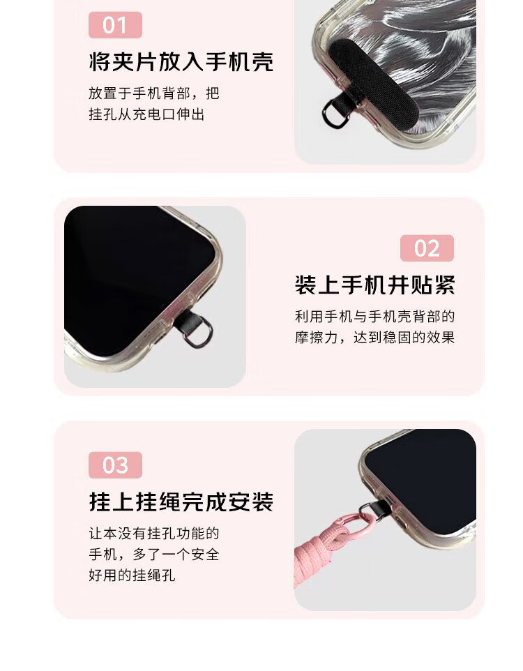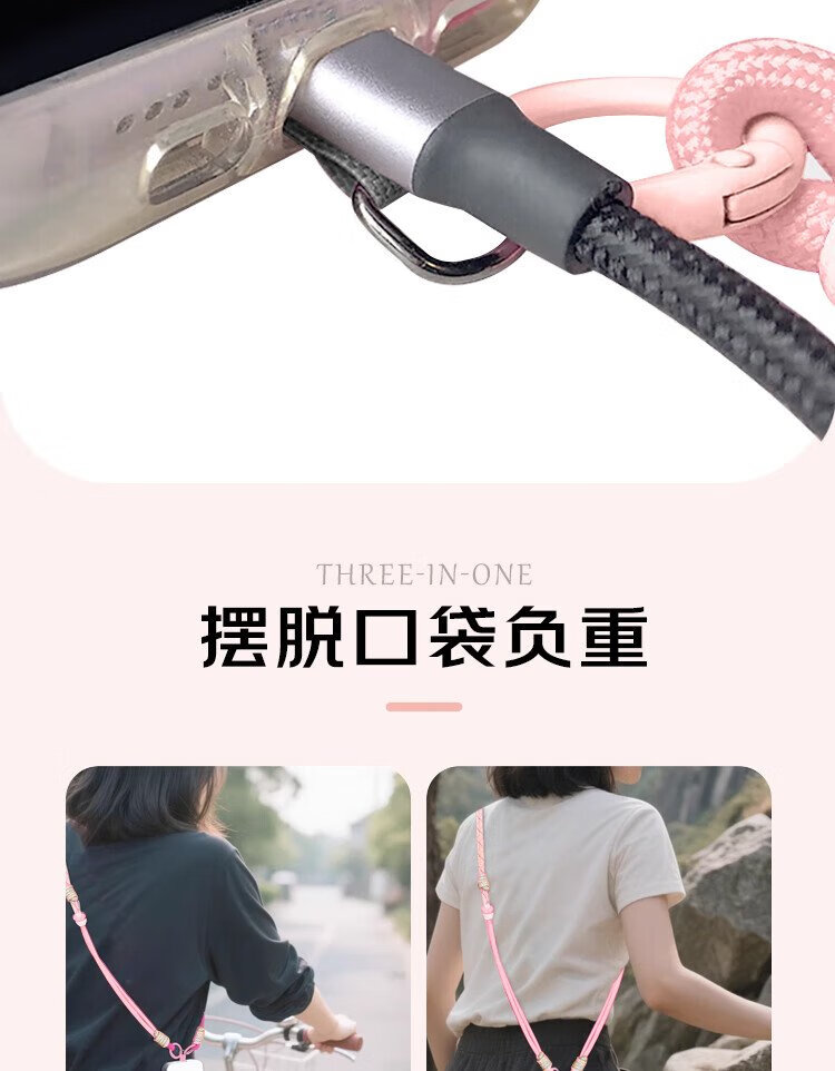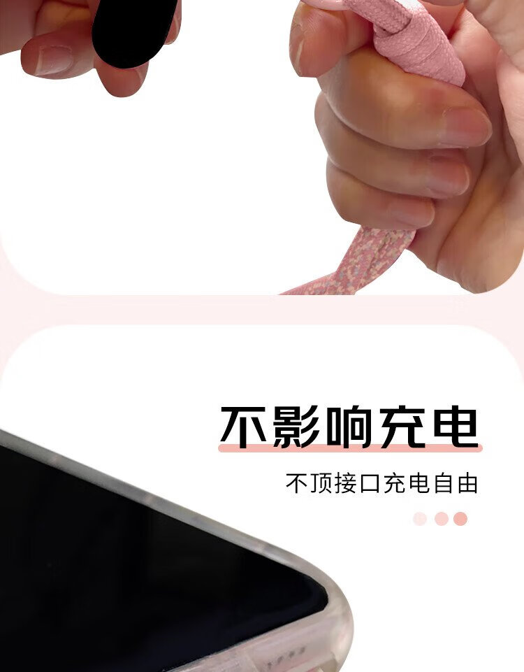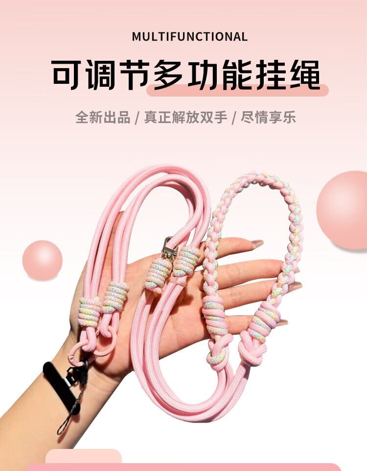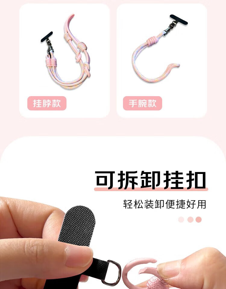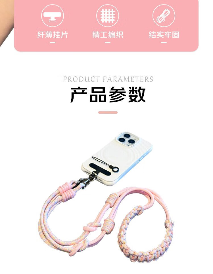 Dipur mobile phone lanyard hanging neck crossbody can be carried on the back and detachable wrist style adjustable anti-lost rope mobile phone chain lanyard with patch gasket clip mobile phone rope - pink