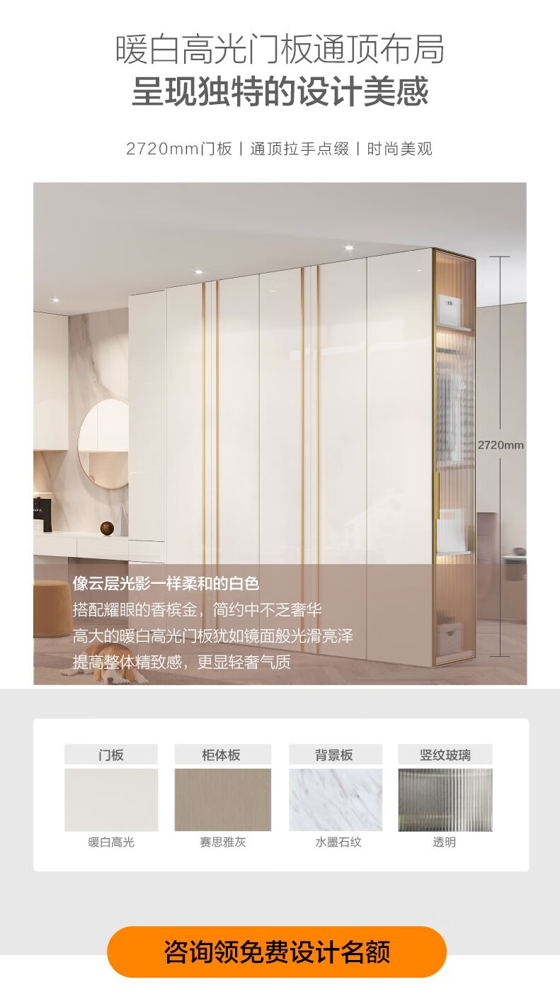 Baidusheng whole house customization modern light luxury overall bedroom sliding door wardrobe glass cloakroom customization. The price of the glass door is additional yuan/square meter (calculated based on the projection area)