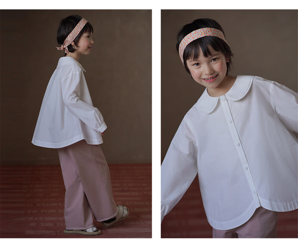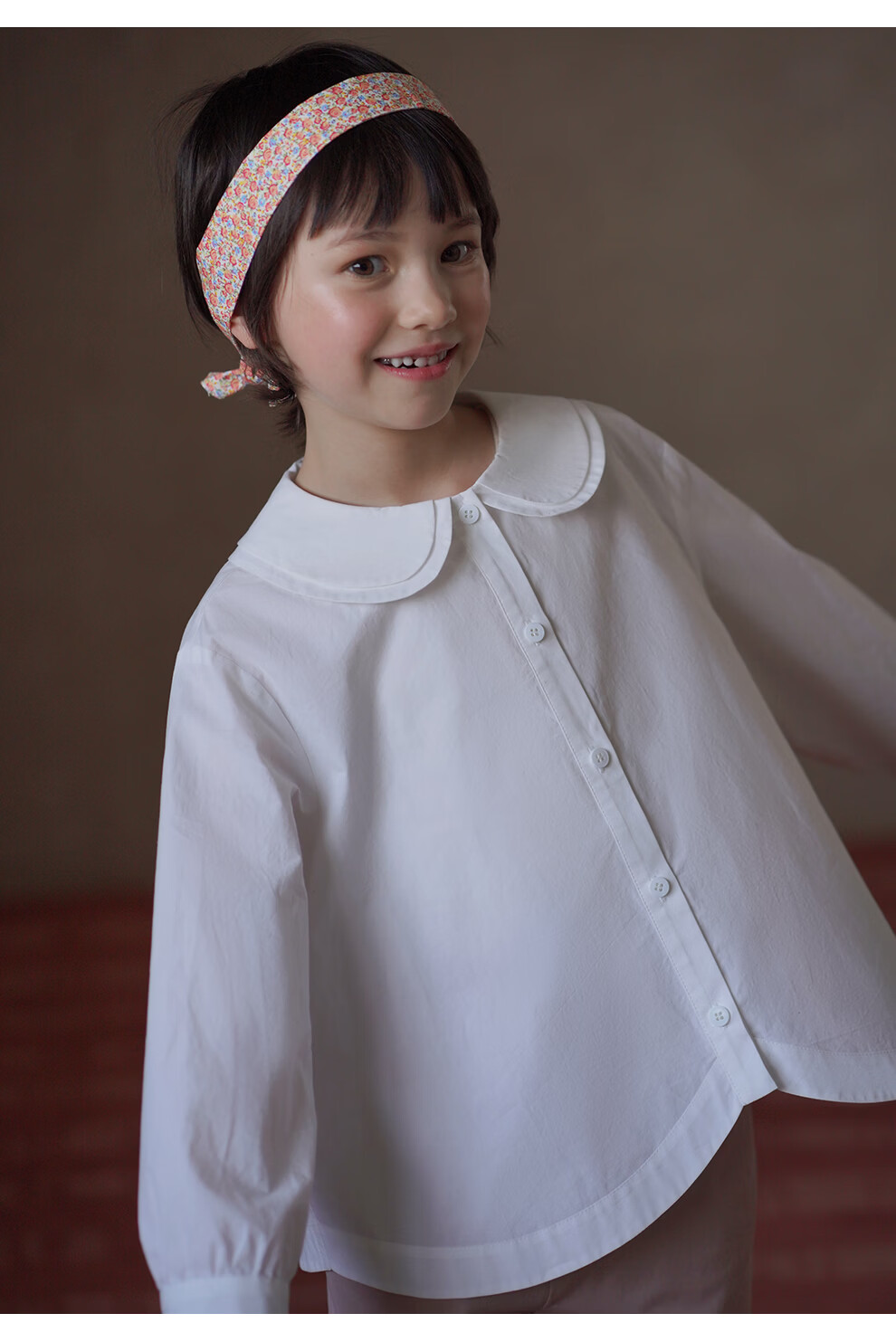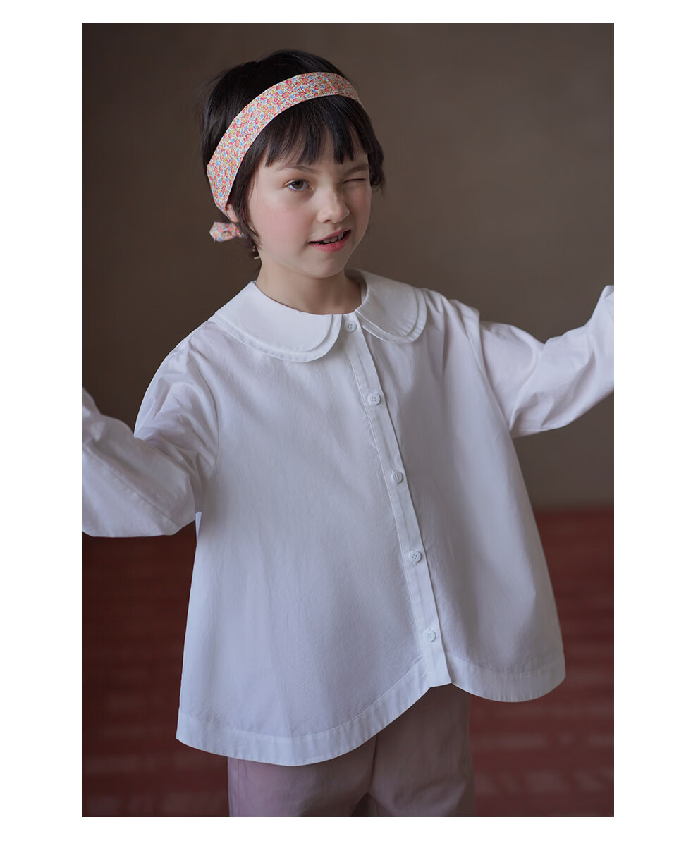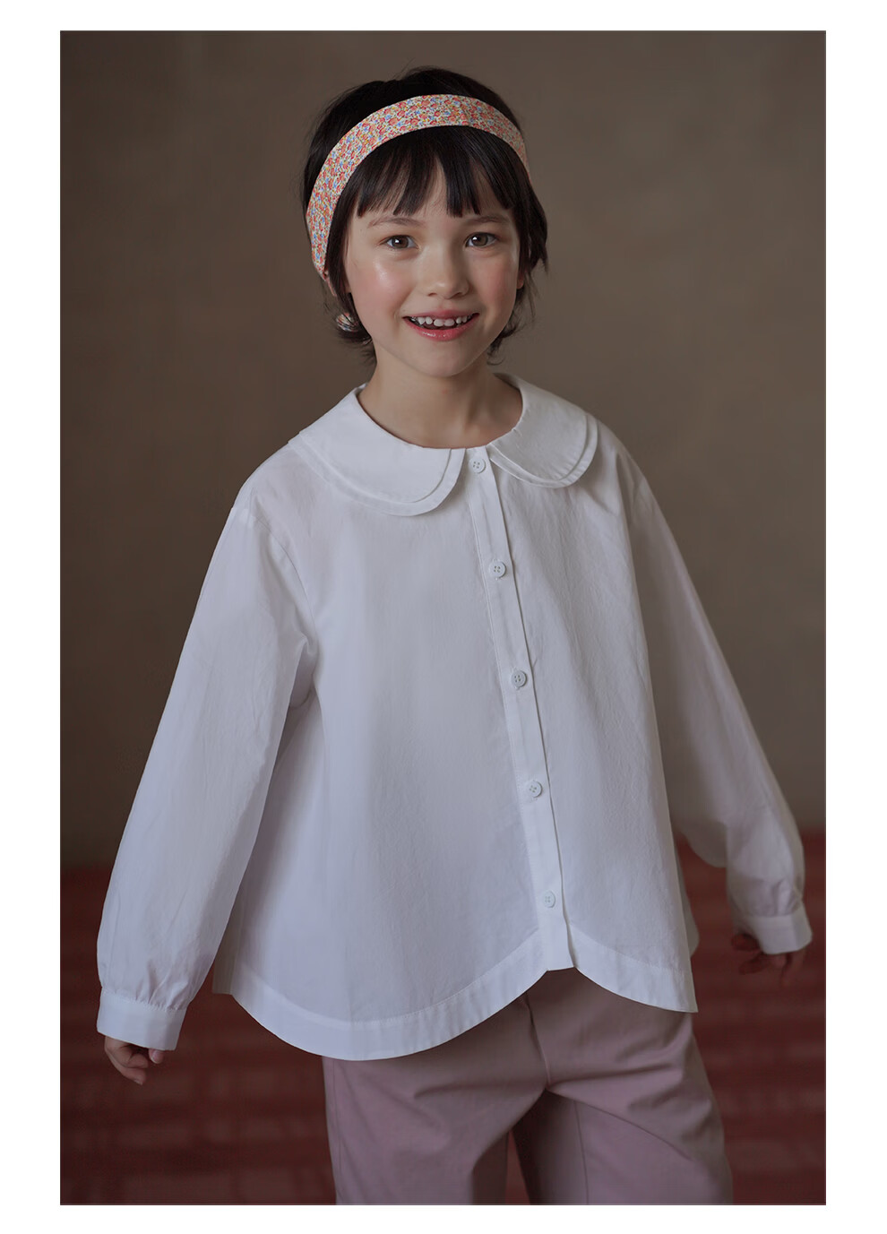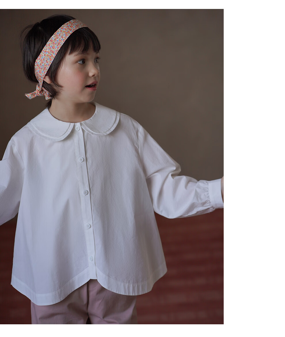 Hacikis children's clothing spring and autumn cotton white shirt children's tops doll collar loose long-sleeved shirt girls spring clothing 2026 new style