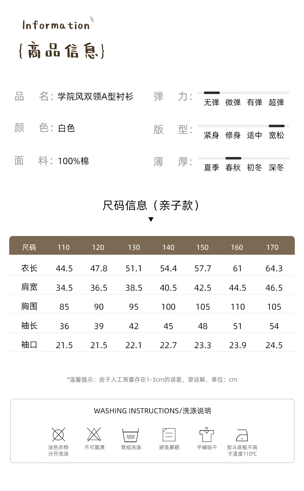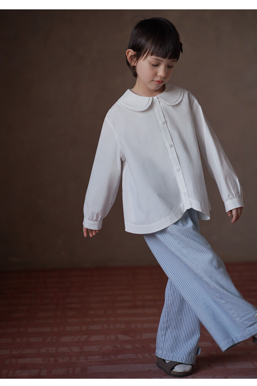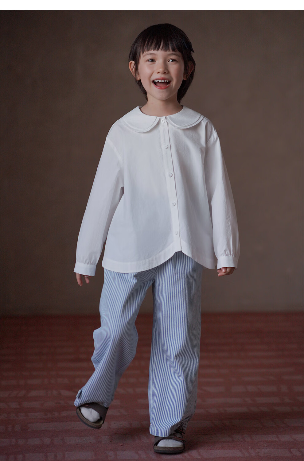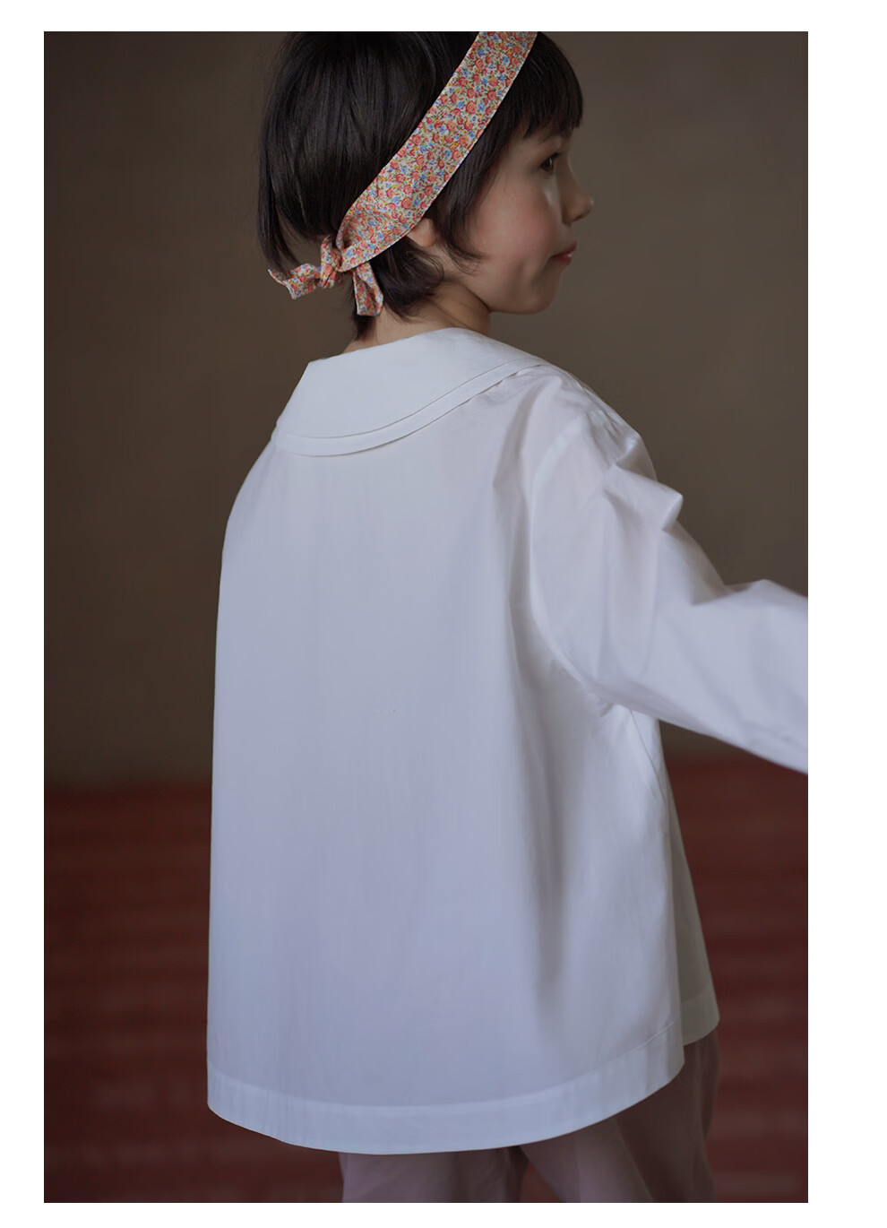 Hacikis children's clothing spring and autumn cotton white shirt children's tops doll collar loose long-sleeved shirt girls spring clothing 2026 new style
