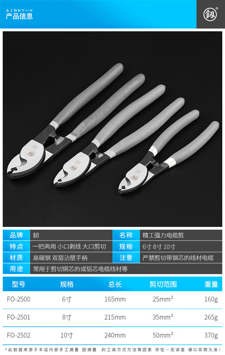 Fukuoka Tools Seiko Powerful Cable Cutter Steel Cable Scissors Cable Cutting Pliers Cable Scissors 8 inches