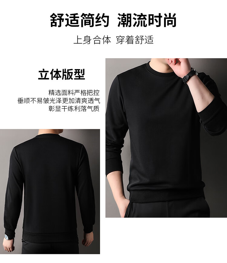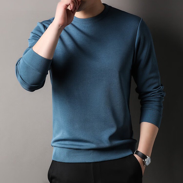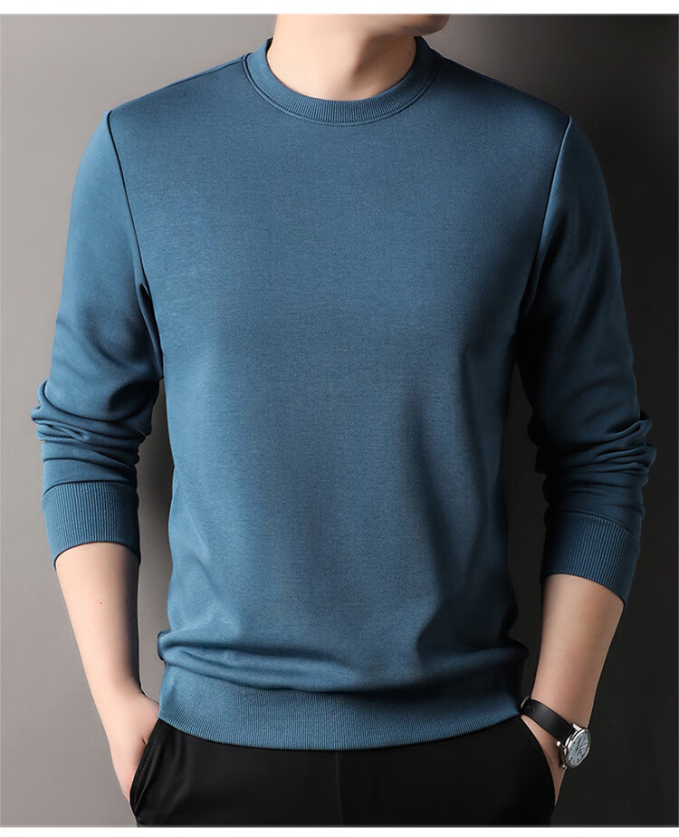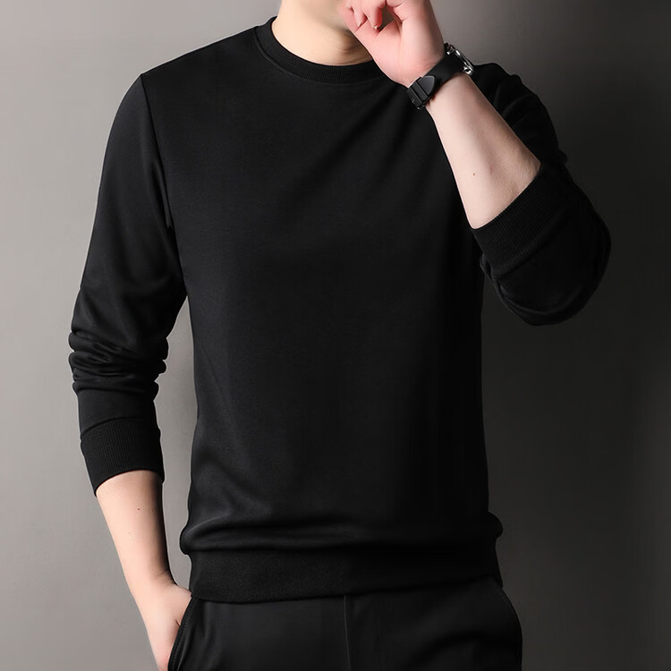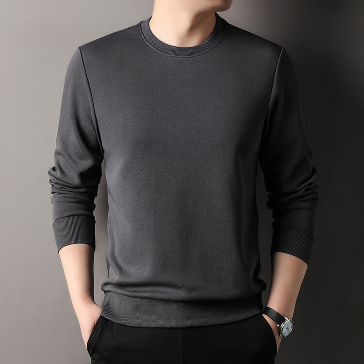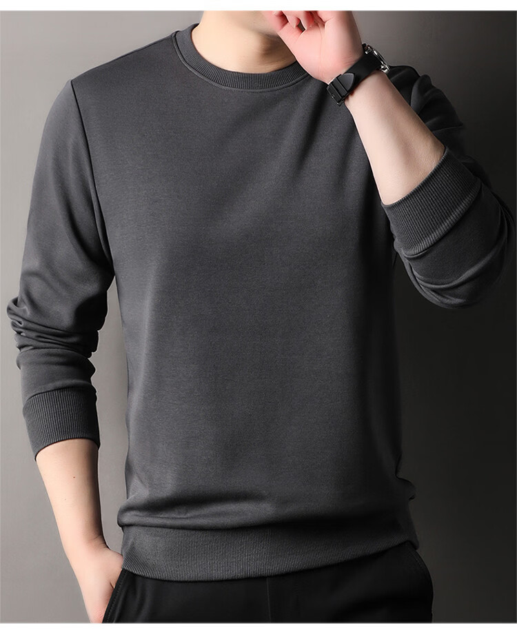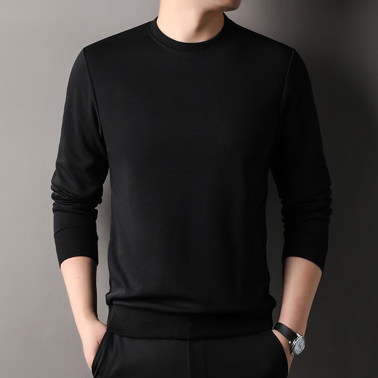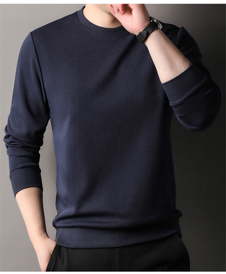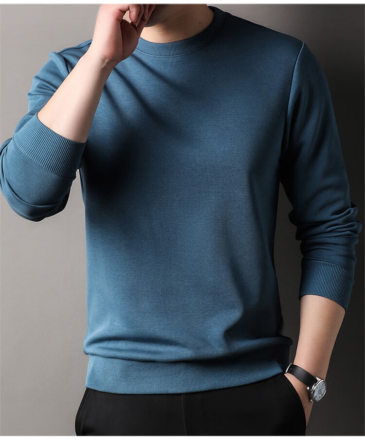Romon long-sleeved T-shirt with mulberry silk men's round neck sweatshirt 2026 spring and autumn new versatile base shirt