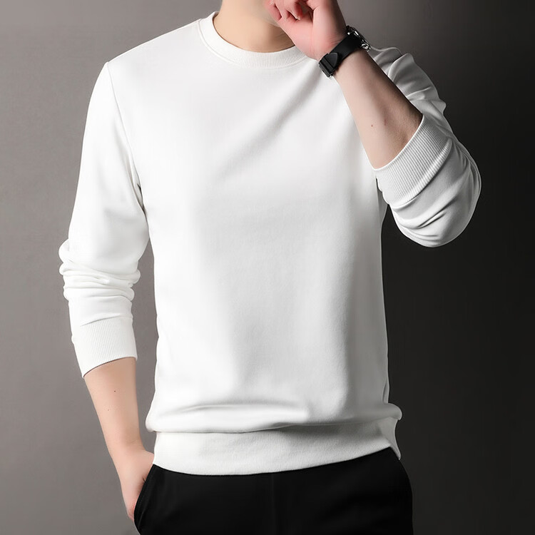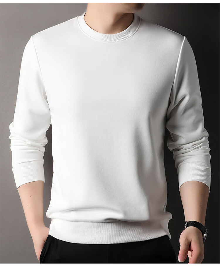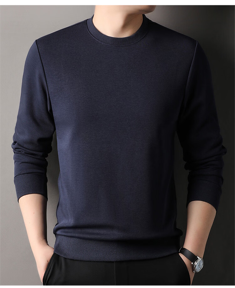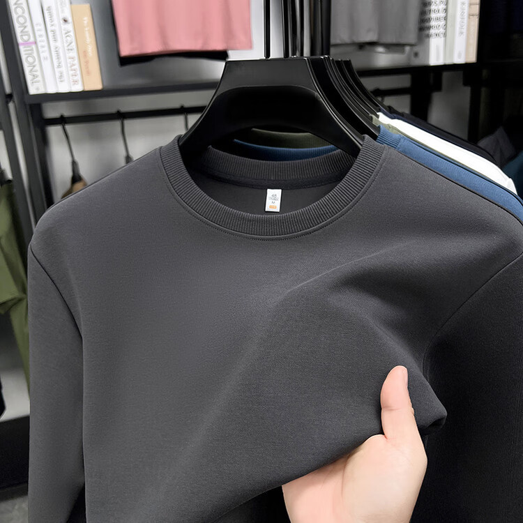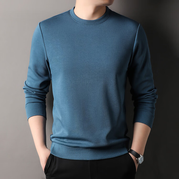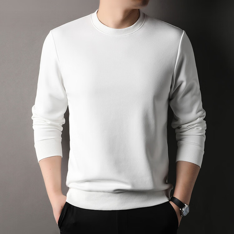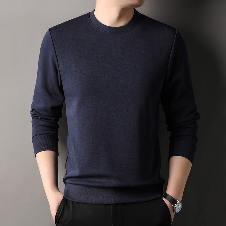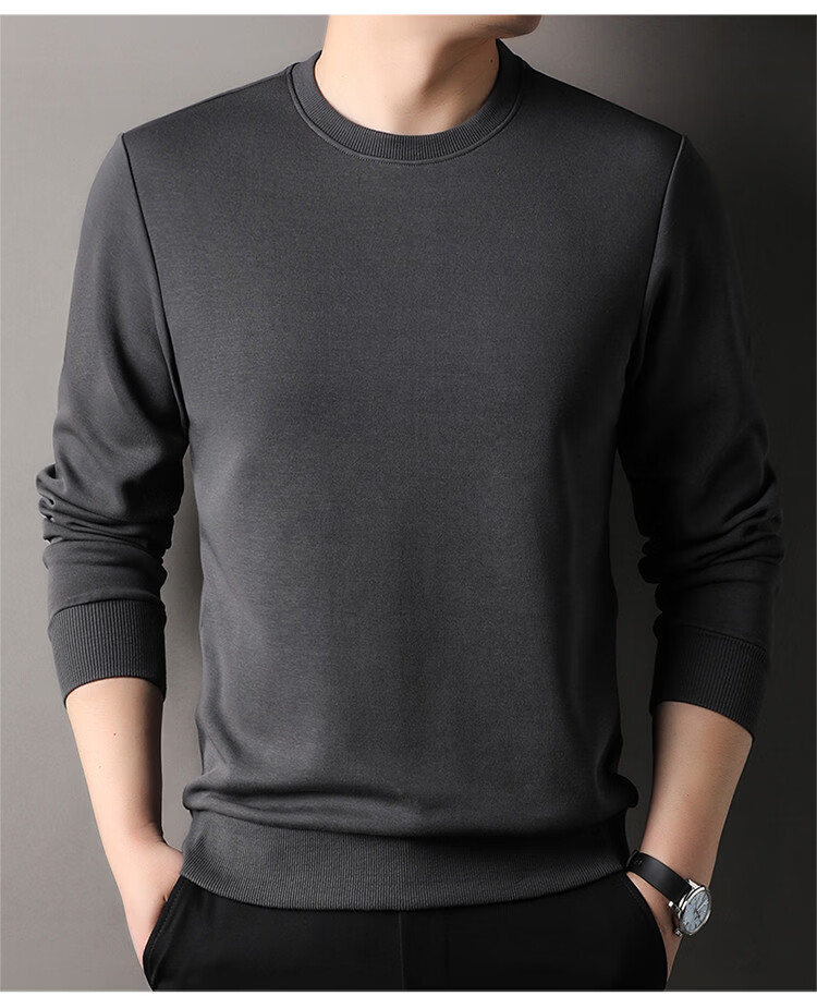 Romon long-sleeved T-shirt with mulberry silk men's round neck sweatshirt 2026 spring and autumn new versatile base shirt