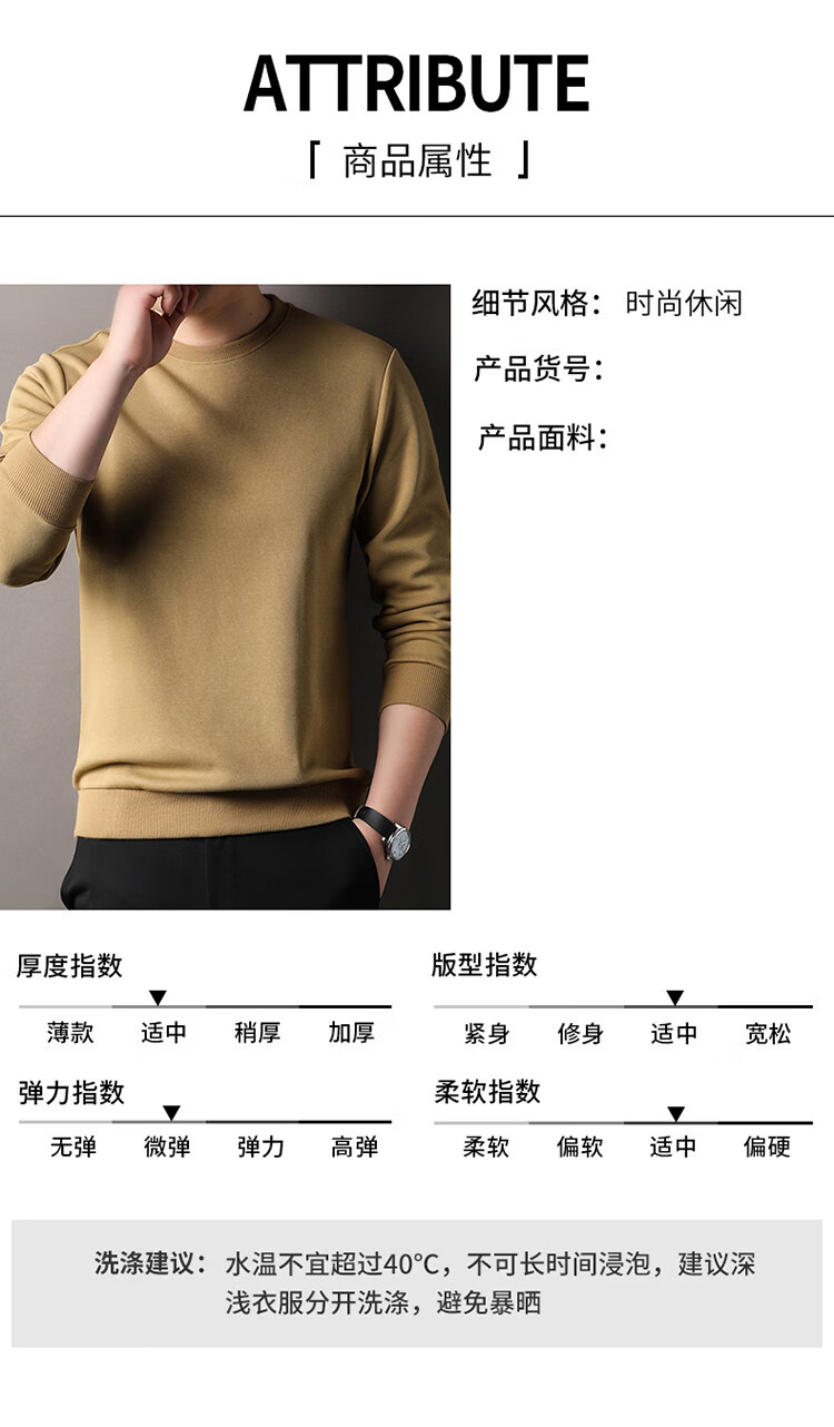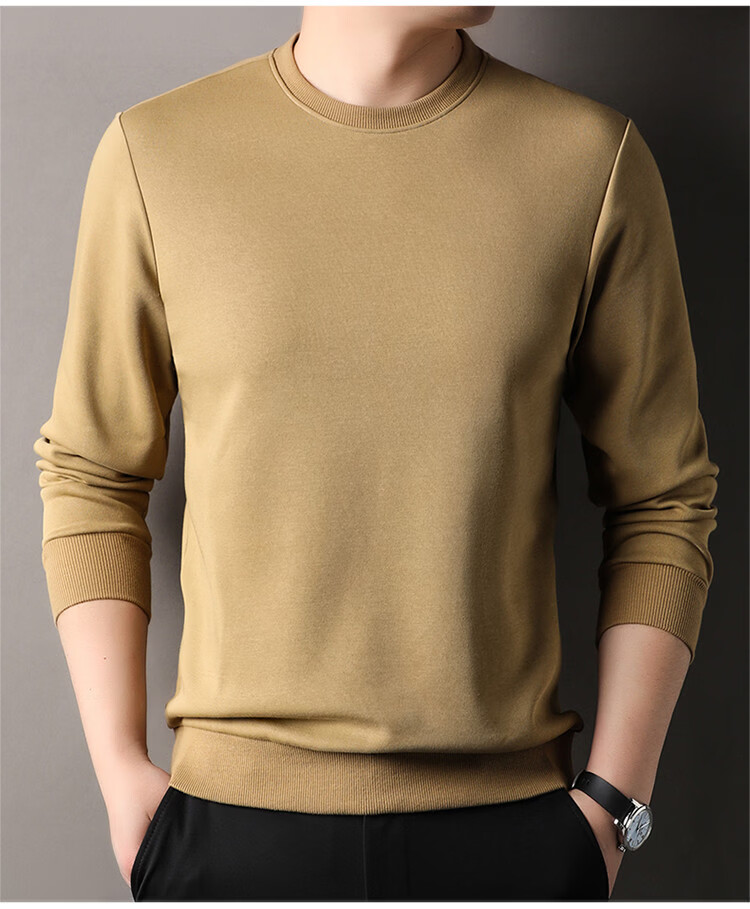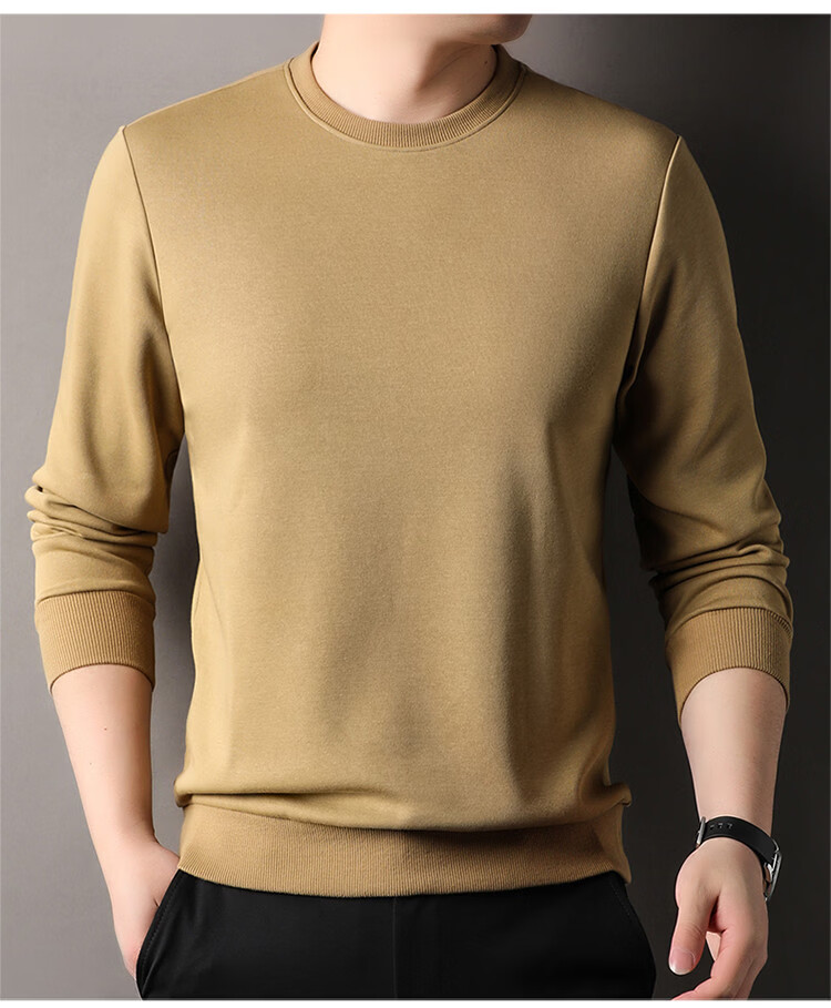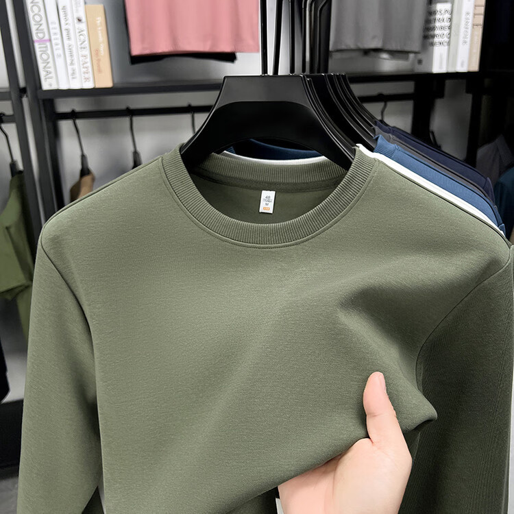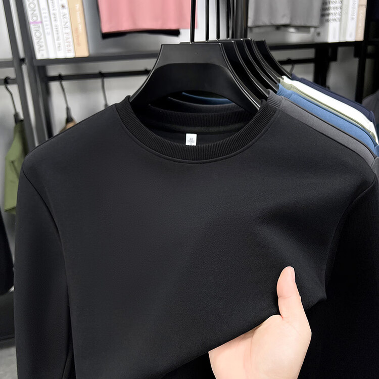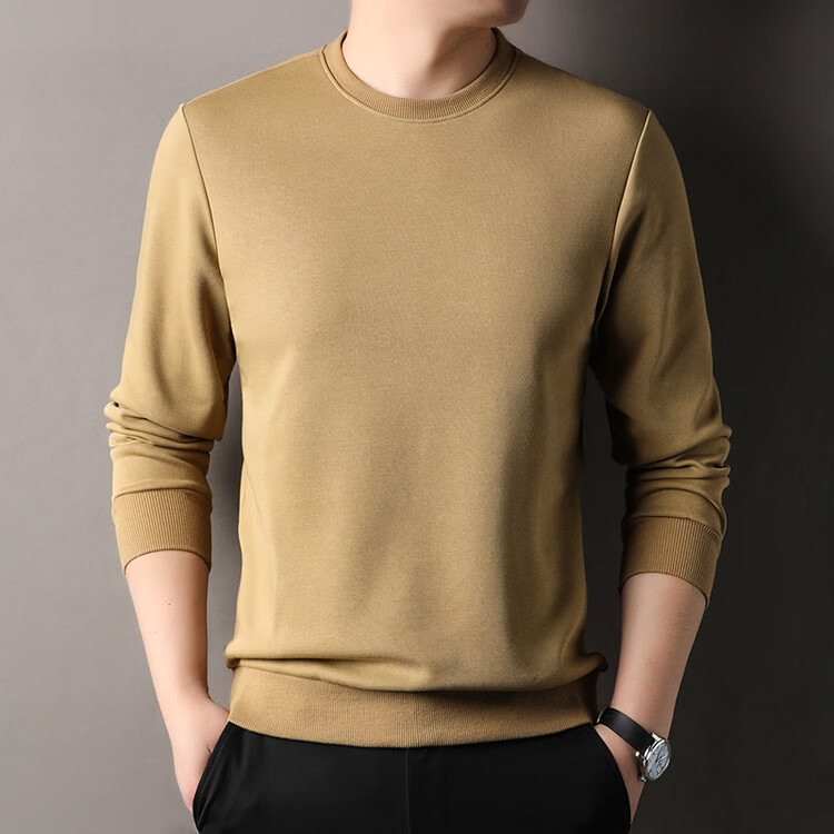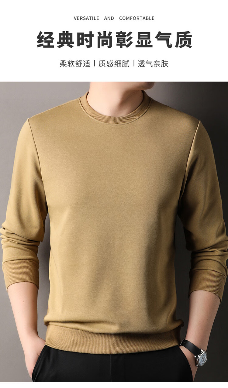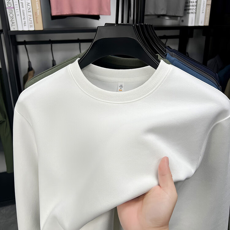 Romon long-sleeved T-shirt with mulberry silk men's round neck sweatshirt 2026 spring and autumn new versatile base shirt