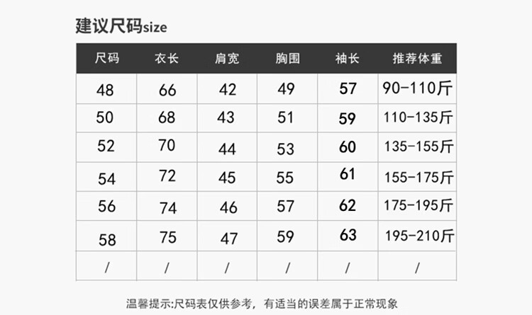China (cm) 165 / 88-90 170 / 96-98 175 / 108-110 180 / 118-122 185 / 126-130