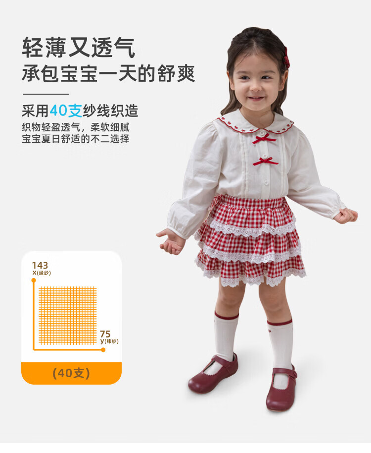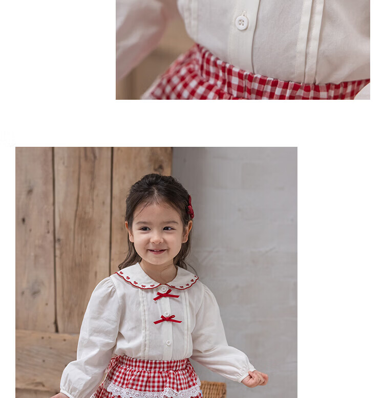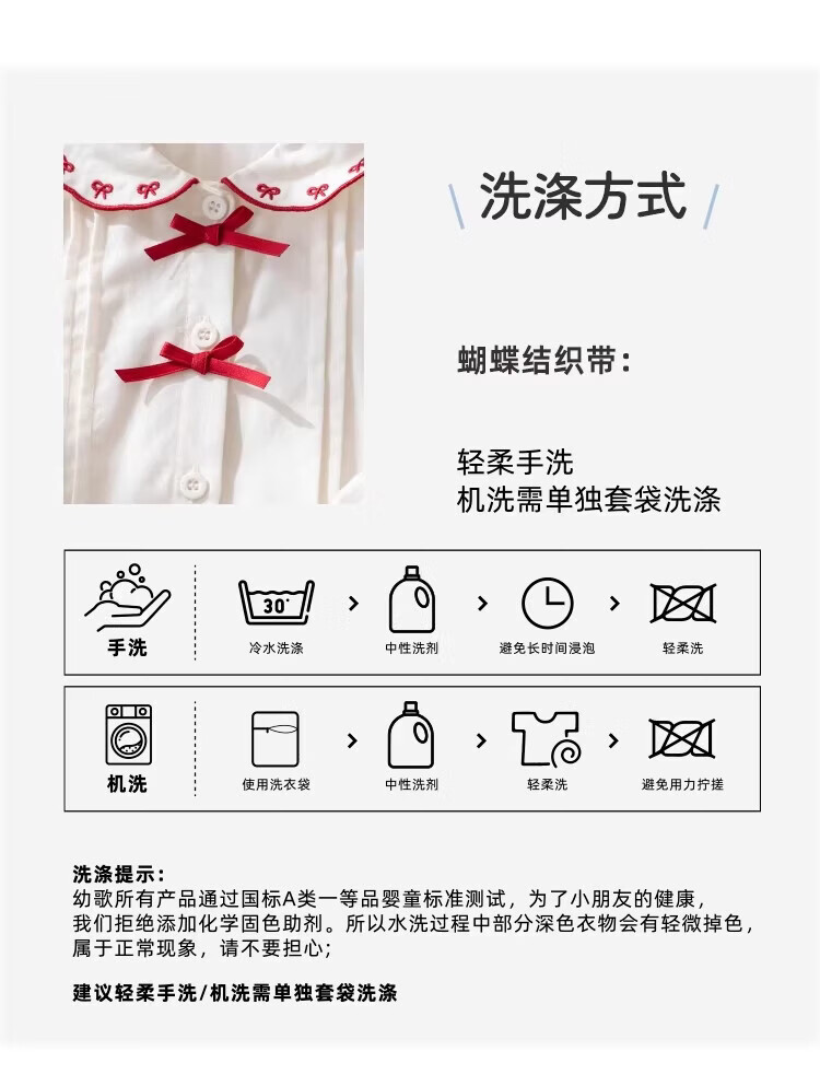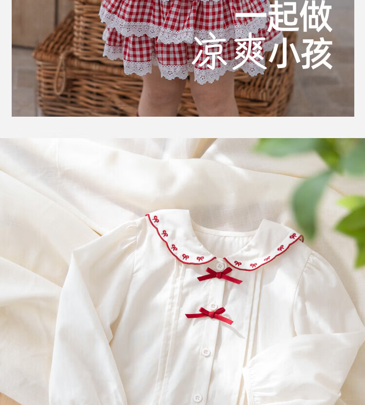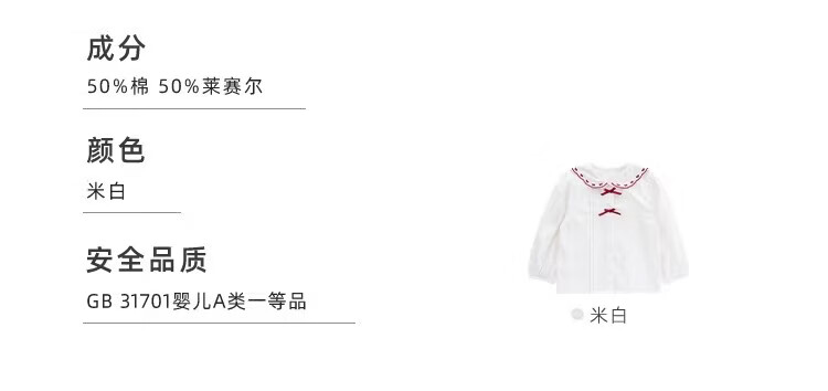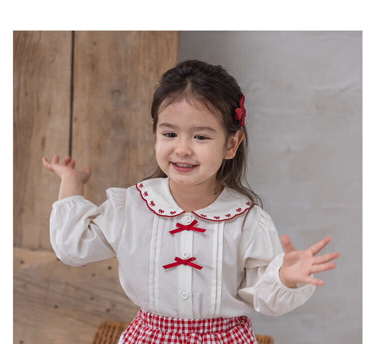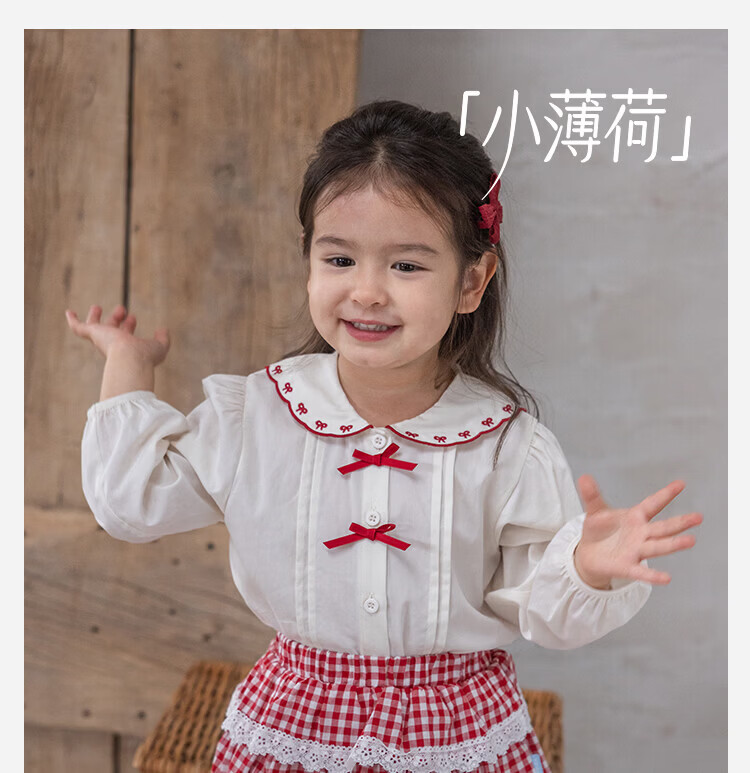 YOUGE spring new sweet bow navy collar shirt for infants and young children, loose and comfortable top