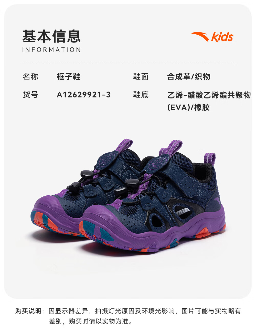 ANTA Children's Sandals Boys 2026 Summer Breathable Anti-Slip Drawstring Frame Shoes A12629921