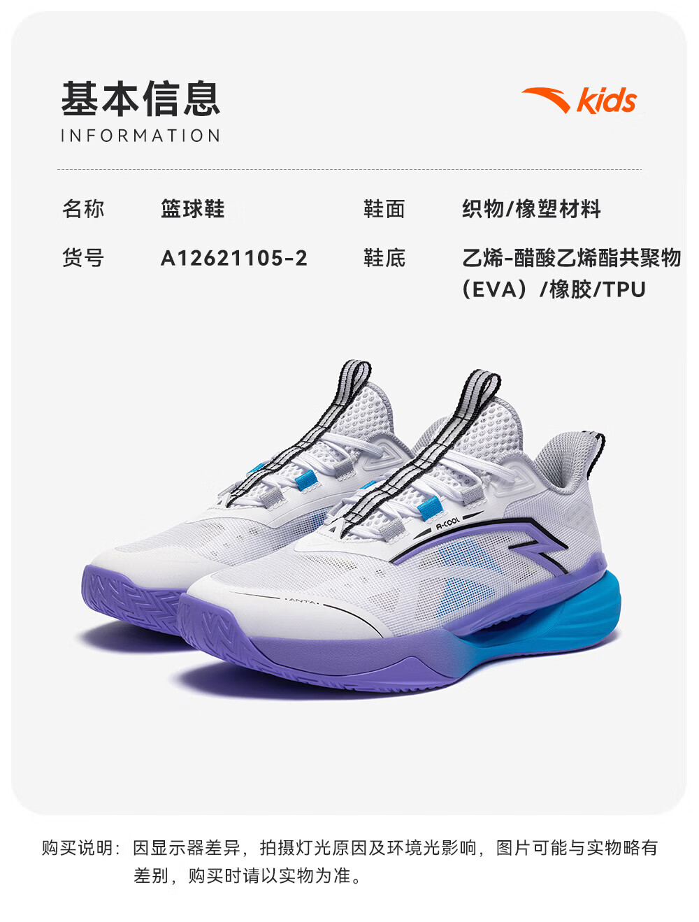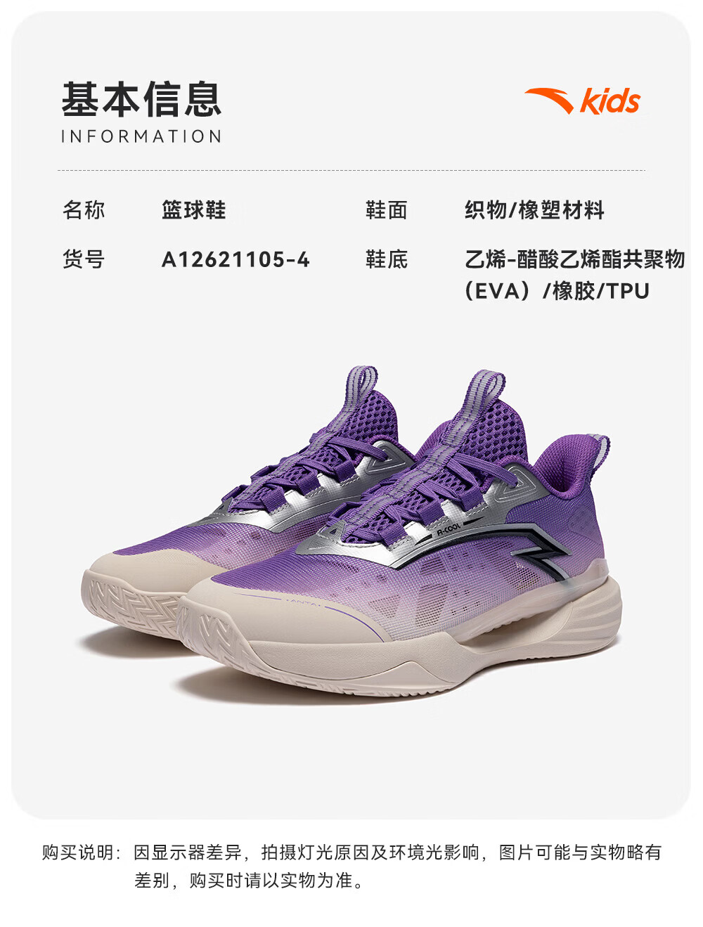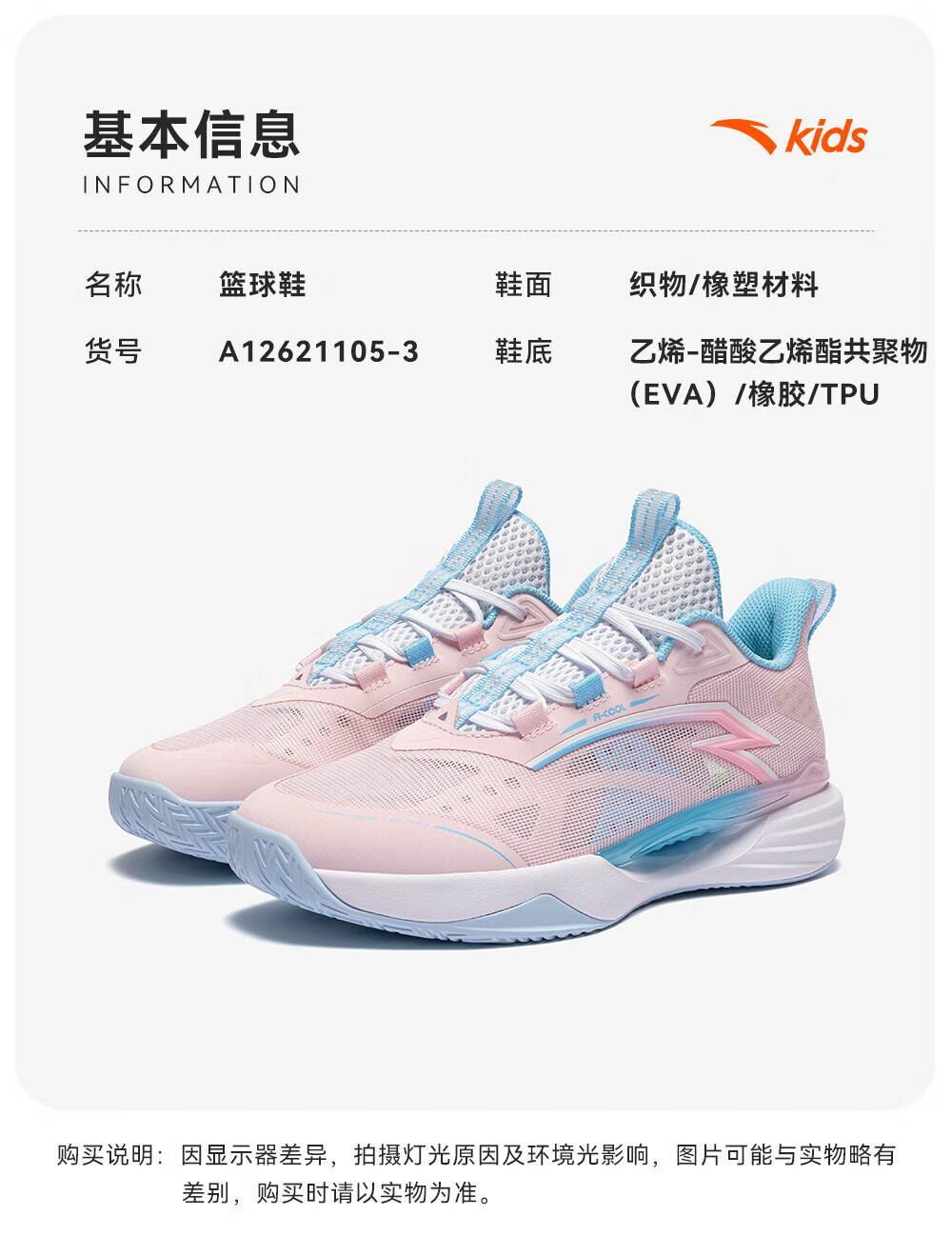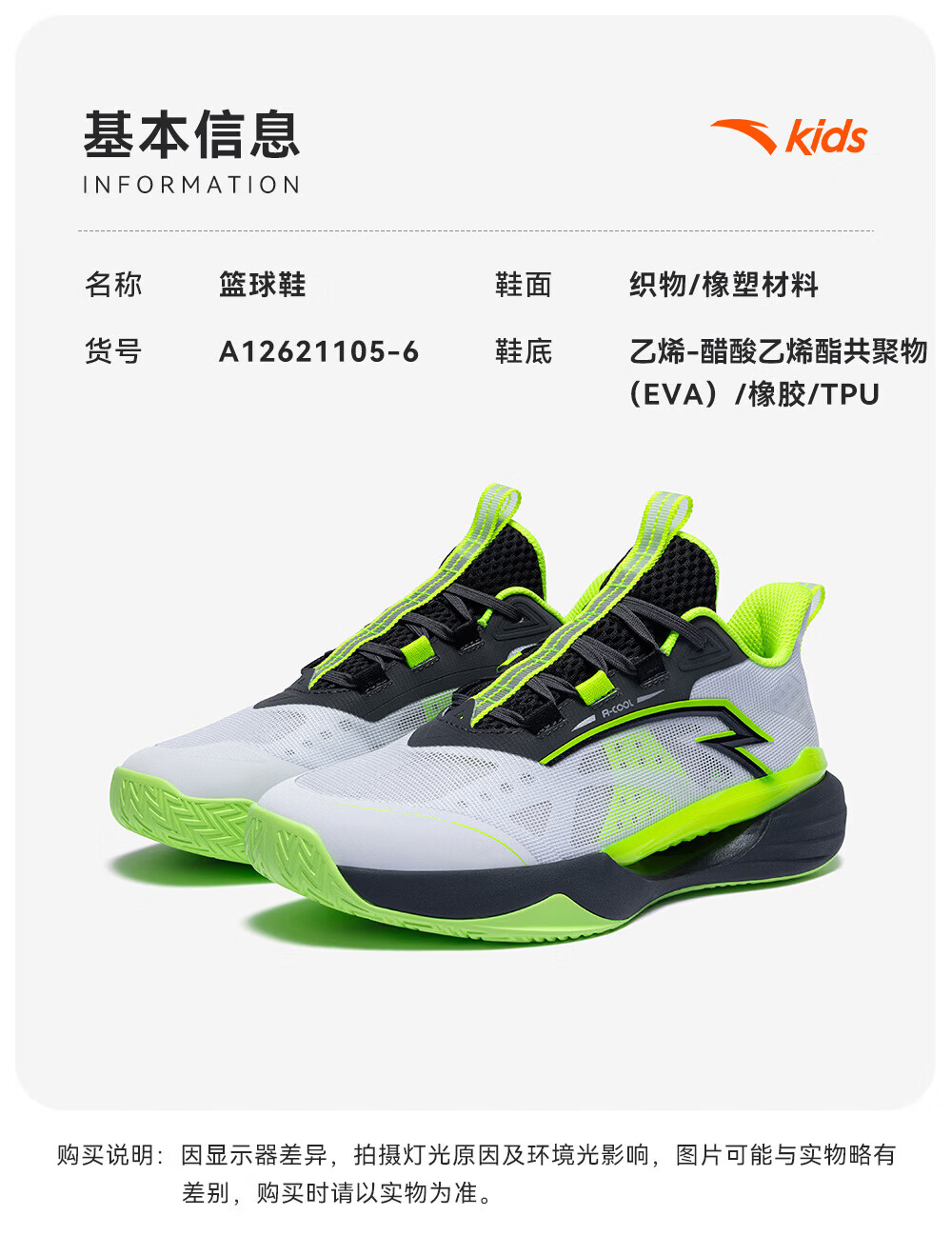 ANTA Children's Sports Shoes for Boys 2026 Summer Mesh Breathable Practical Wind Tunnel Basketball Shoes A12621105
