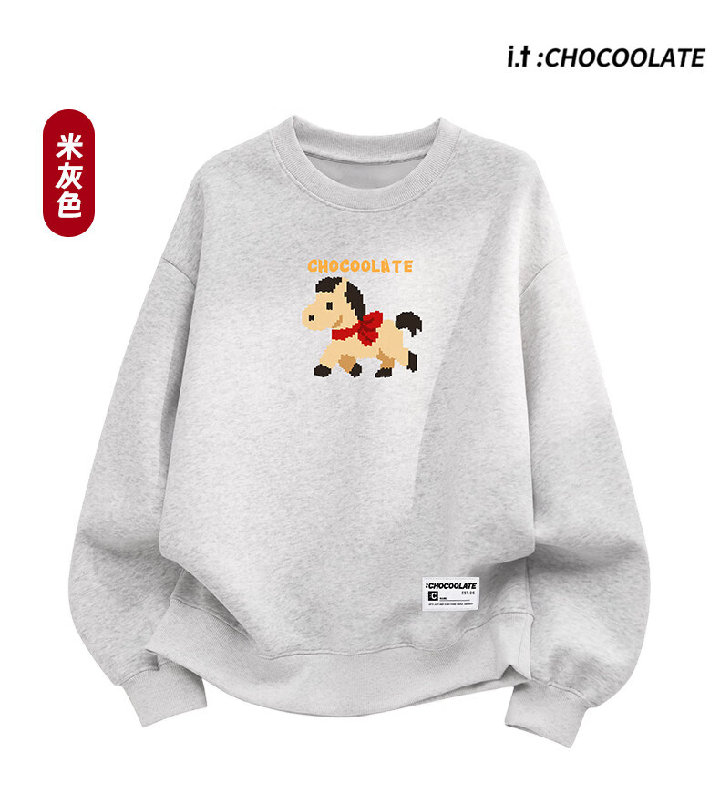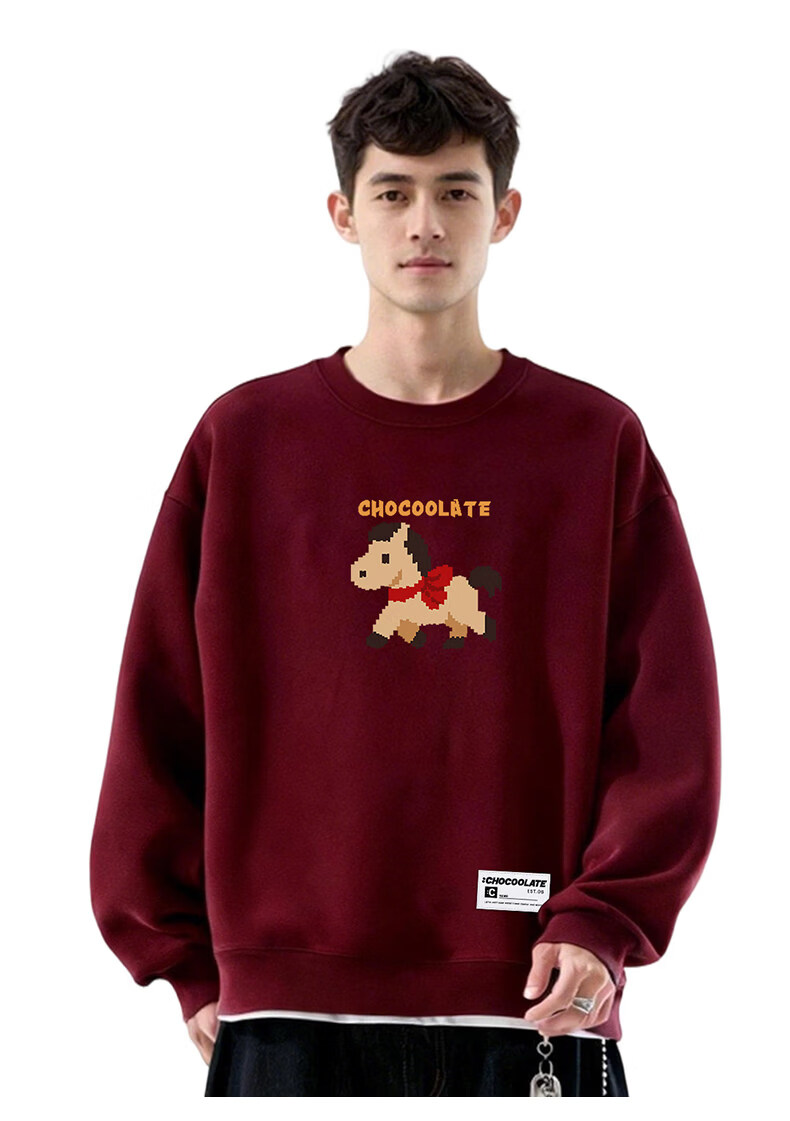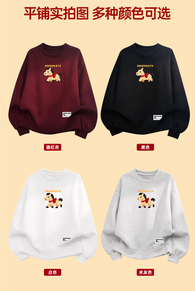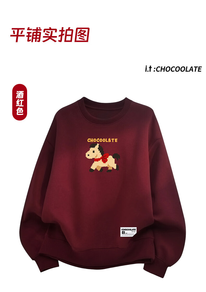 CHOCOOLATEit Year of the Horse cartoon print round-neck sweatshirt spring and autumn same style burgundy top for men and women beige M