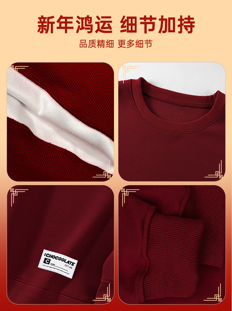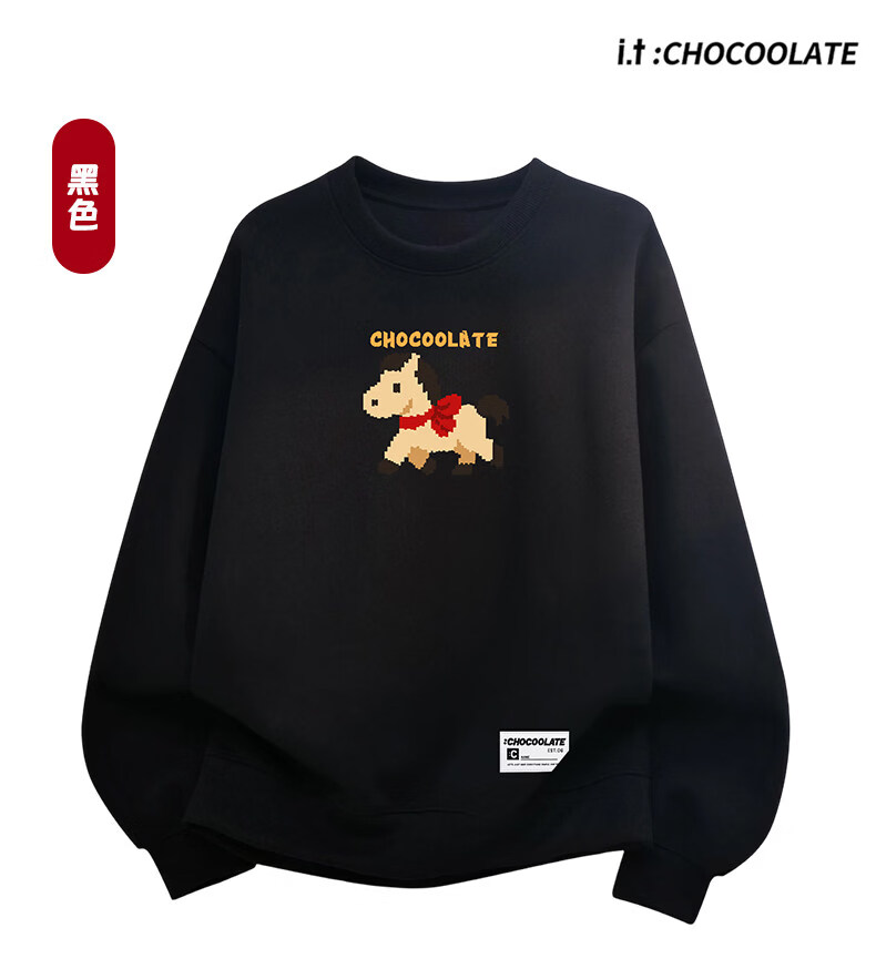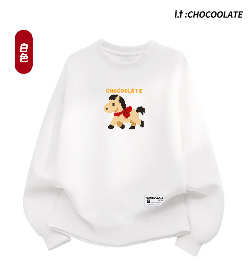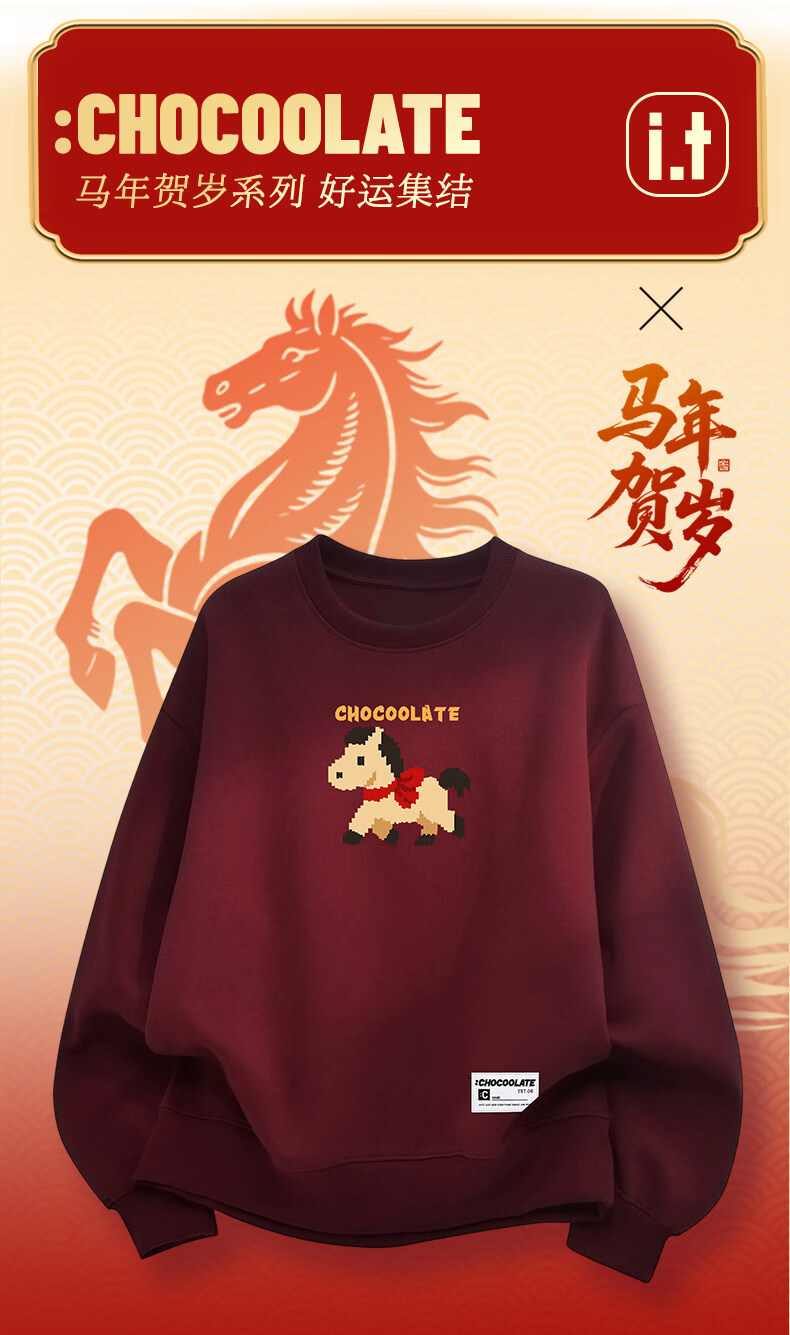 CHOCOOLATEit Year of the Horse cartoon print round-neck sweatshirt spring and autumn same style burgundy top for men and women beige M