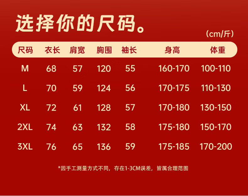 China (cm) 165 / 88-90 170 / 96-98 175 / 108-110 180 / 118-122 185 / 126-130