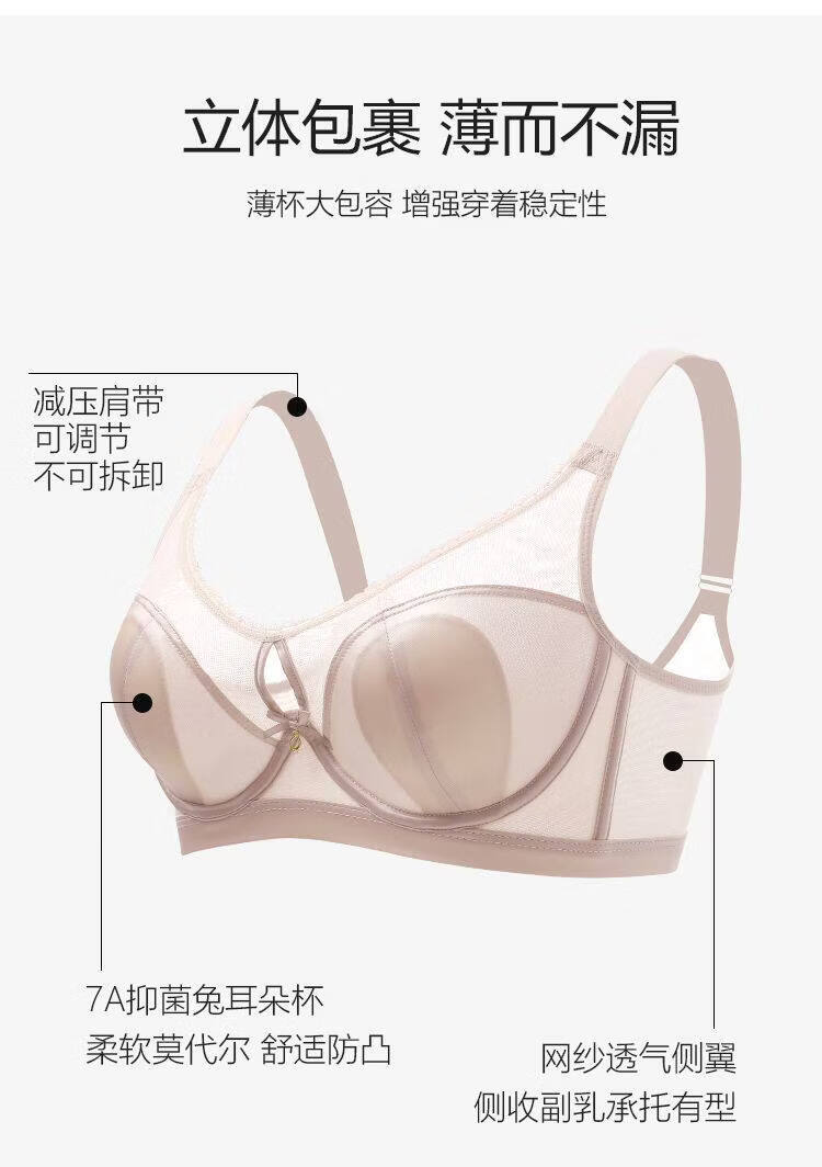 Ancient and modern (GUJIN) sexy underwear for women, ultra-thin cup, large breasts, small breasts, secondary breasts, anti-sagging, soft steel ring bra, underwear