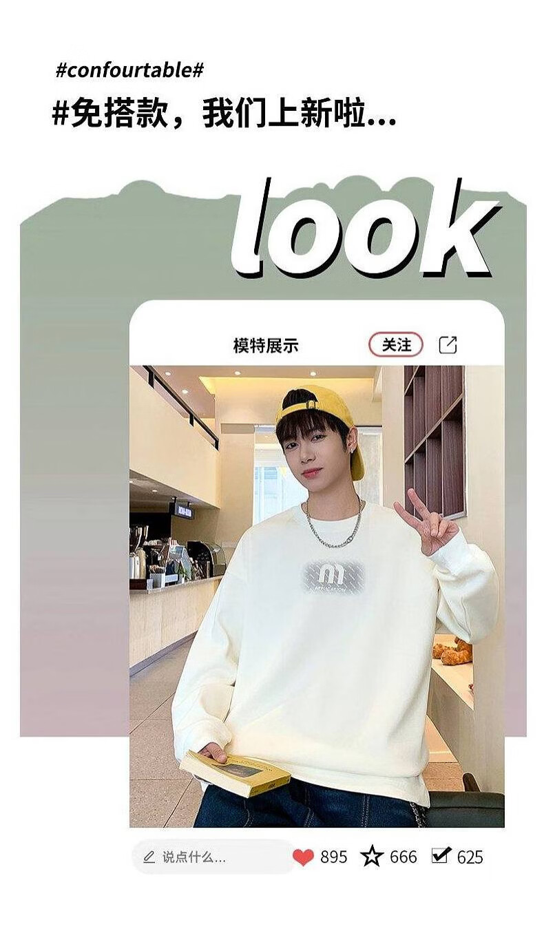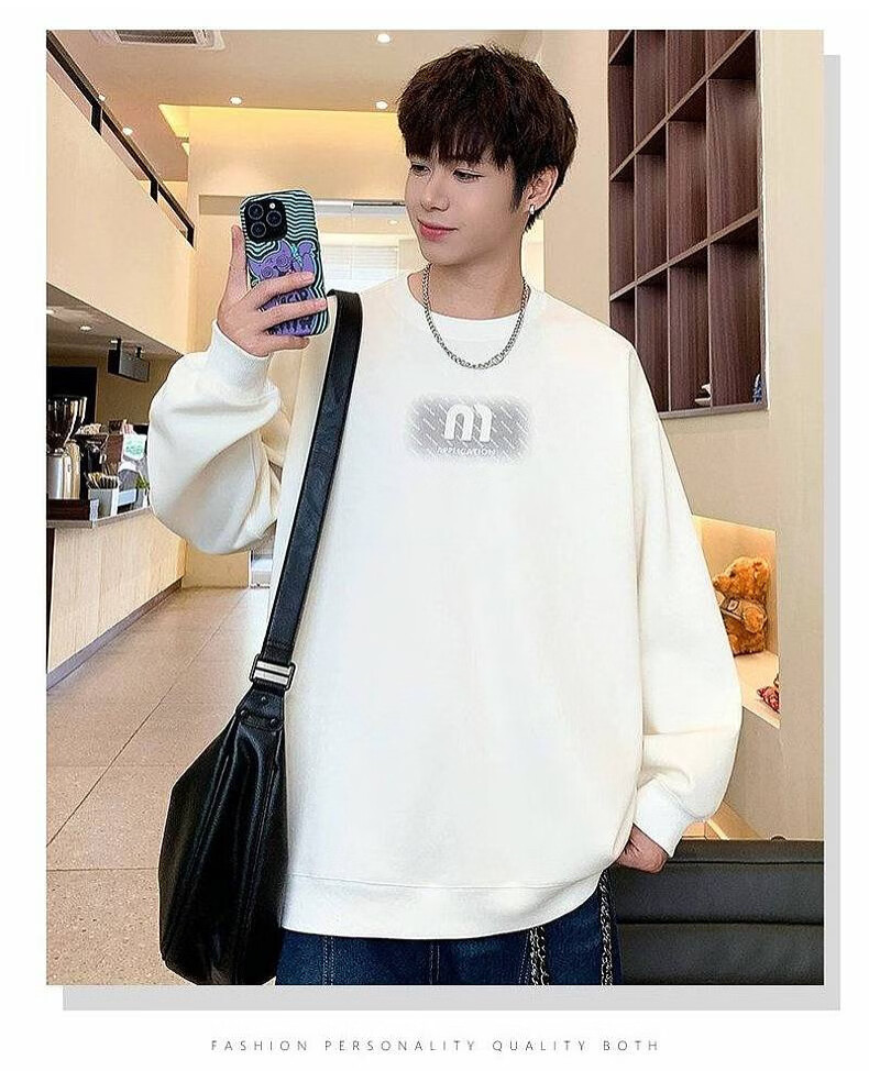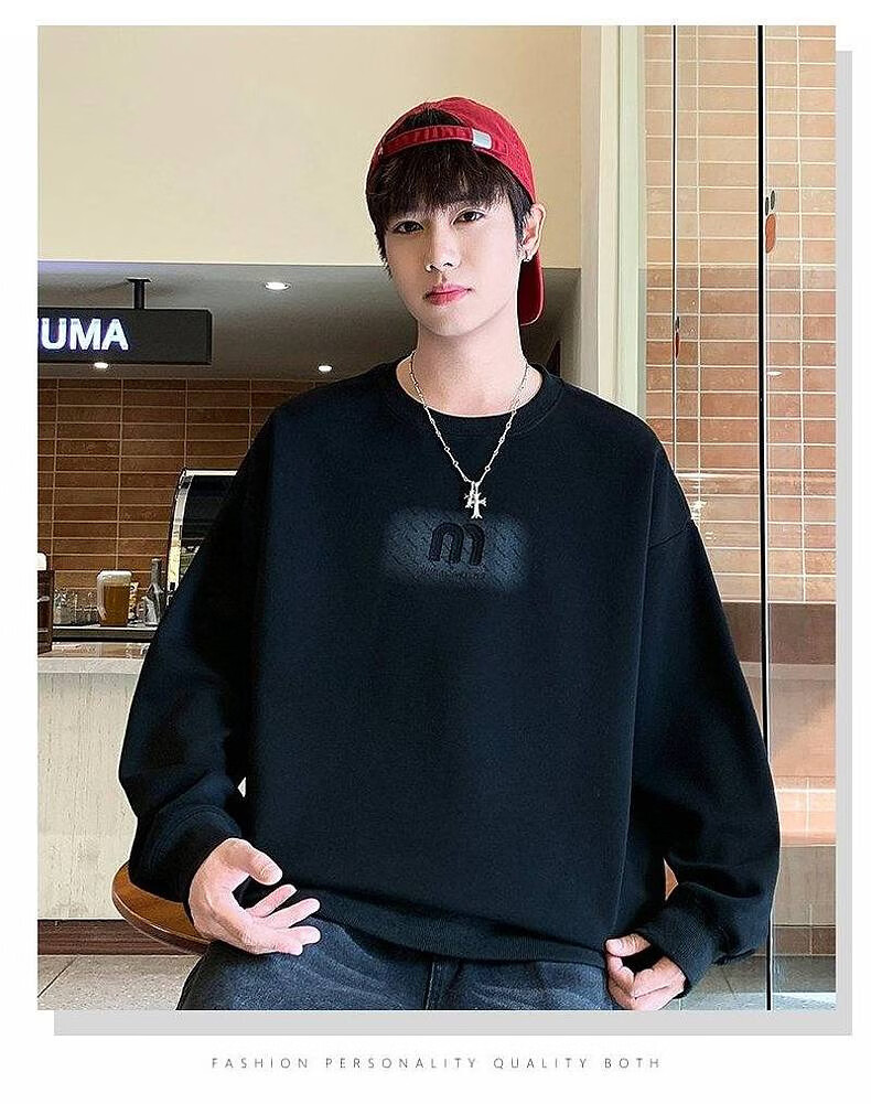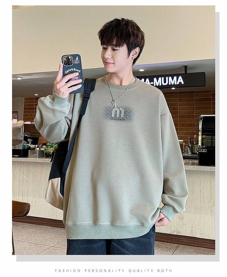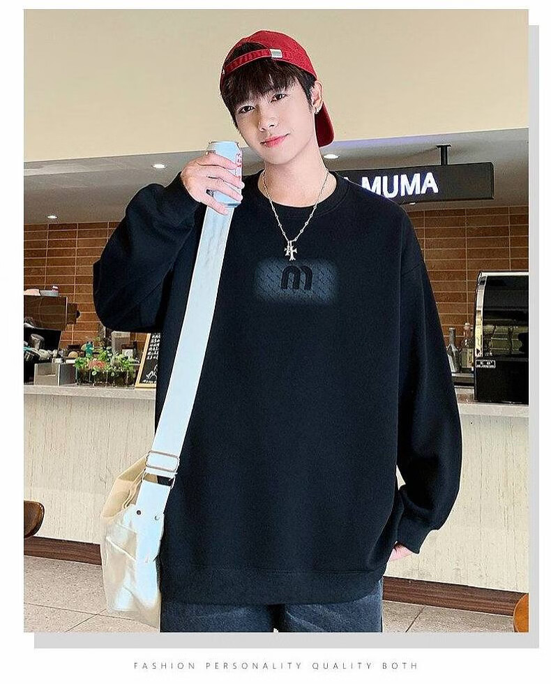 Xiaofu casual long-sleeved sweatshirt men's spring round neck pullover loose slim versatile sportswear top simple men's clothing