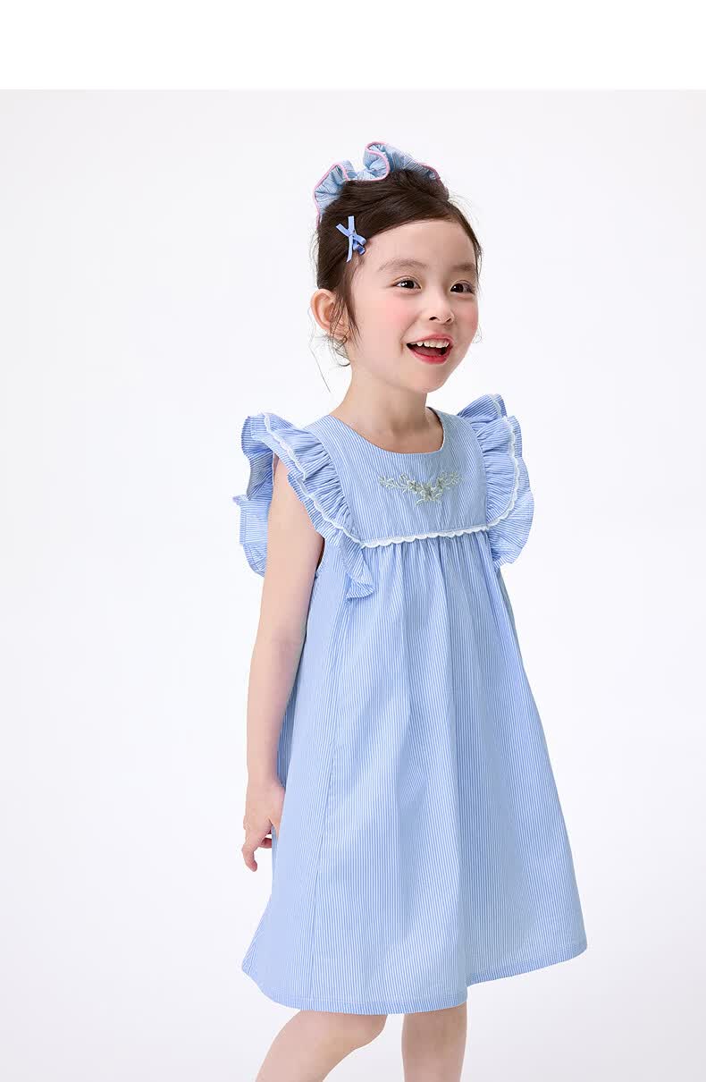Xiaoyinman children's clothing girl's flying sleeve dress 26 summer children's striped skirt girl's playful A-line skirt
