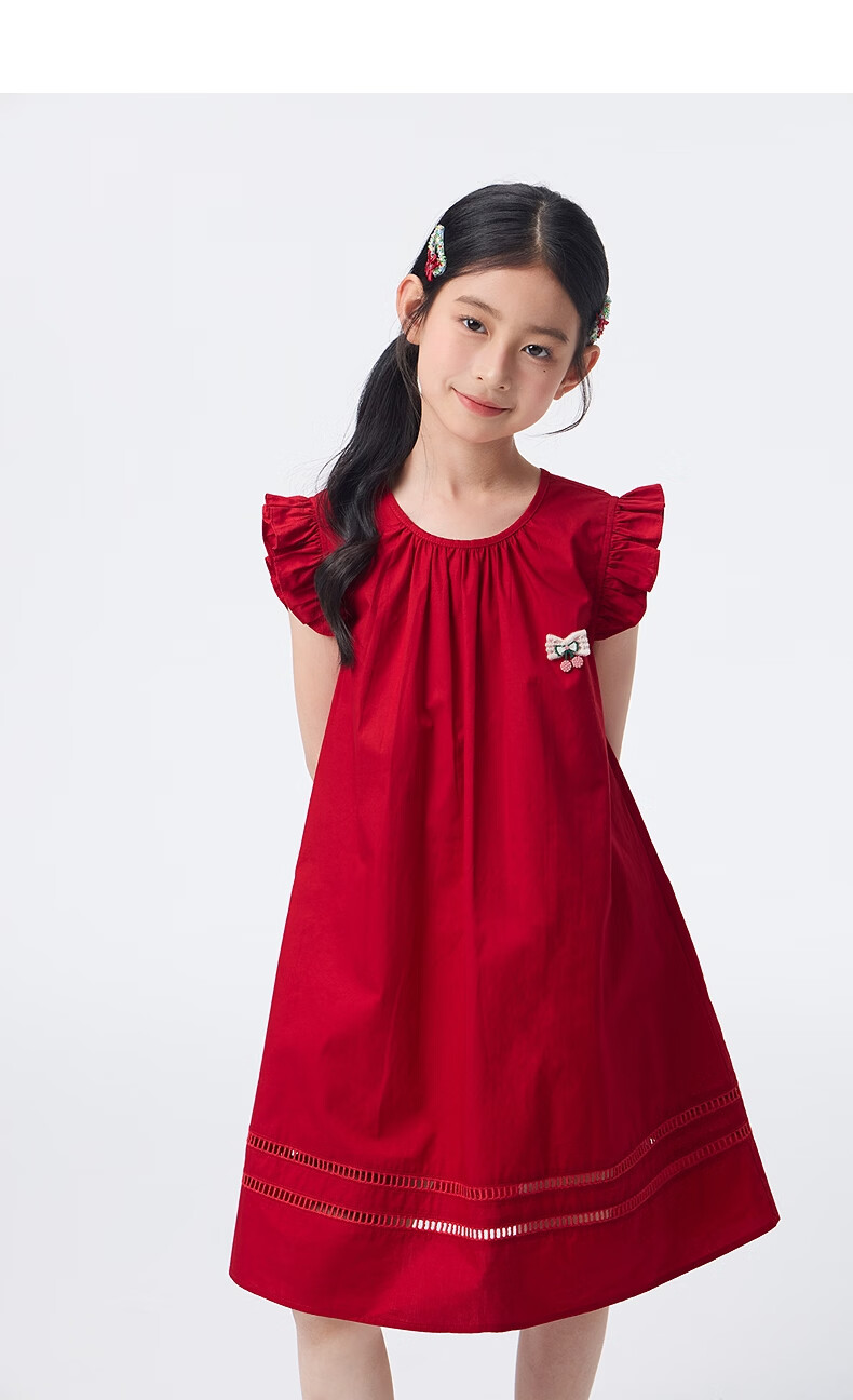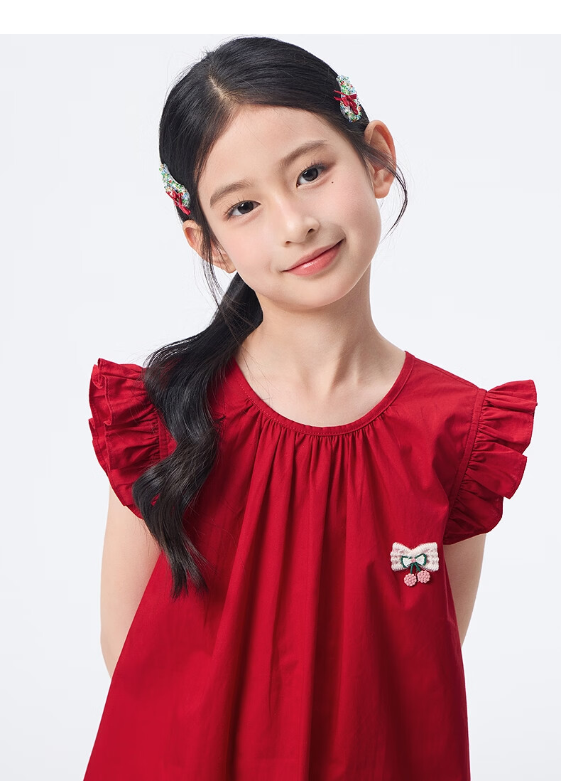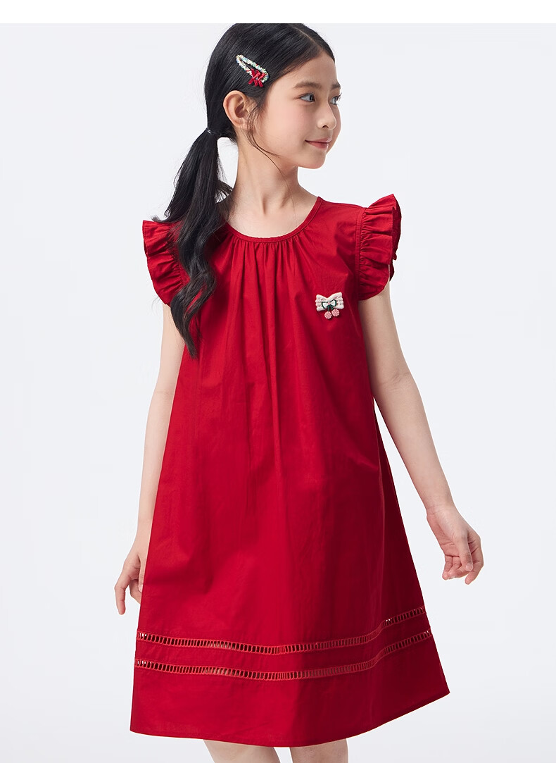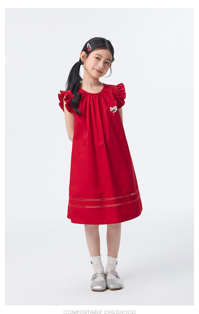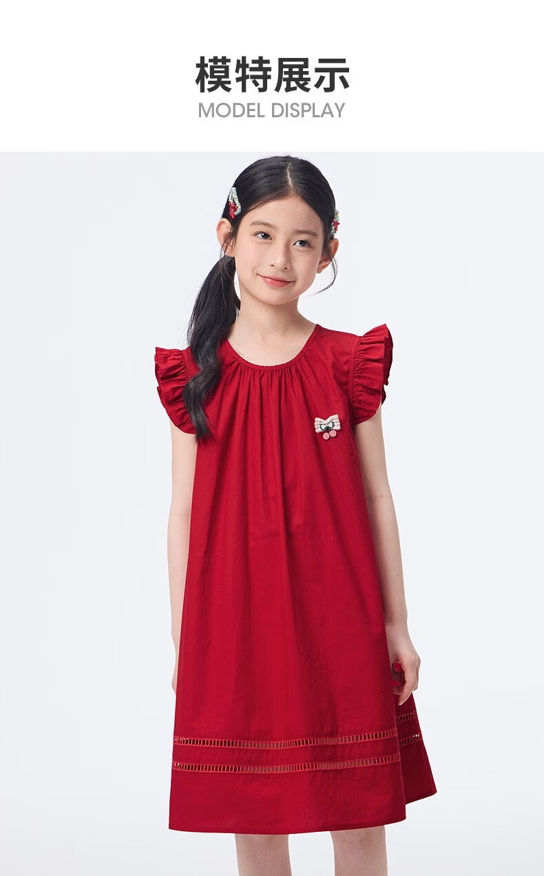 Xiaoyinman children's clothing girls' small flying sleeve dress pure cotton breathable 26 summer middle and large children's round neck casual skirt