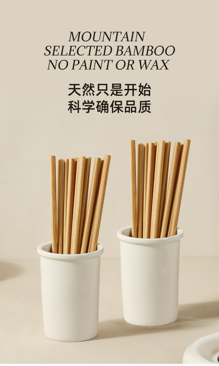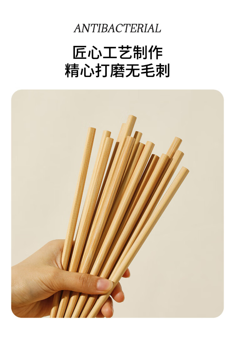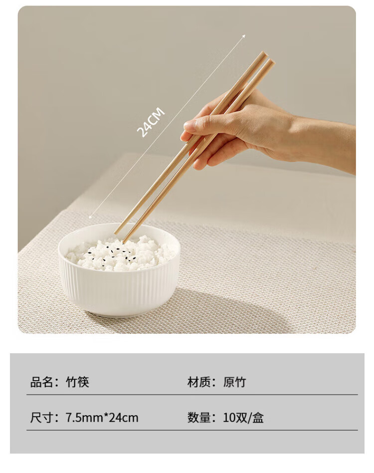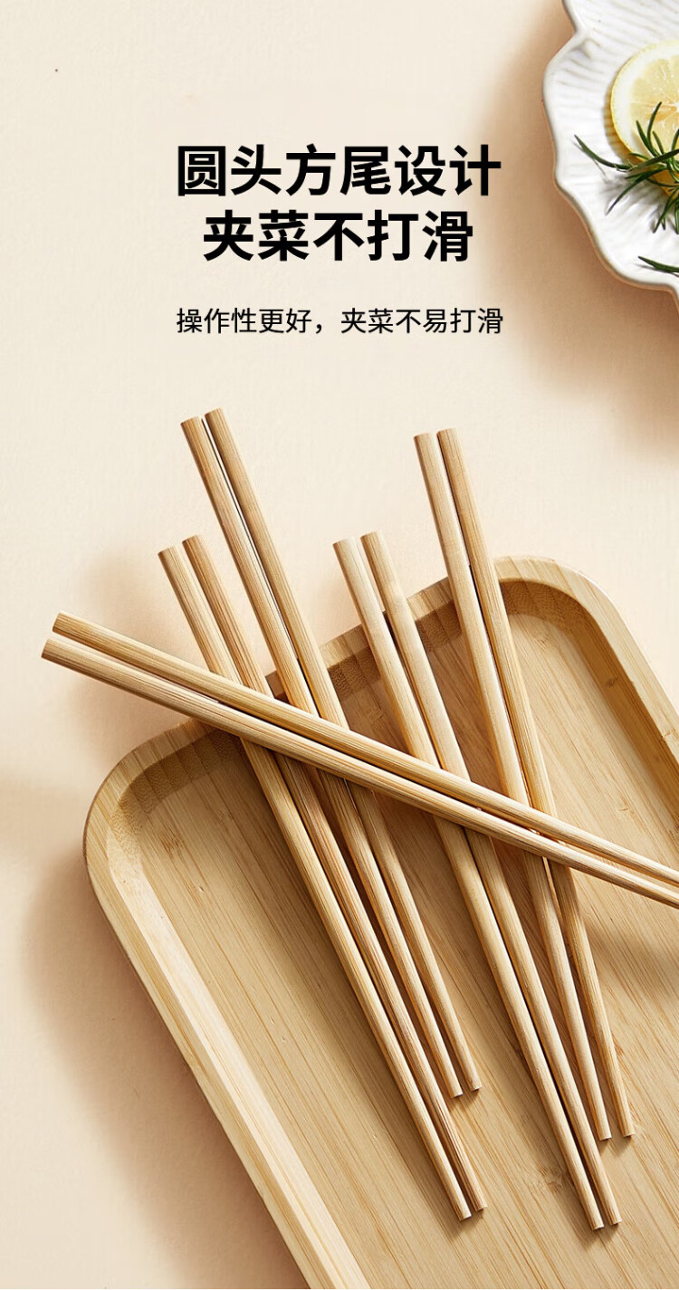 星坊天然竹筷子家用防滑防霉竹质7.5mm竹筷10双盒装