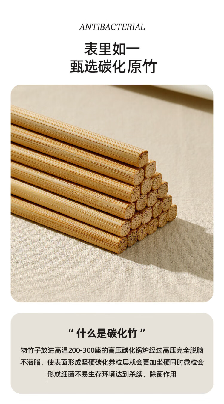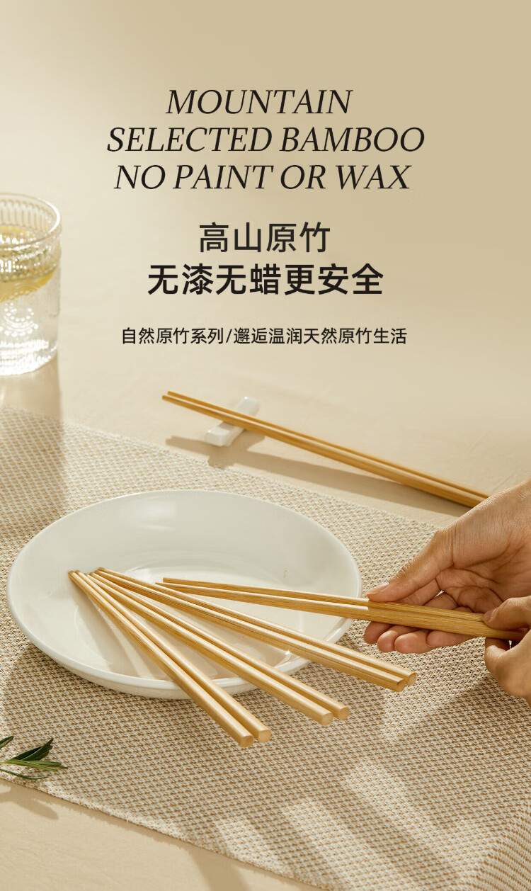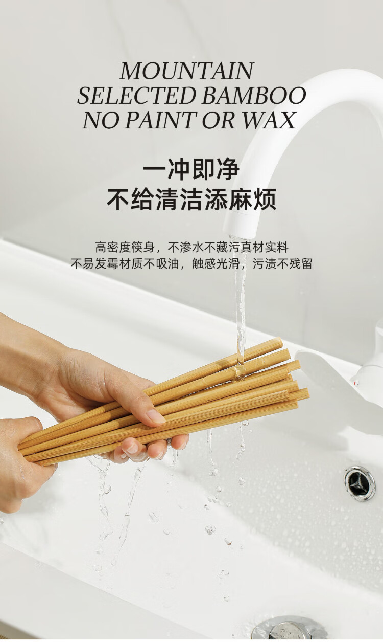 星坊天然竹筷子家用防滑防霉竹质7.5mm竹筷10双盒装