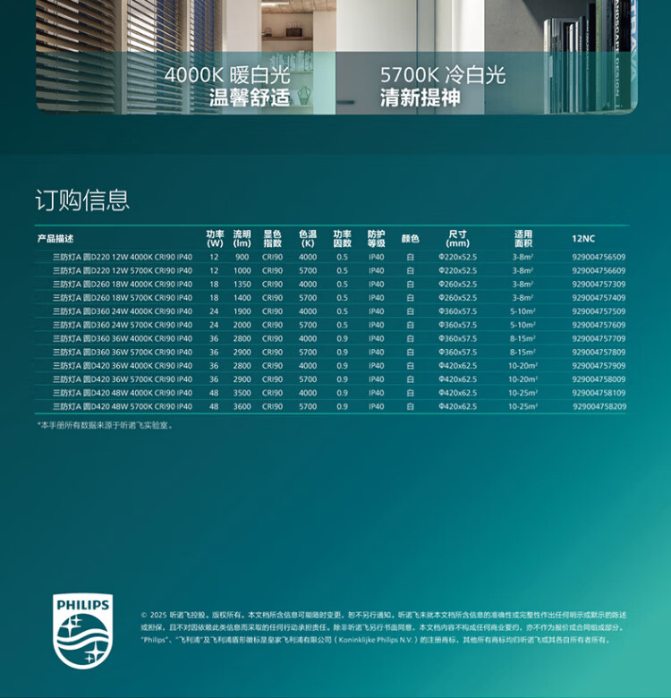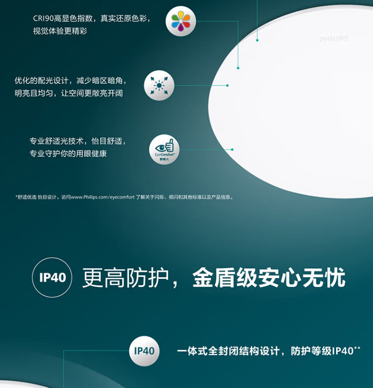 Philips (PHILIPS) full spectrum LED three-proof ceiling lamp IP40 moisture-proof, dust-proof, mosquito-proof and insect-proof bedroom balcony light 36W white light 5700K size 420mm
