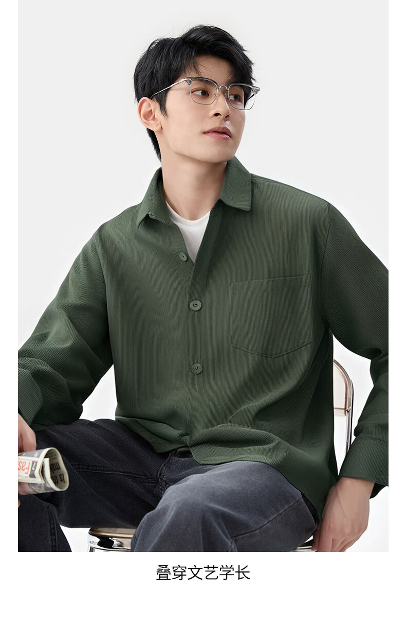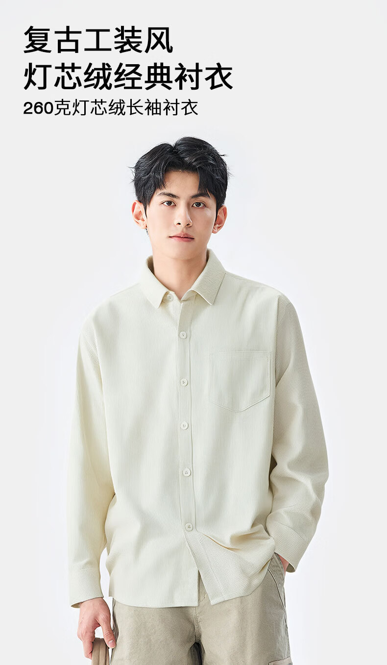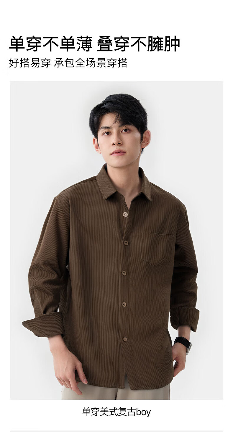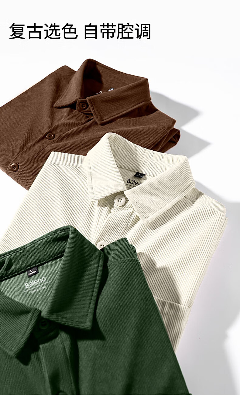Baleno solid color corduroy shirt men's autumn loose long-sleeved American light mature trend brand anti-wrinkle casual men's shirt
