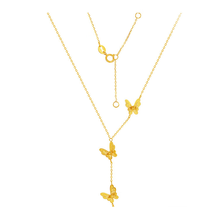 Saturday blessing yellow 18K gold butterfly necklace birthday gift for girlfriend C0616296 40+5cm