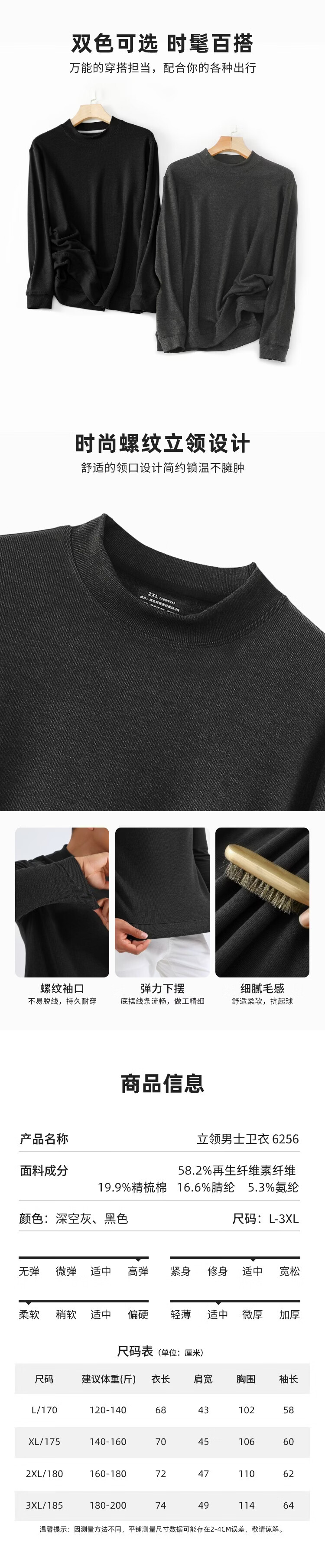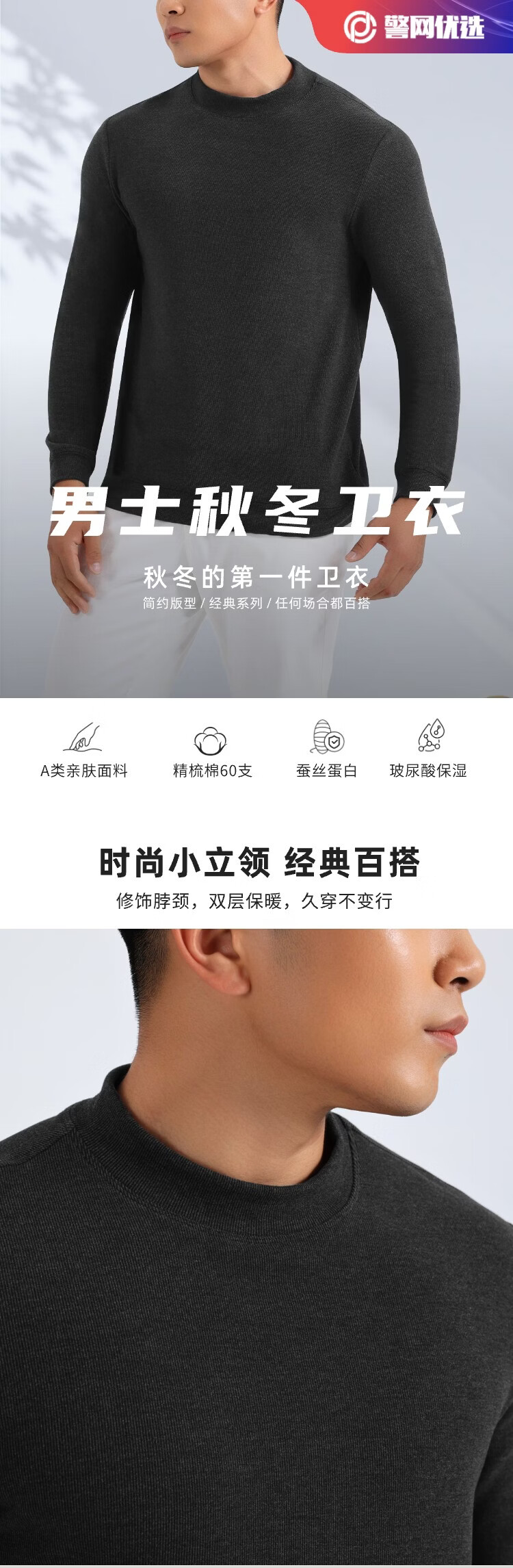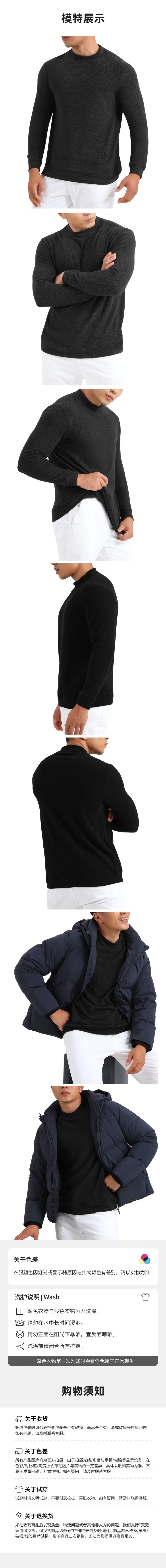 JWCP police website produces men's half turtleneck German velvet sweatshirt, versatile casual bottoming spring and summer solid color long-sleeved T-shirt
