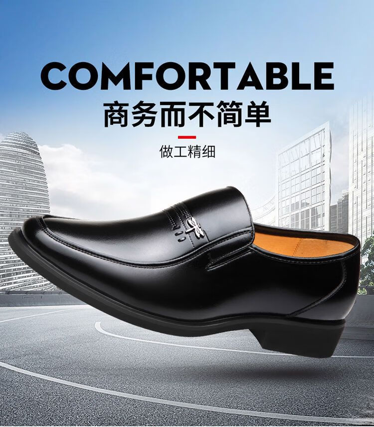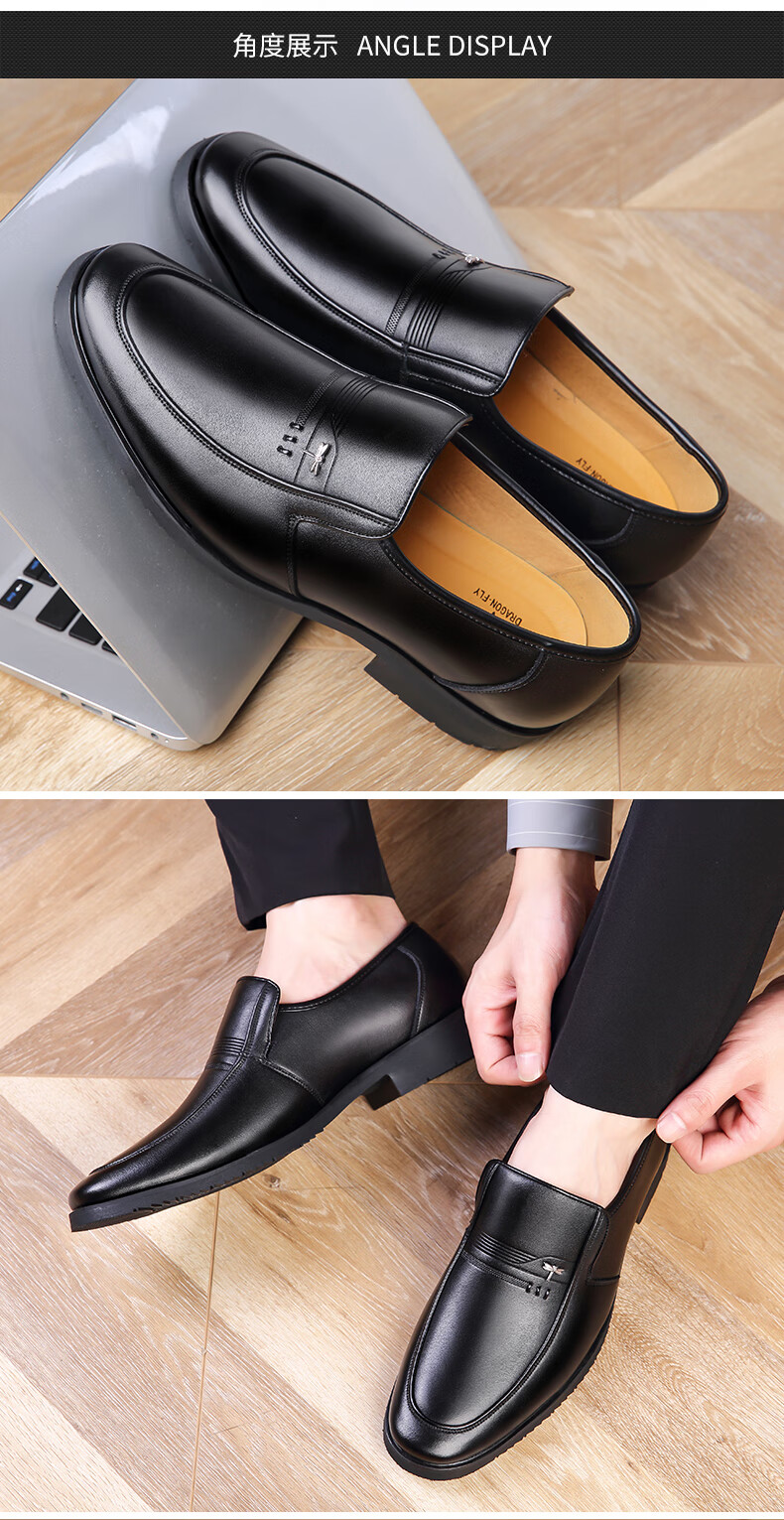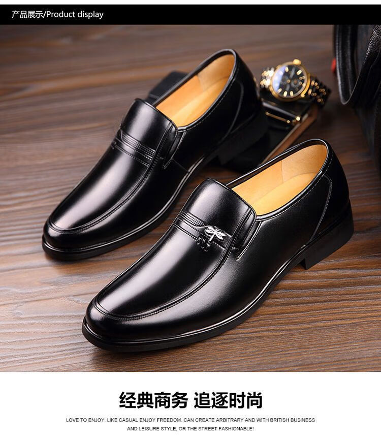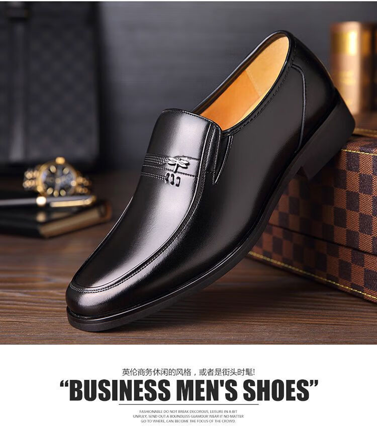 Dragonfly brand leather shoes, men's business casual shoes, fashionable footwear, work banquet suit, British fashion, versatile formal leather shoes, black 41