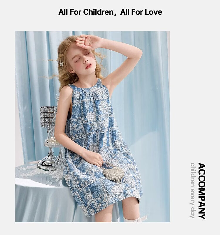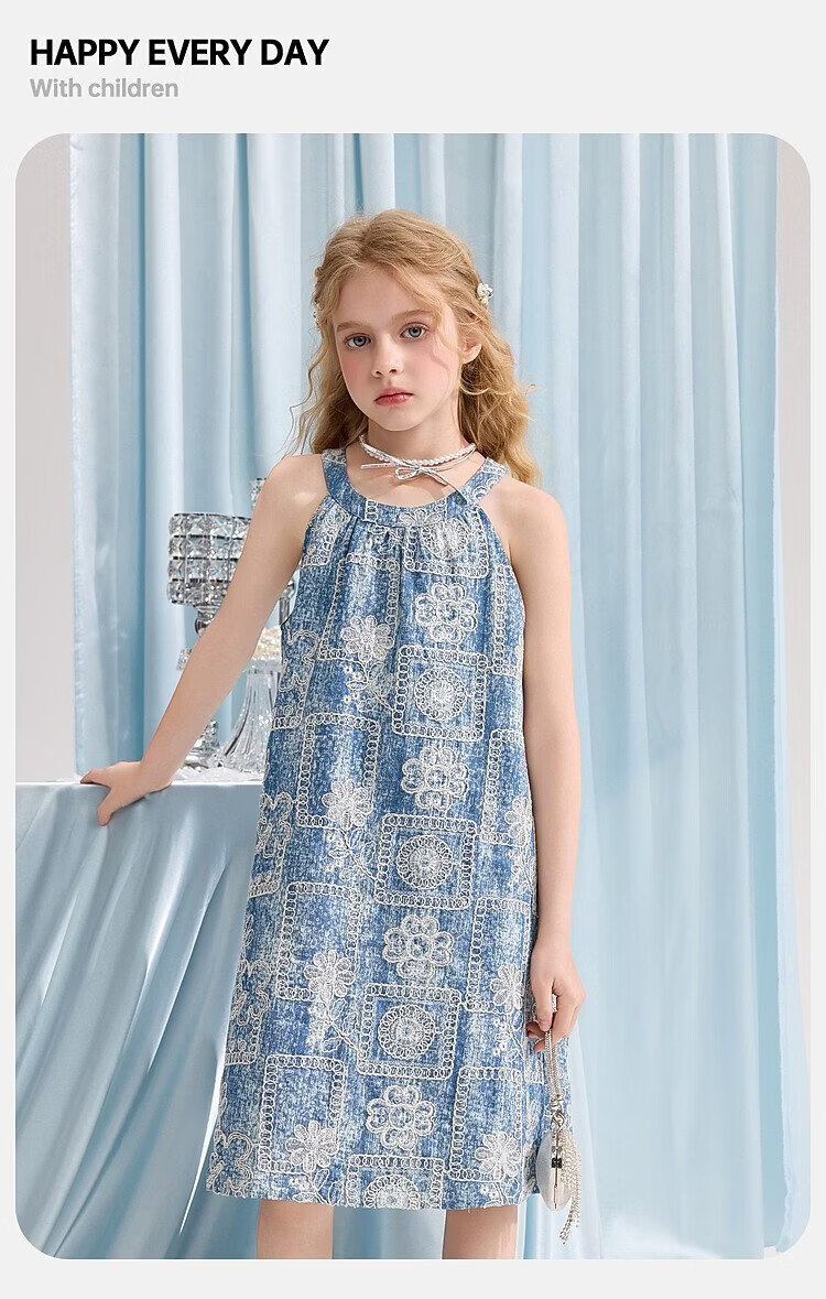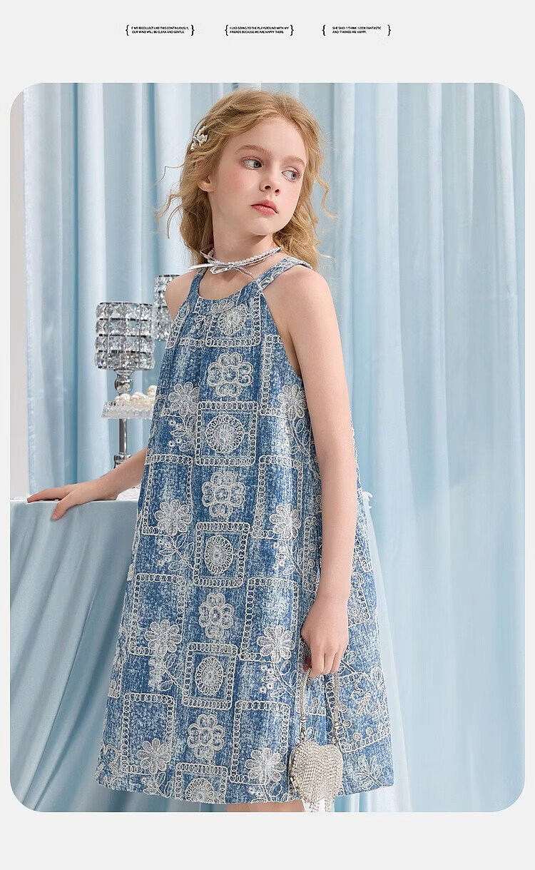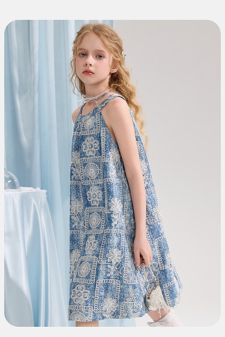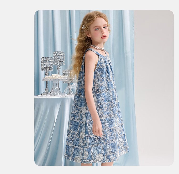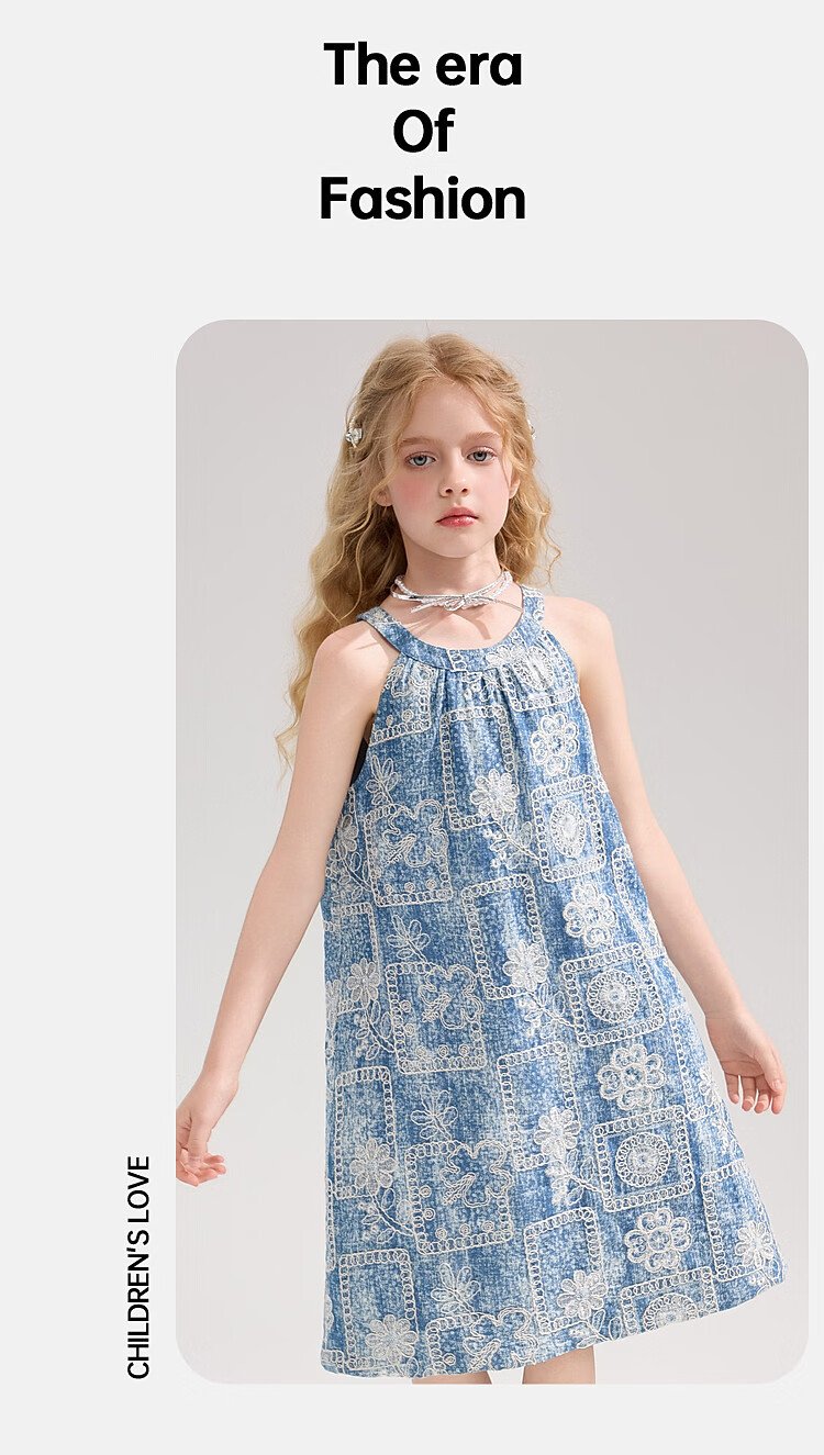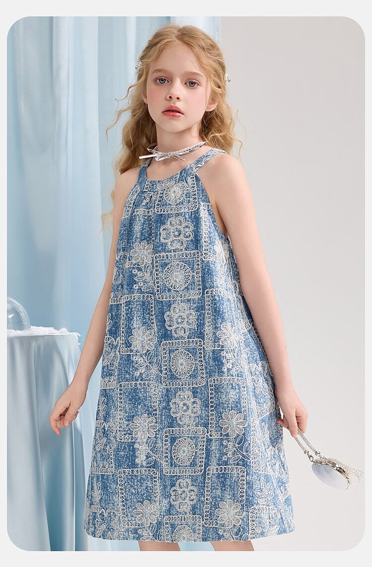 ASK JUNIOR Girls Skirt Summer New Youth Sleeveless Denim Skirt Fashion Casual Mid-Length Children's Princess Skirt