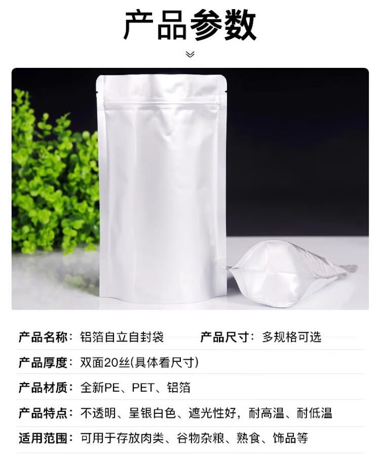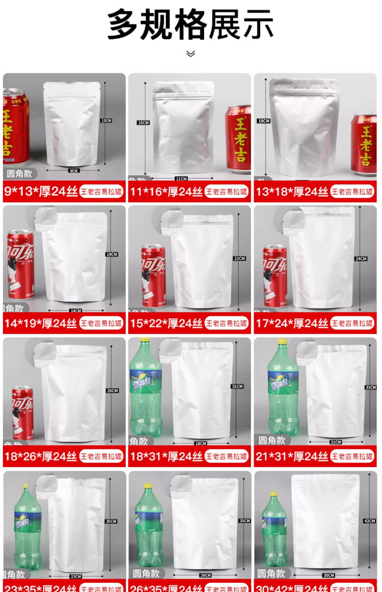 Haosikepu aluminum foil sealed bag food sealed bag tea bag ziplock bag sampling milk powder snack packaging bag cat food repackaging self-standing repacking bag 23*35+5cm (10 pieces)