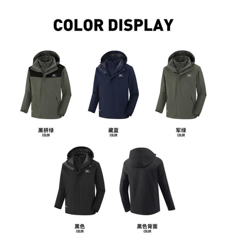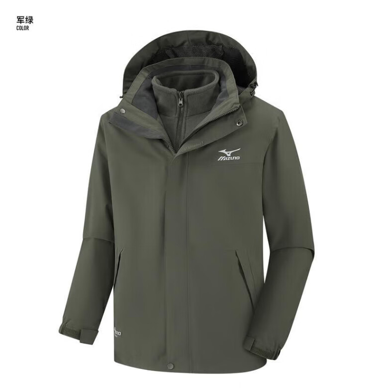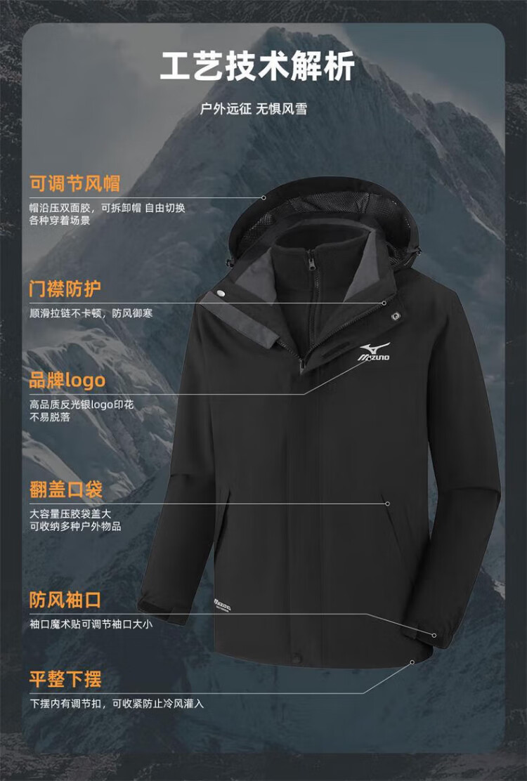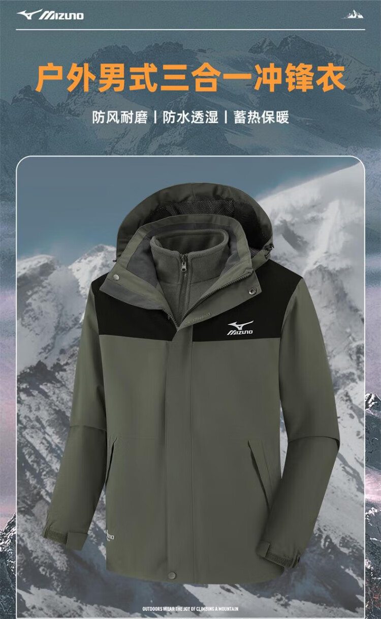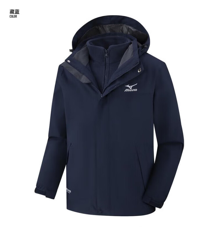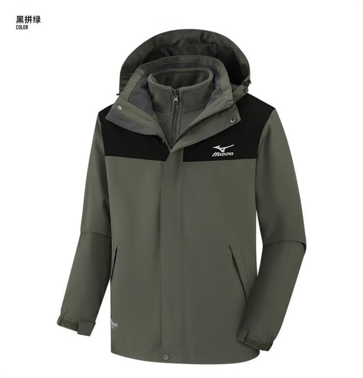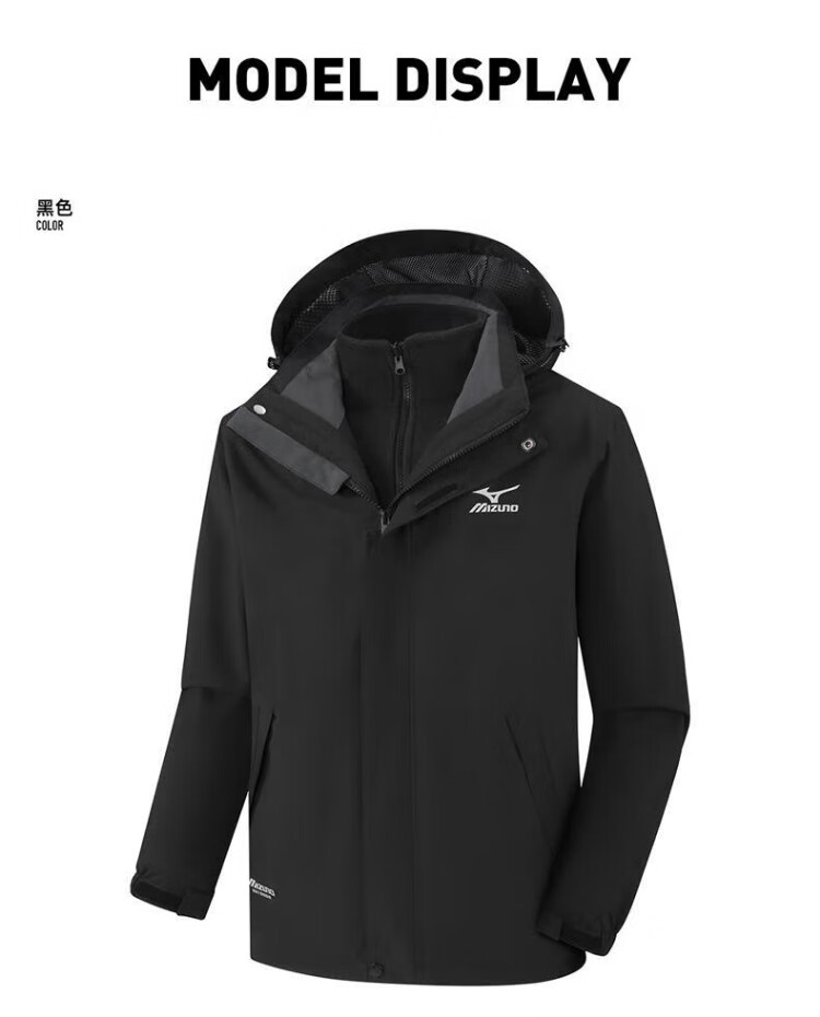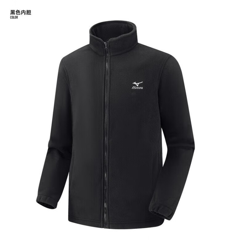 Mizuno outdoor jacket men's three-in-one jacket windproof two-piece warm mountaineering sportswear black M