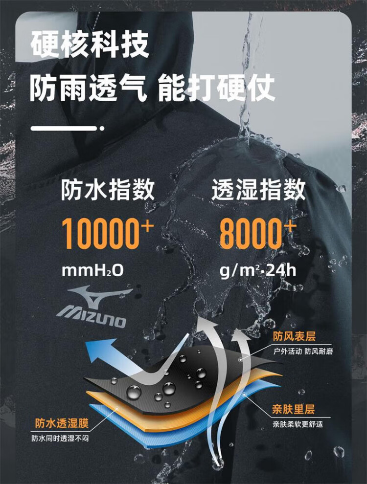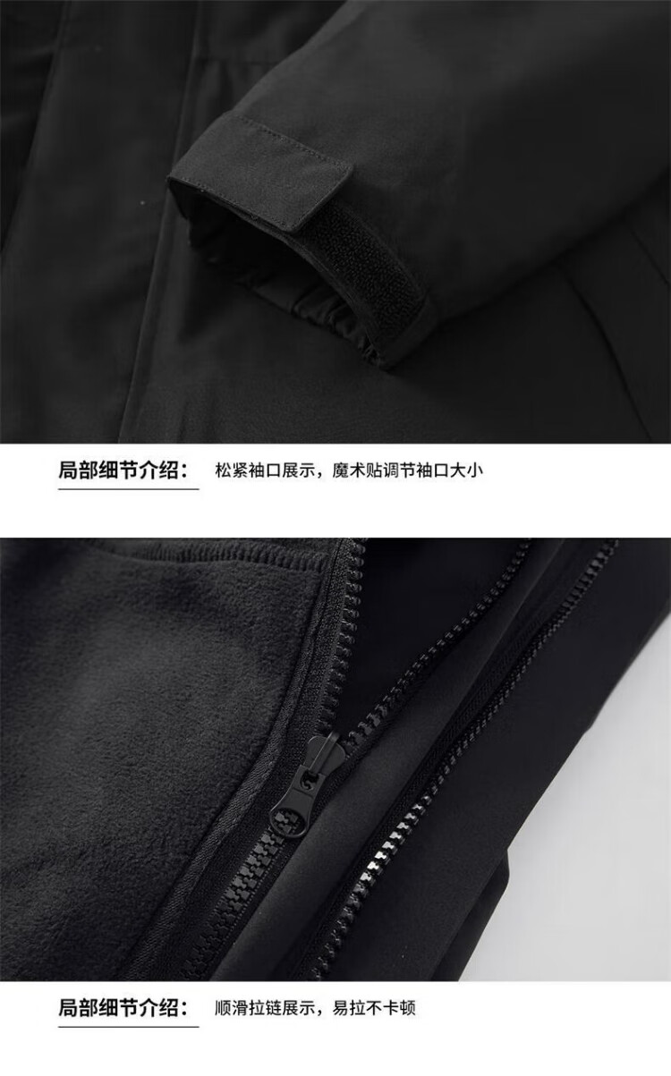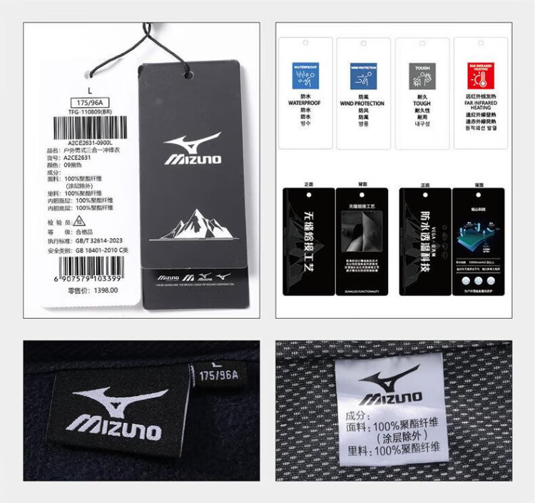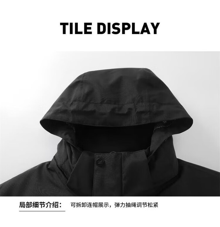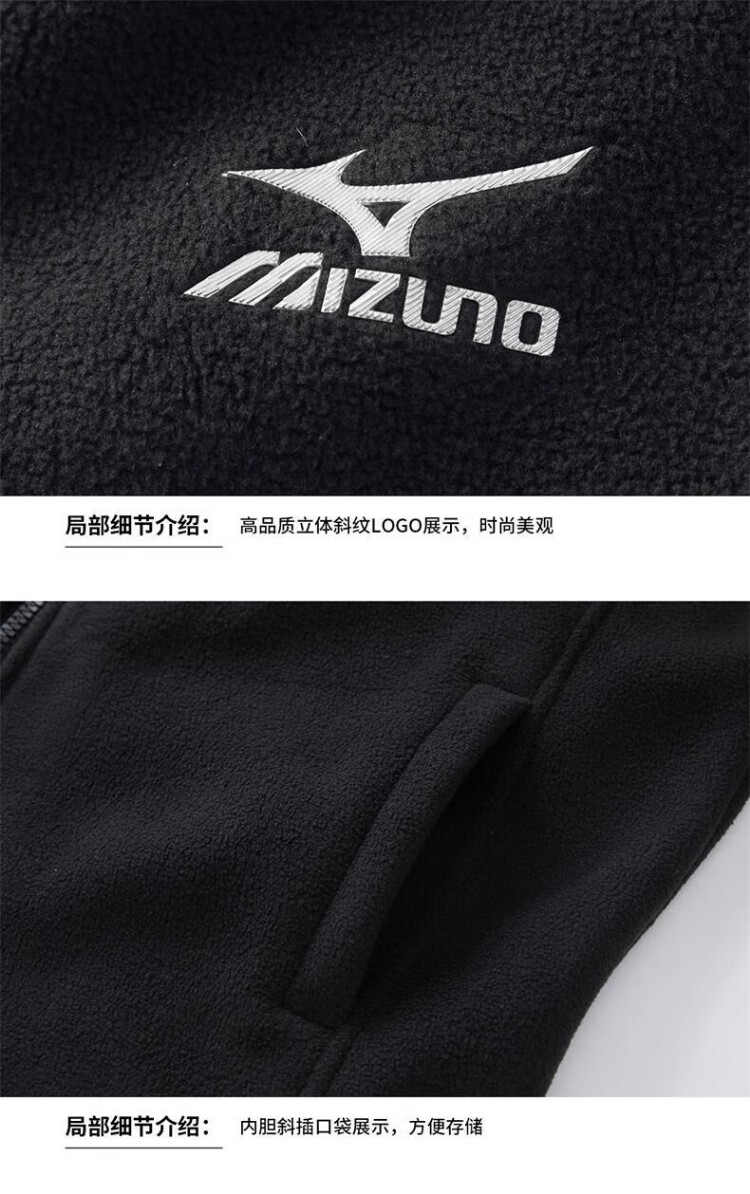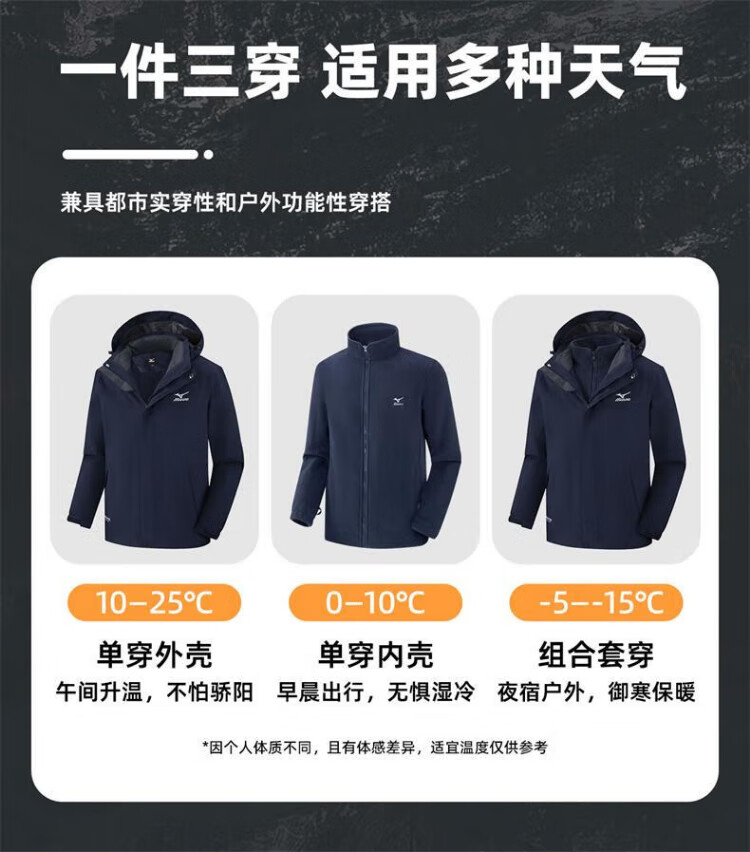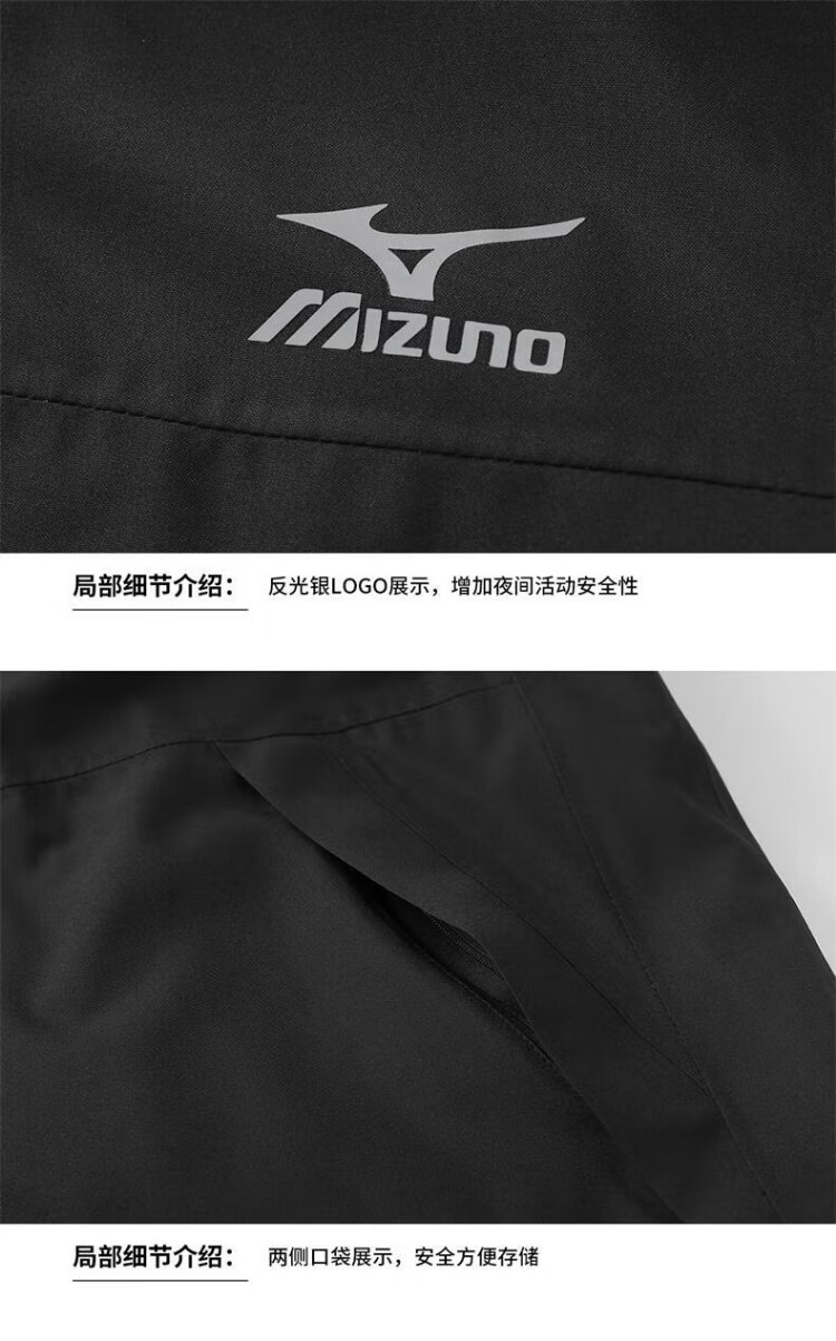Mizuno outdoor jacket men's three-in-one jacket windproof two-piece warm mountaineering sportswear black M