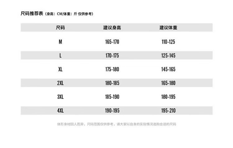 China (cm) 160-165/84-86 165-170 / 88-90 167-172 / 92-96 168-173 / 98-102 170-176 / 106-110