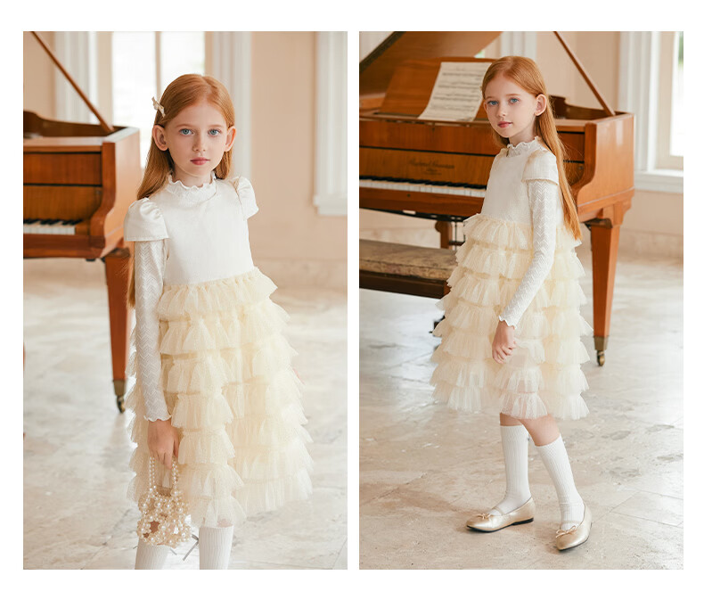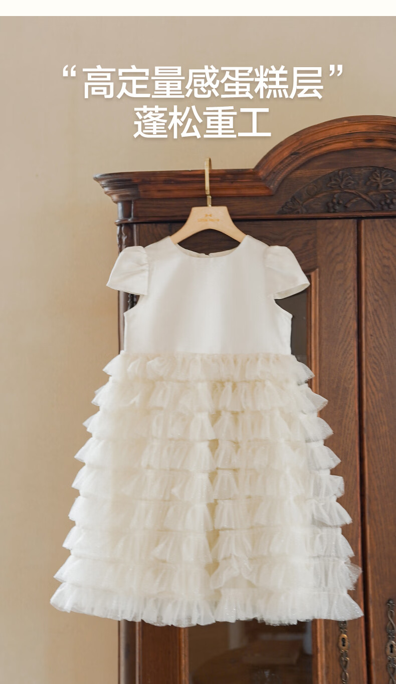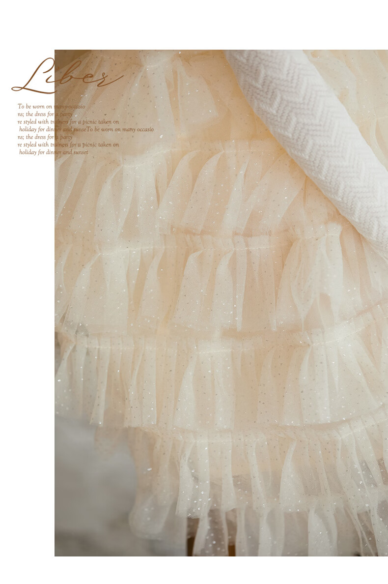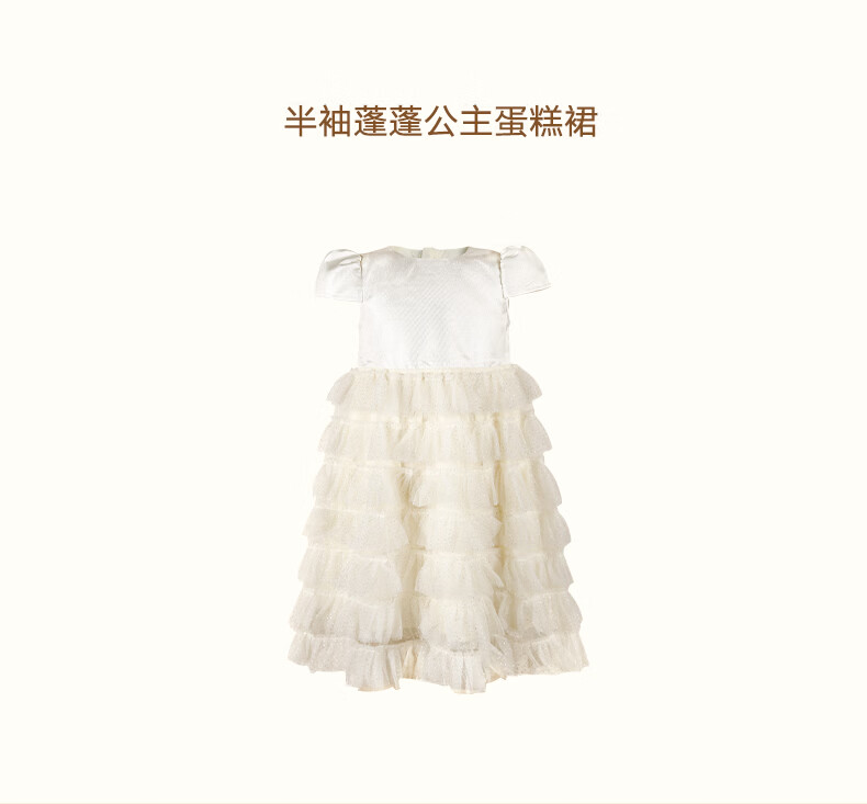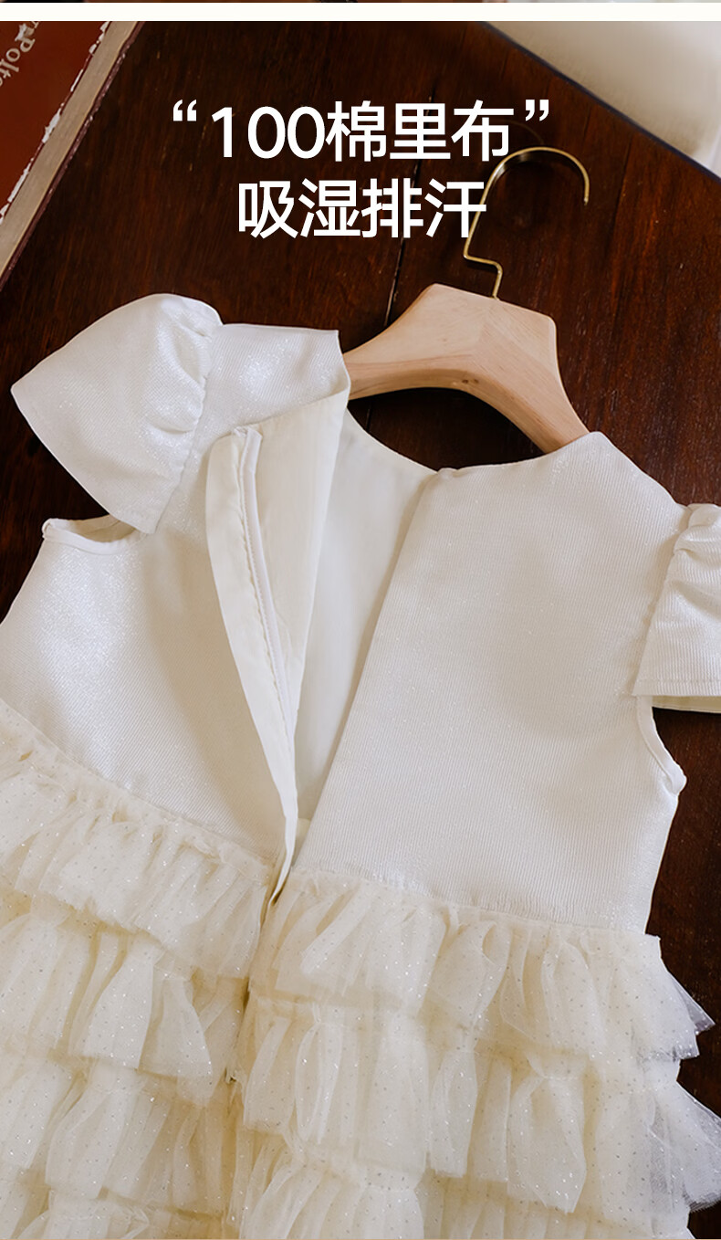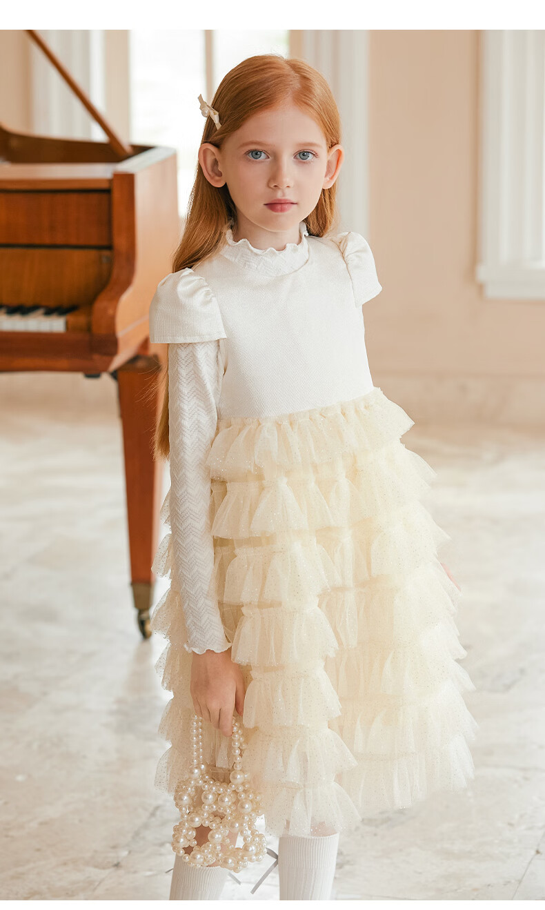 Little Naive girls short-sleeved cake princess dress performance one-year-old dress spring and autumn children's dress champagne color 130