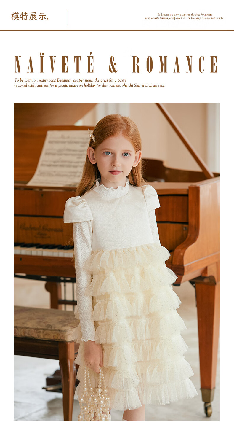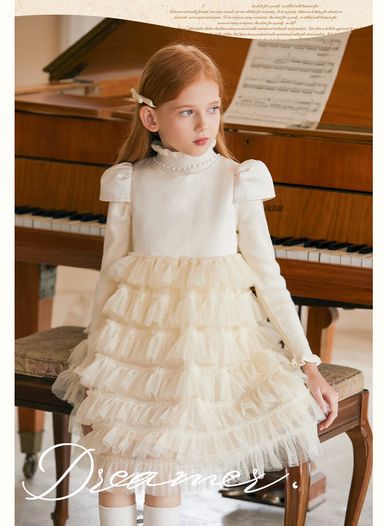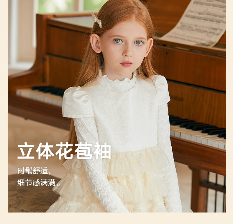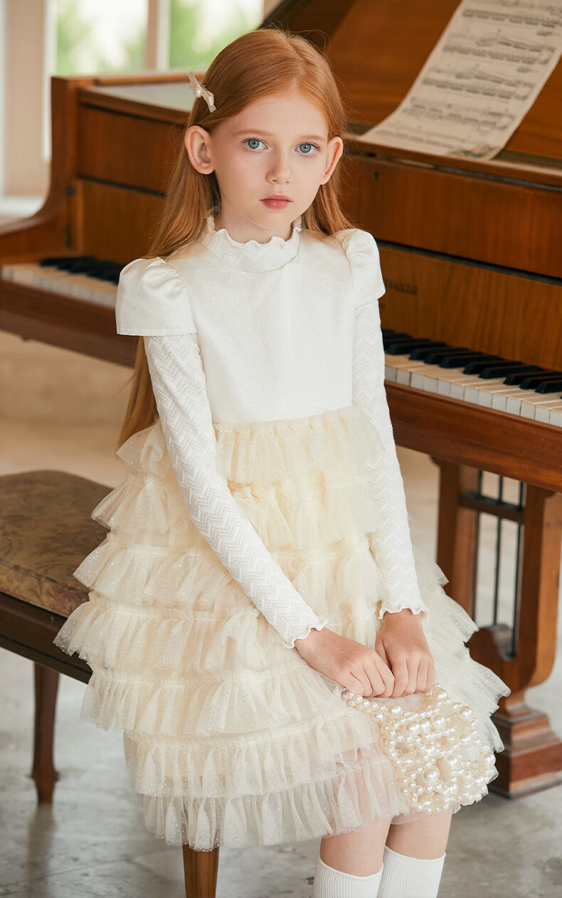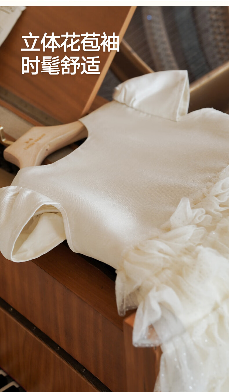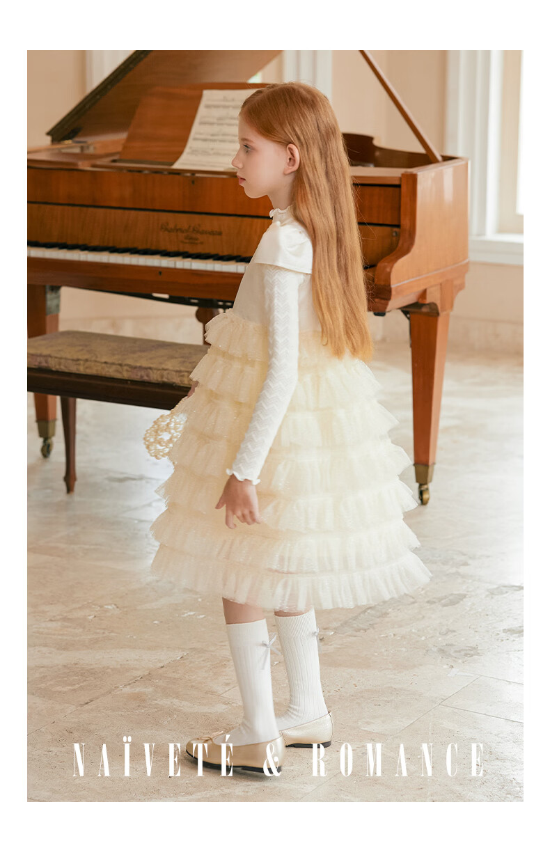 Little Naive girls short-sleeved cake princess dress performance one-year-old dress spring and autumn children's dress champagne color 130