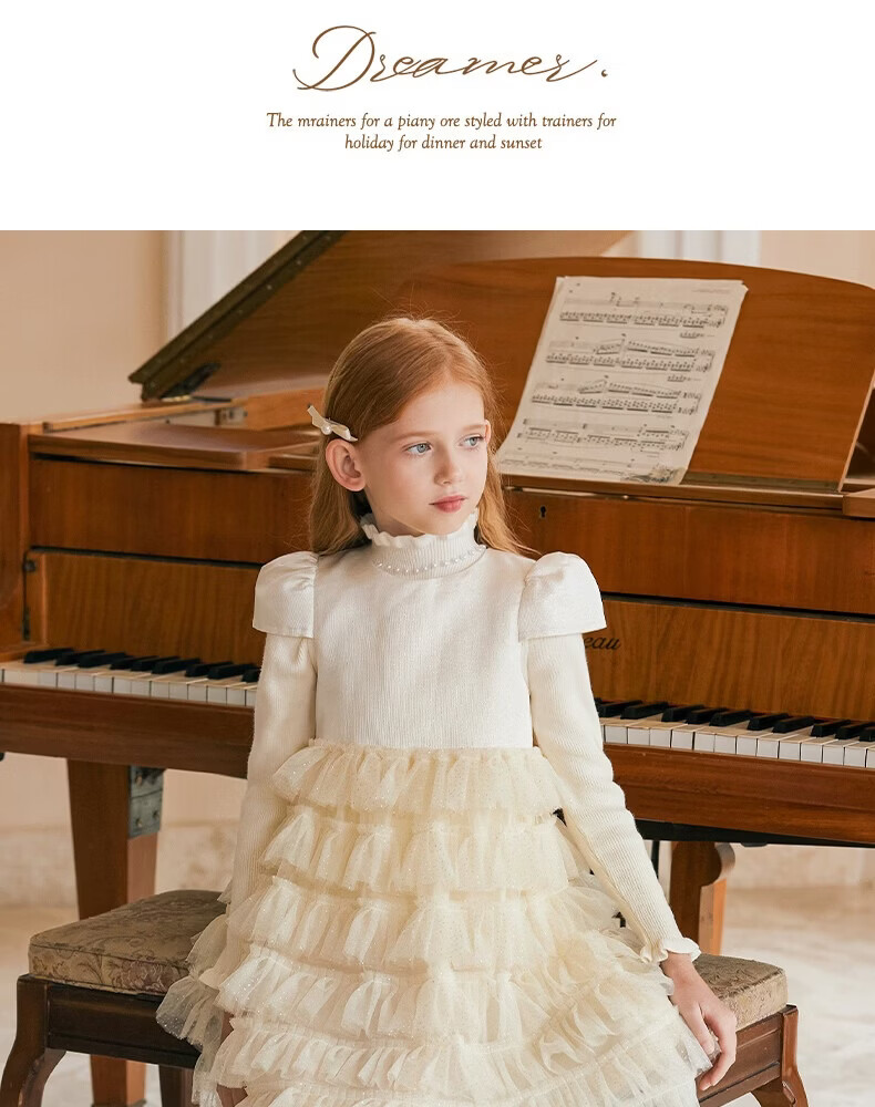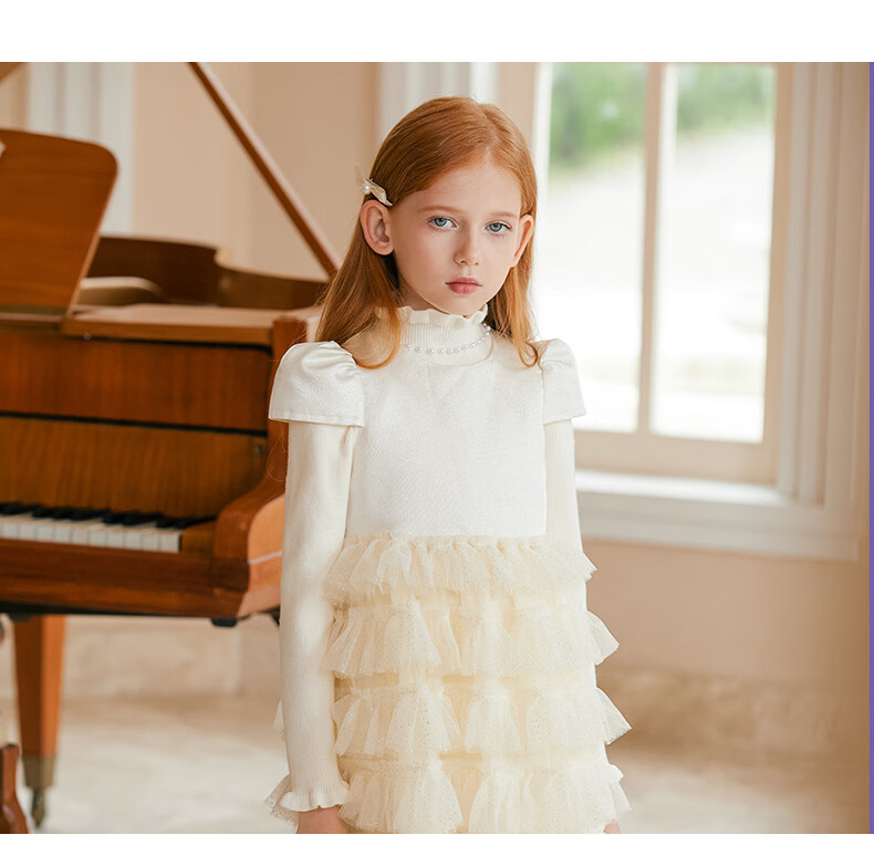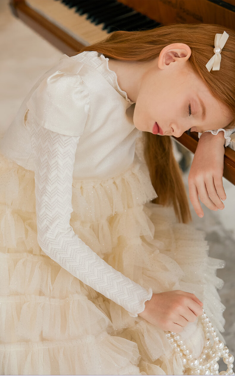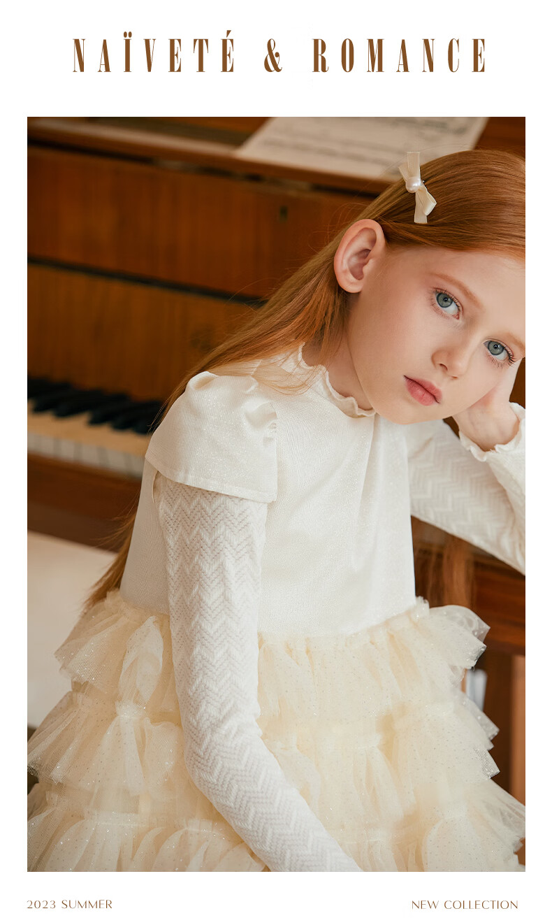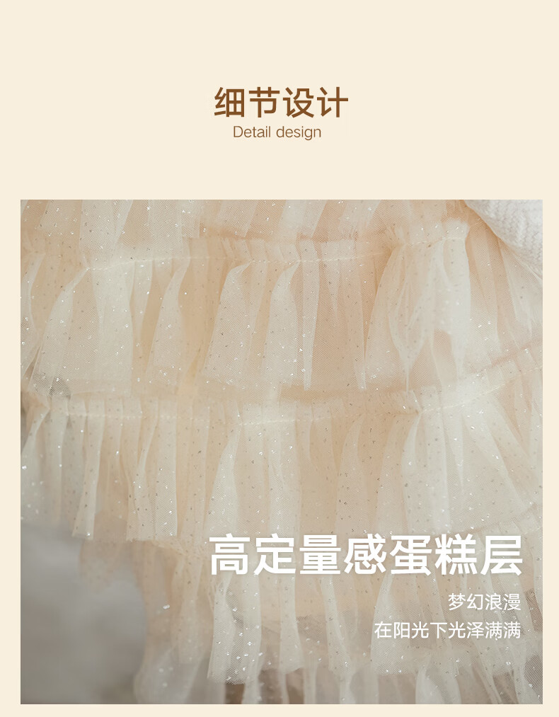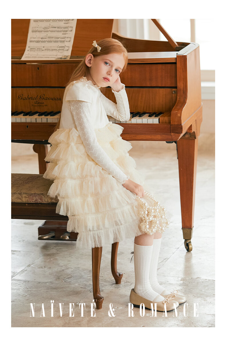 Little Naive girls short-sleeved cake princess dress performance one-year-old dress spring and autumn children's dress champagne color 130