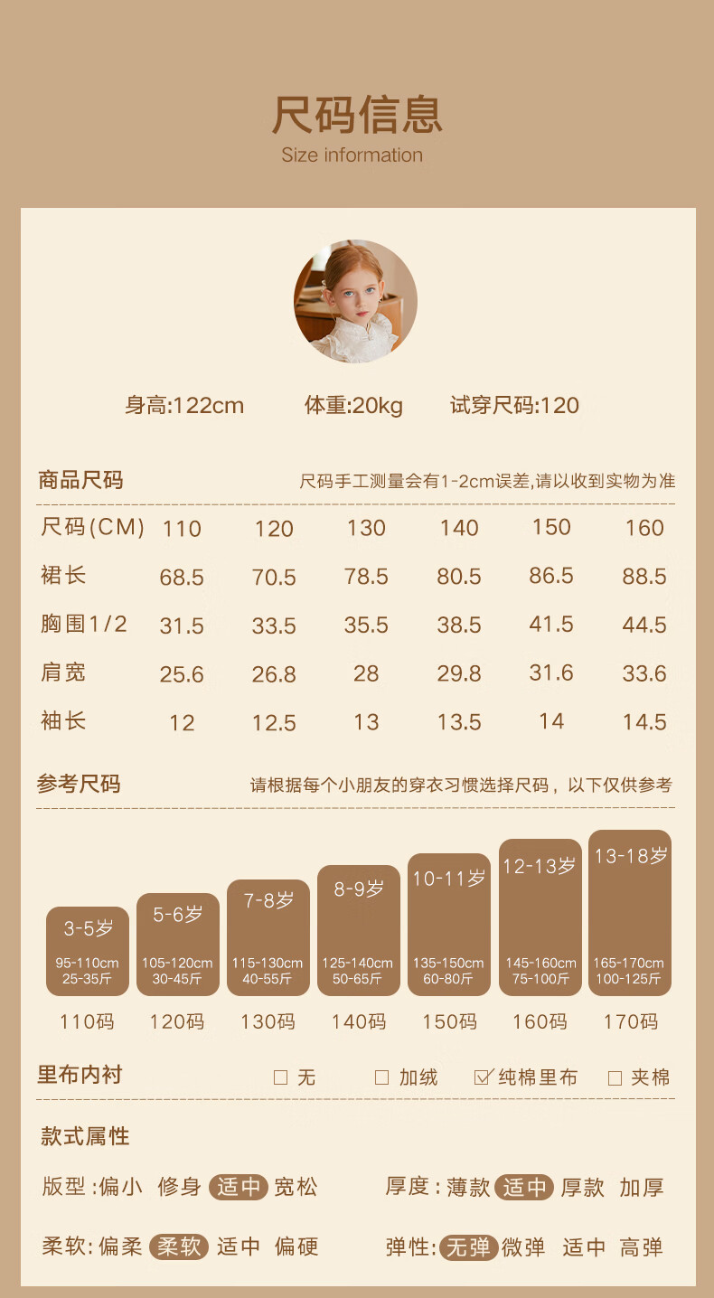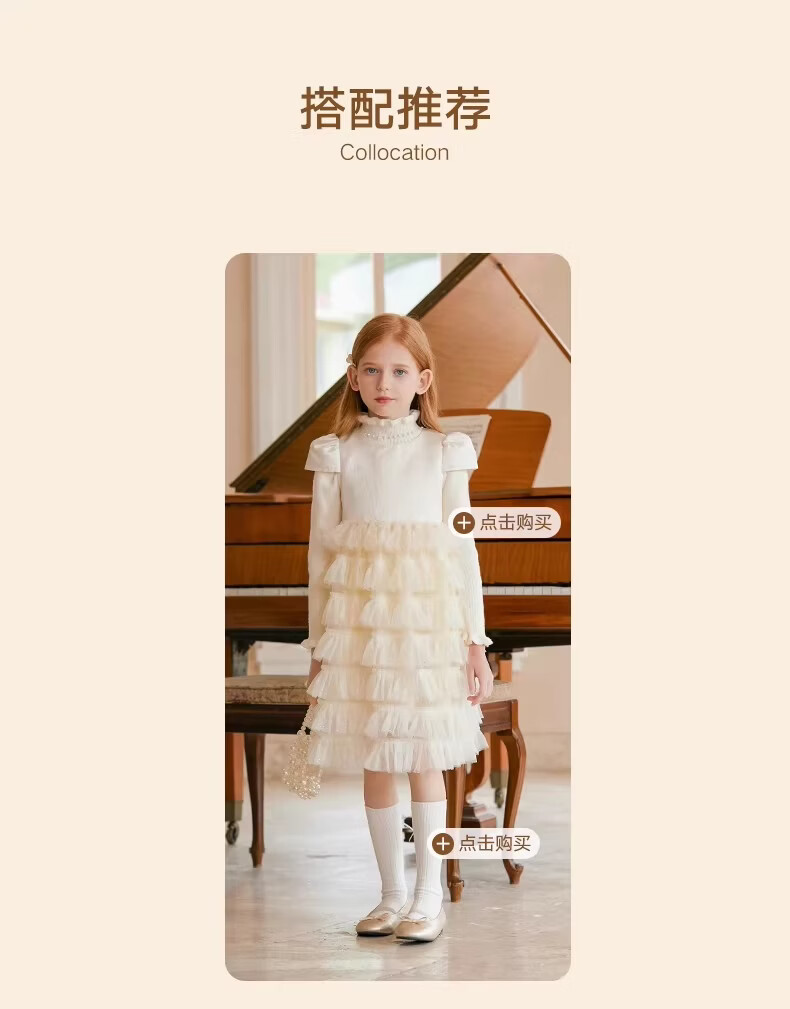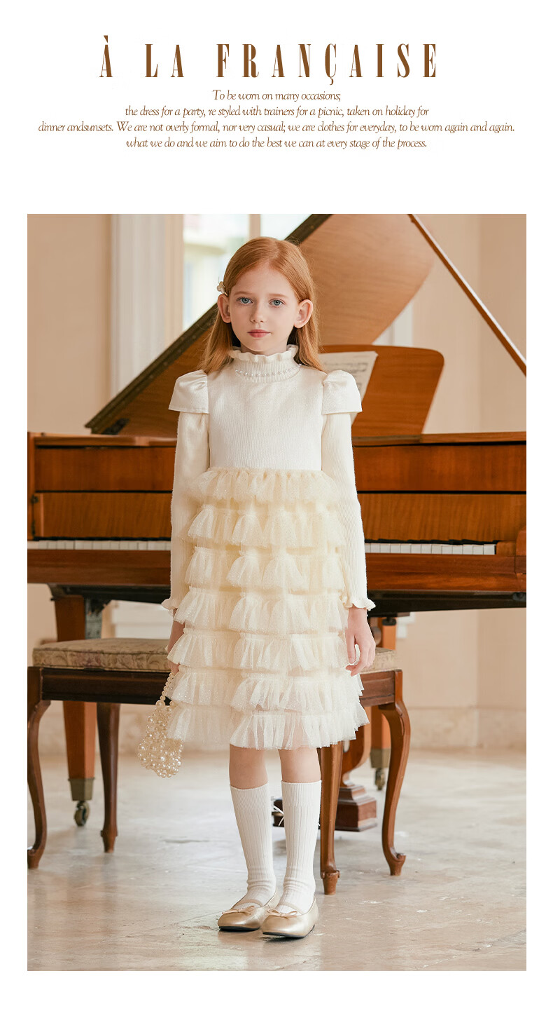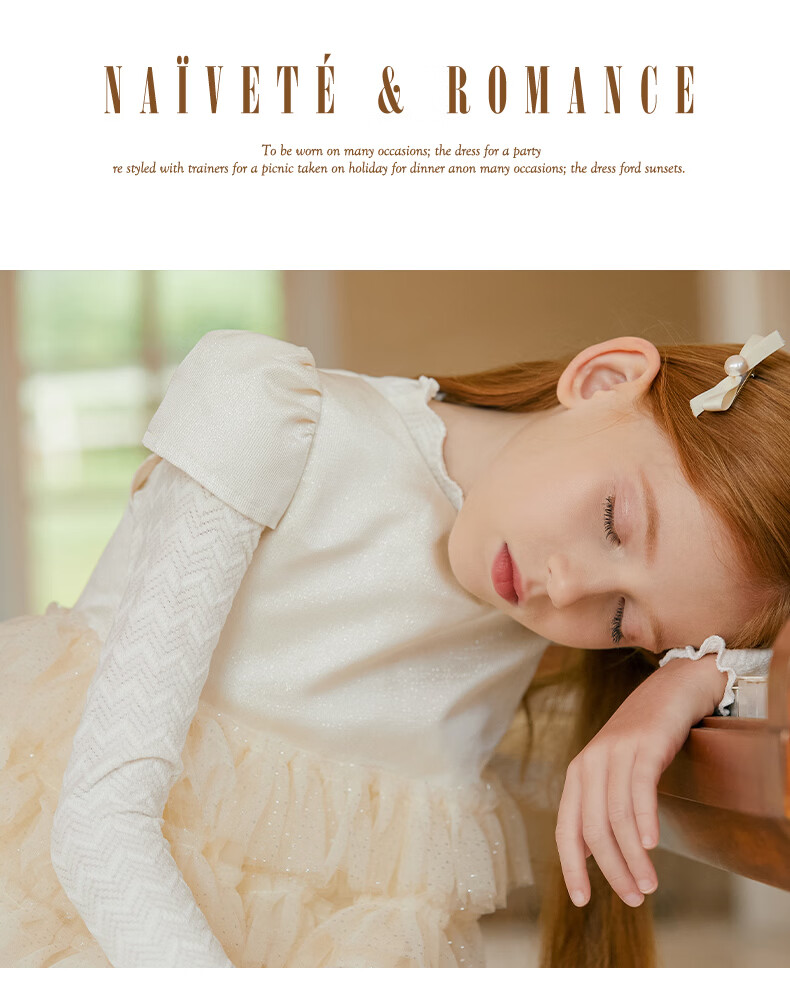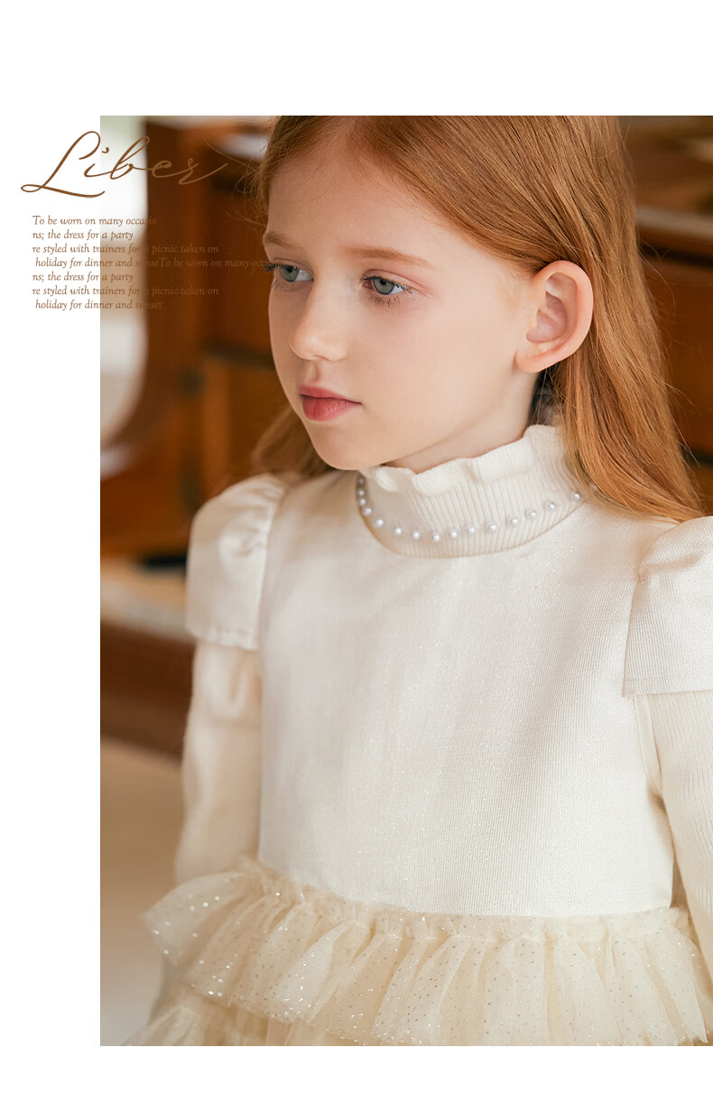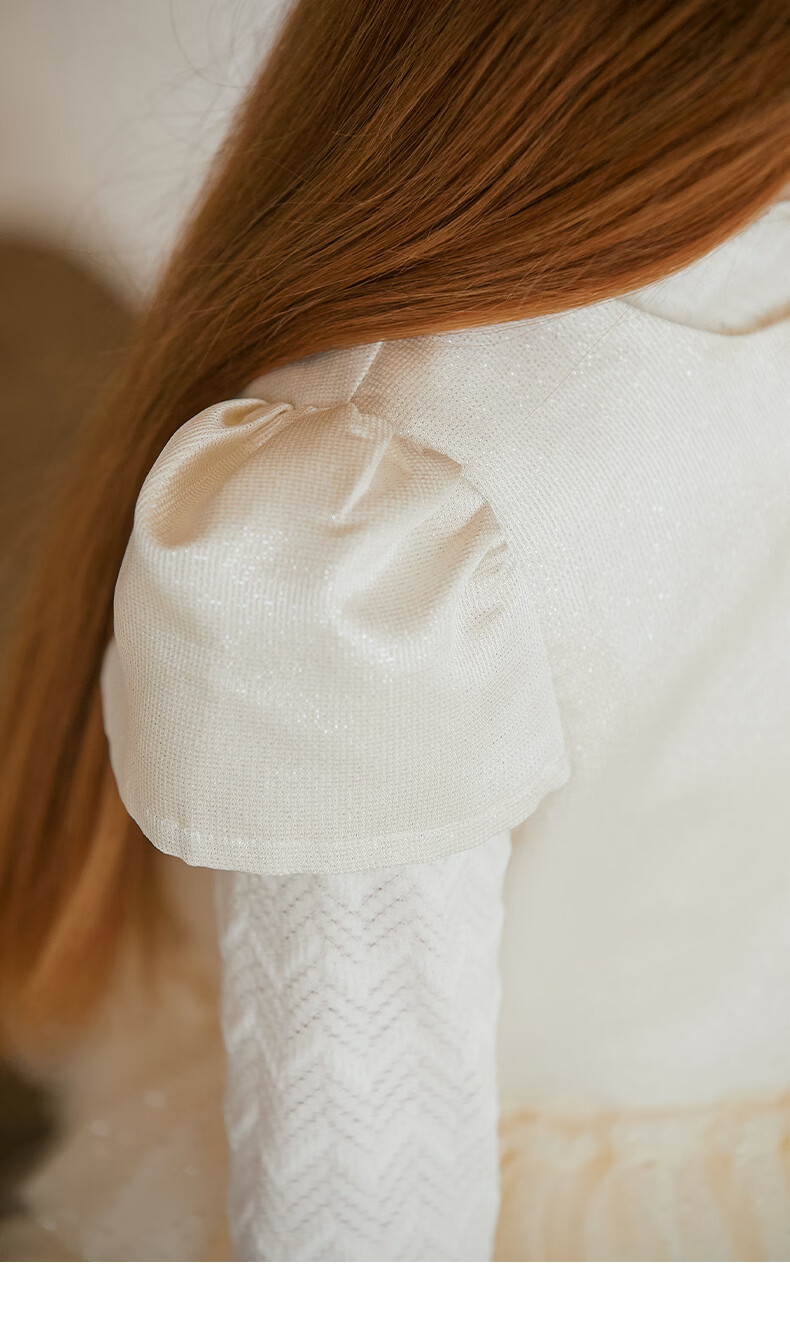 Little Naive girls short-sleeved cake princess dress performance one-year-old dress spring and autumn children's dress champagne color 130