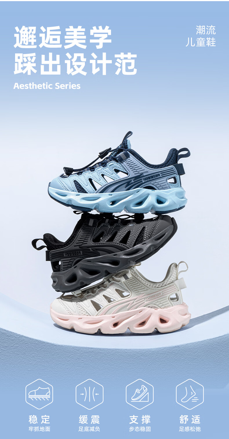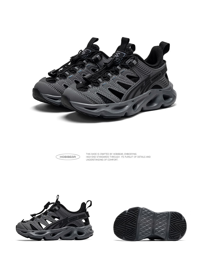 HOBIBEAR children's frame shoes boys and girls sandals summer mesh breathable lightweight sports river sandals 623199 black gray 35