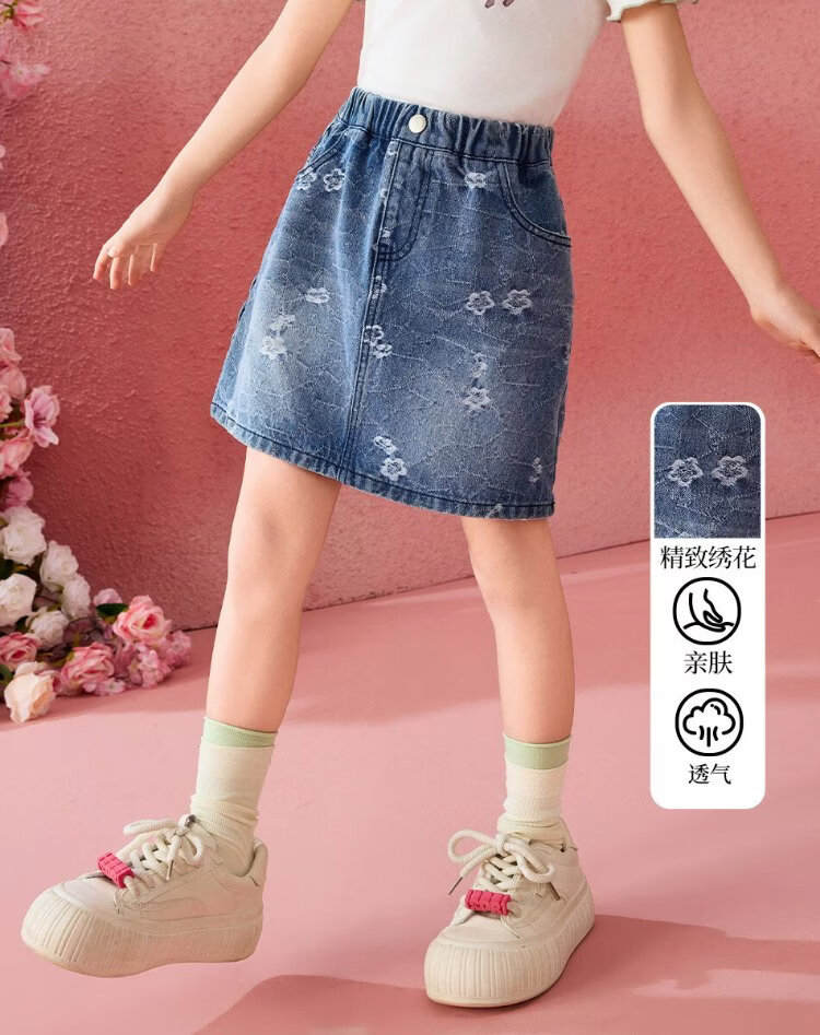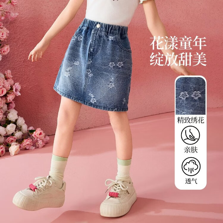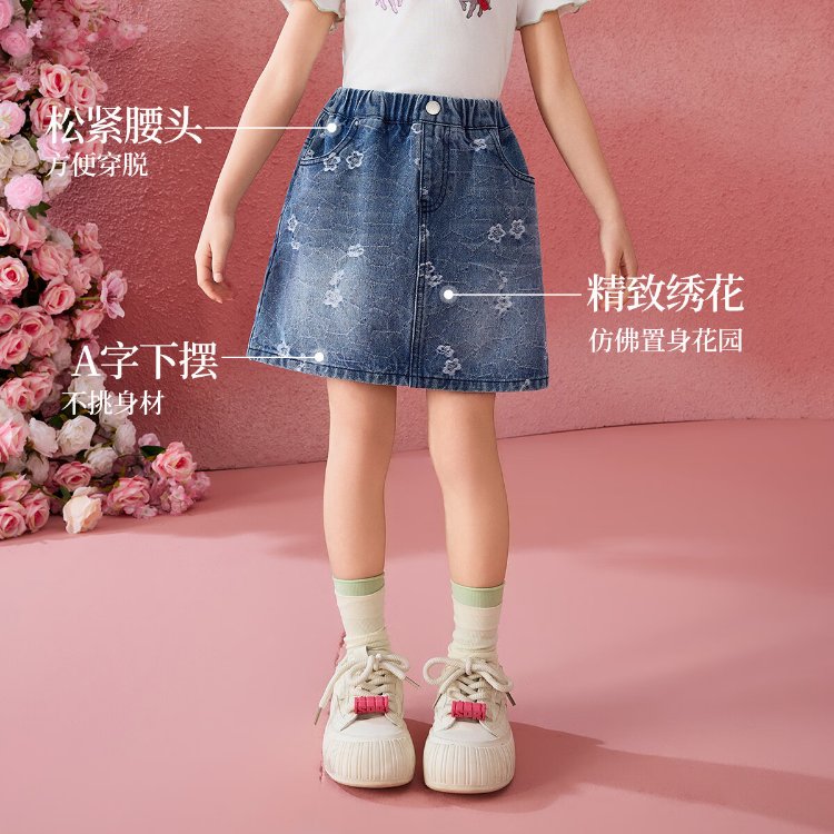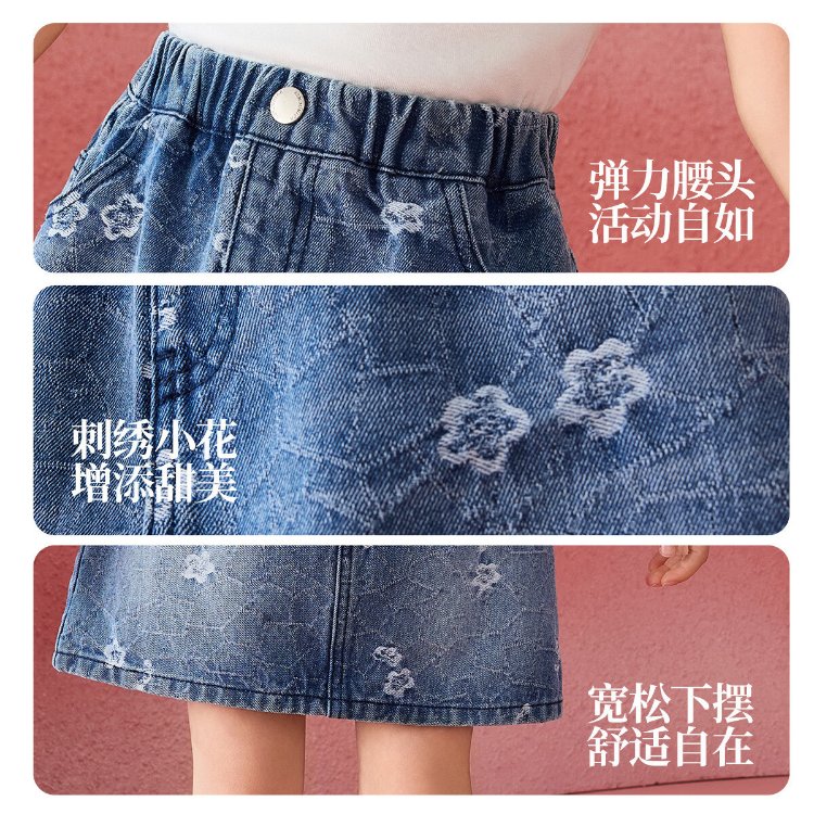 ASK JUNIOR children's skirt summer middle and large children's embroidered denim skirt girls half skirt teenagers A-line skirt