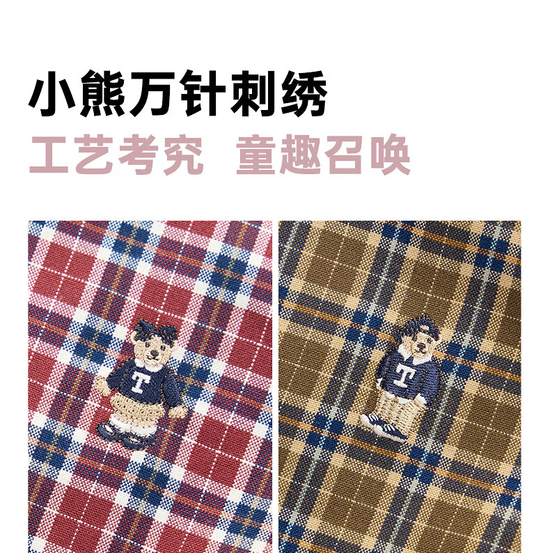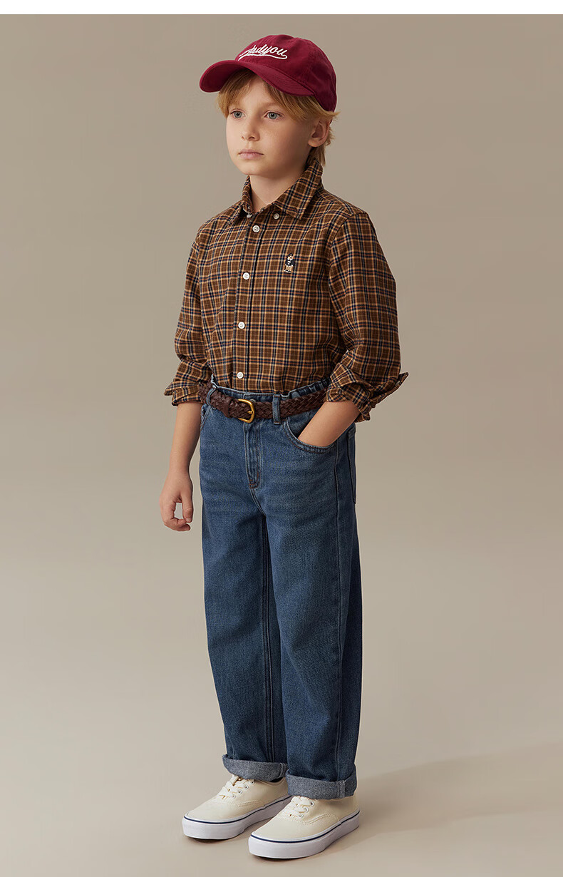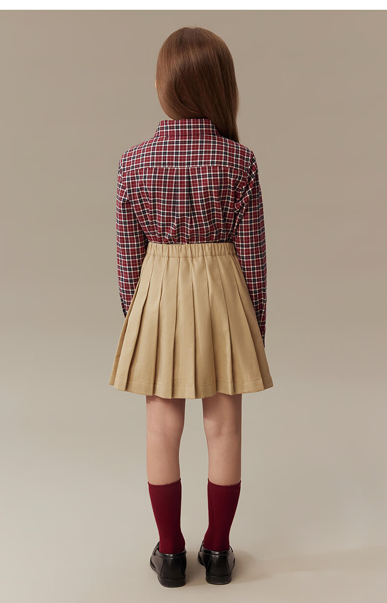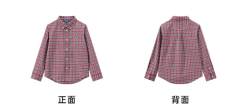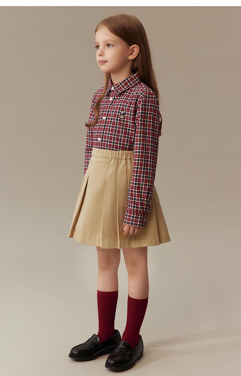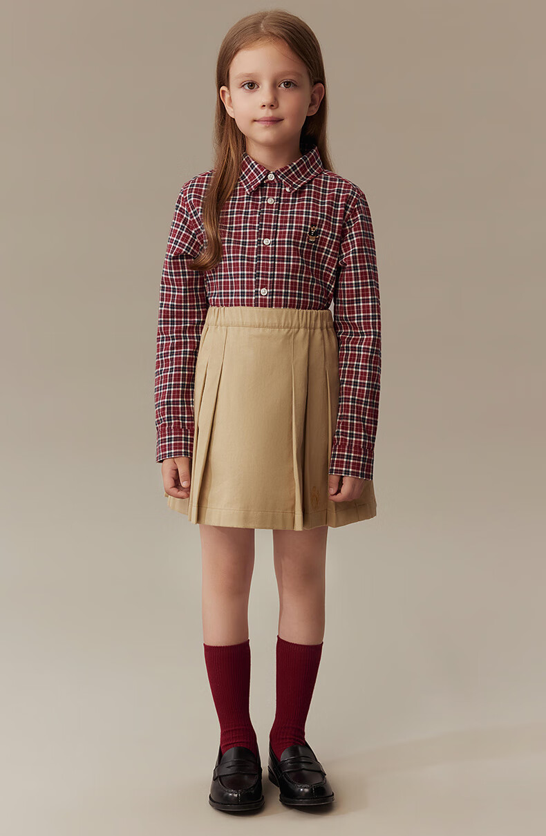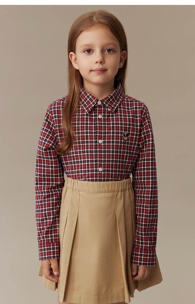 Teenie Weenie Kids 25th Autumn Boys and Girls College Long Sleeve Plaid Shirt Burgundy 120cm