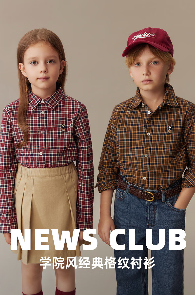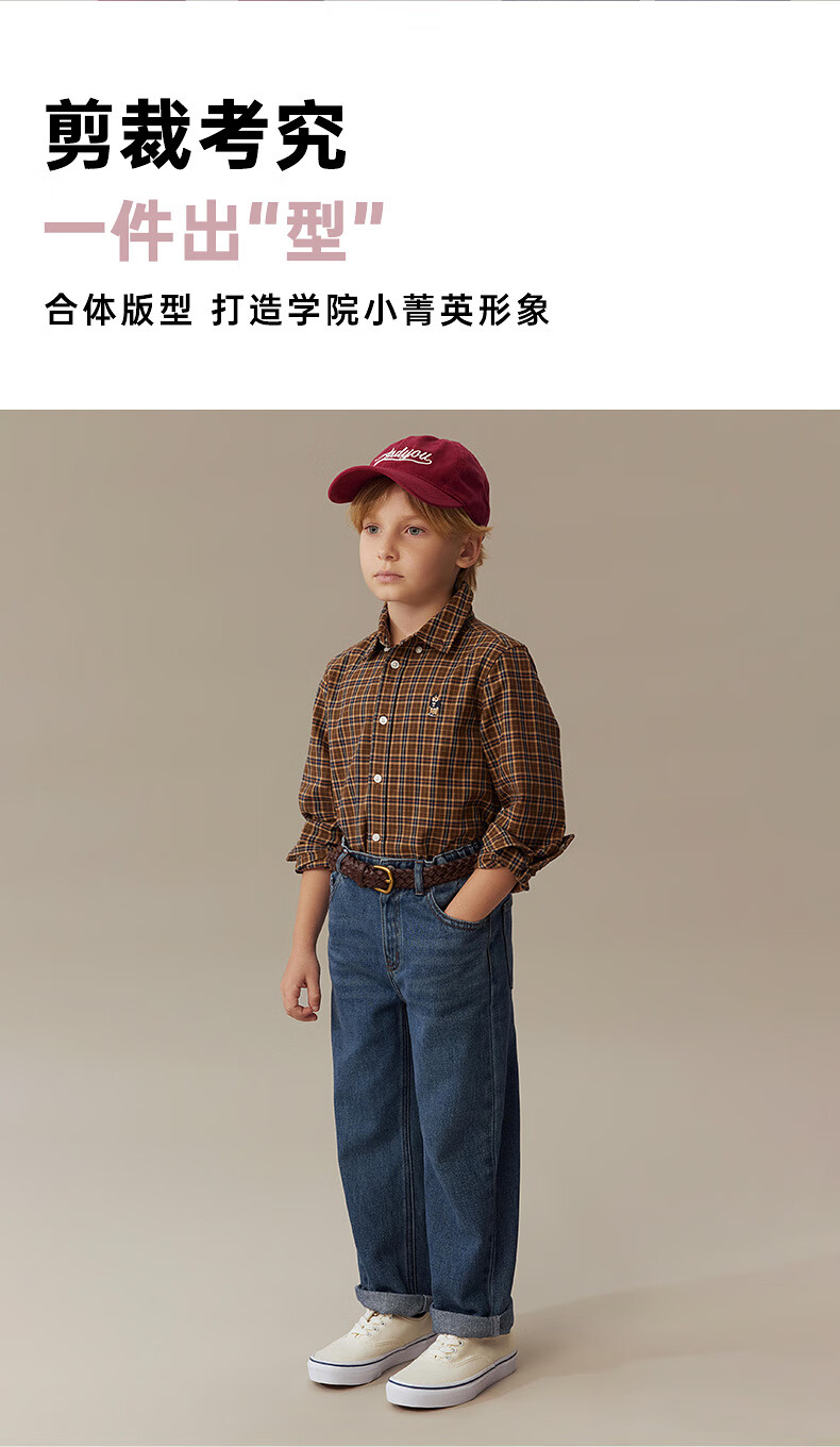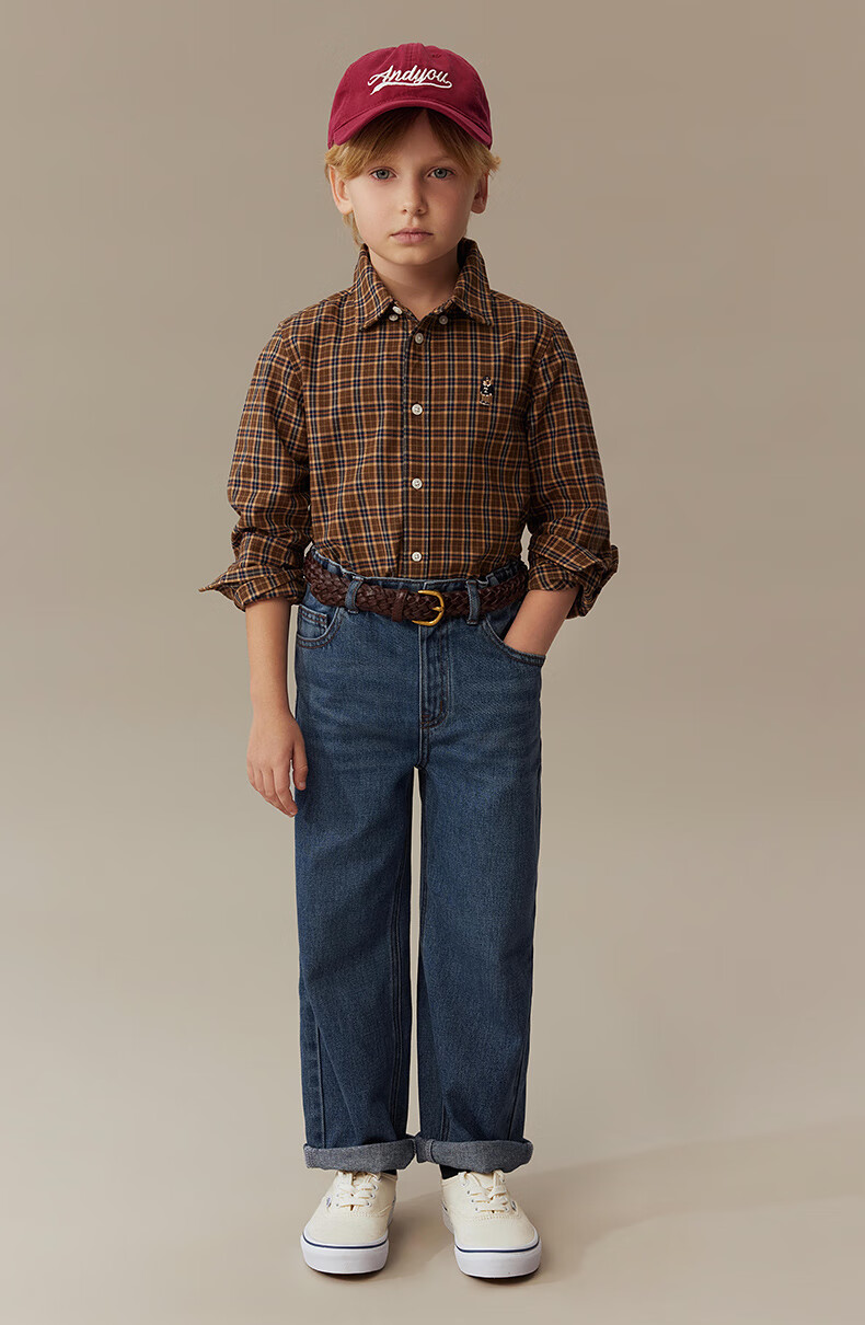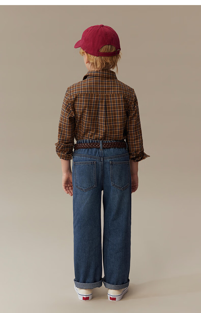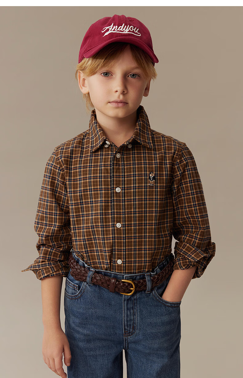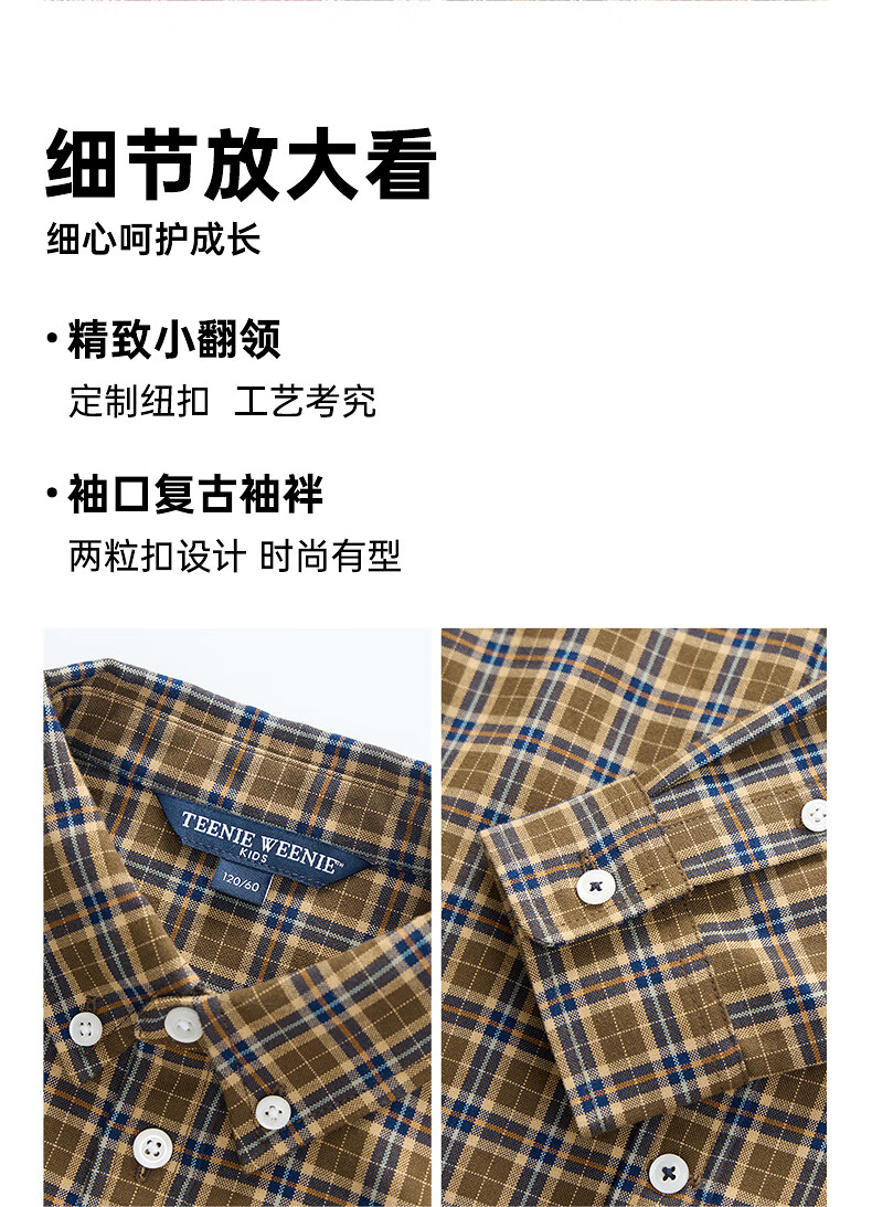 Teenie Weenie Kids 25th Autumn Boys and Girls College Long Sleeve Plaid Shirt Burgundy 120cm